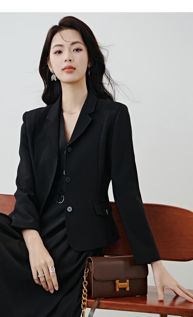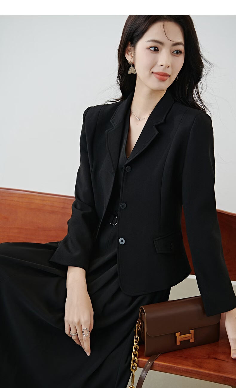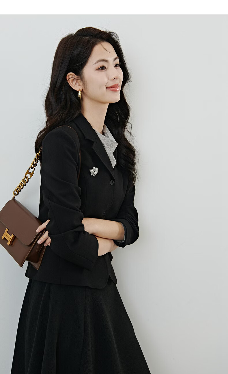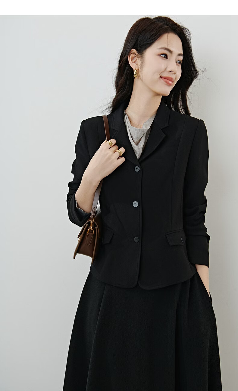 晚白【新品】2026春款miu系高级感翻驳领西装修身显瘦正肩短款外套女 黑色 M