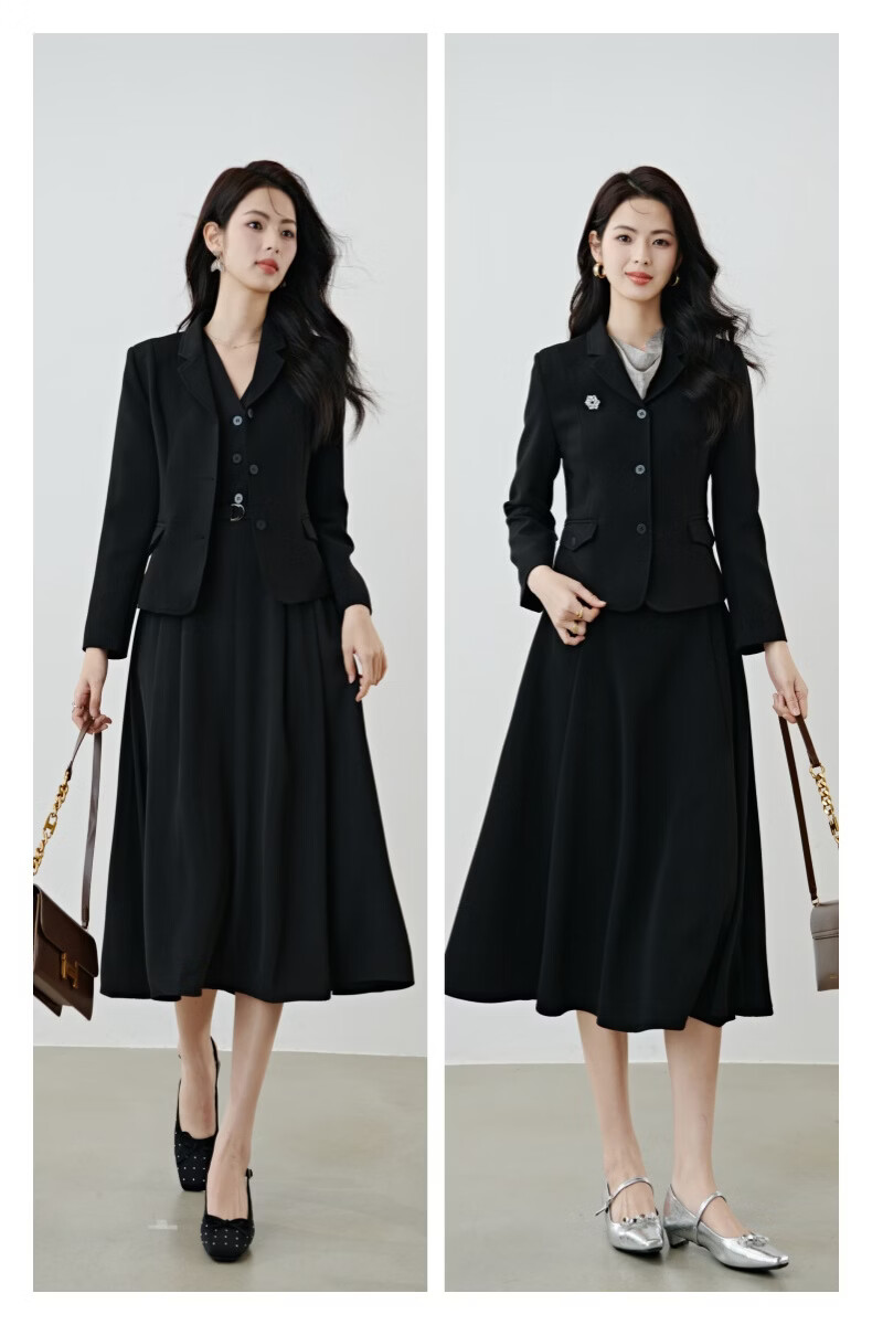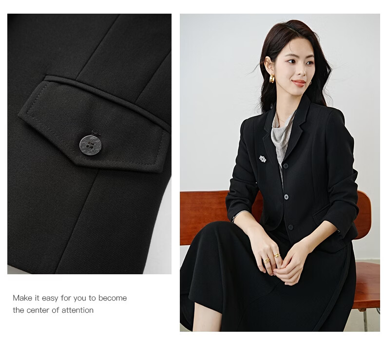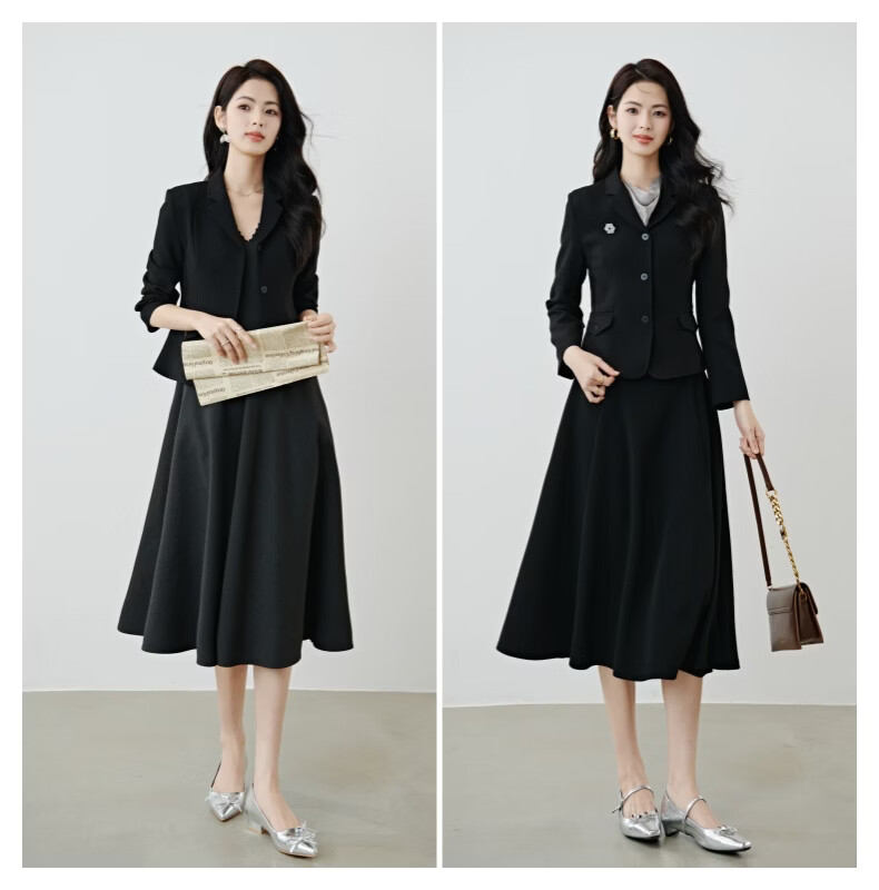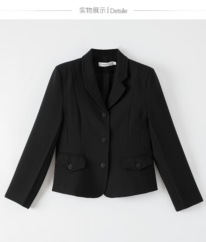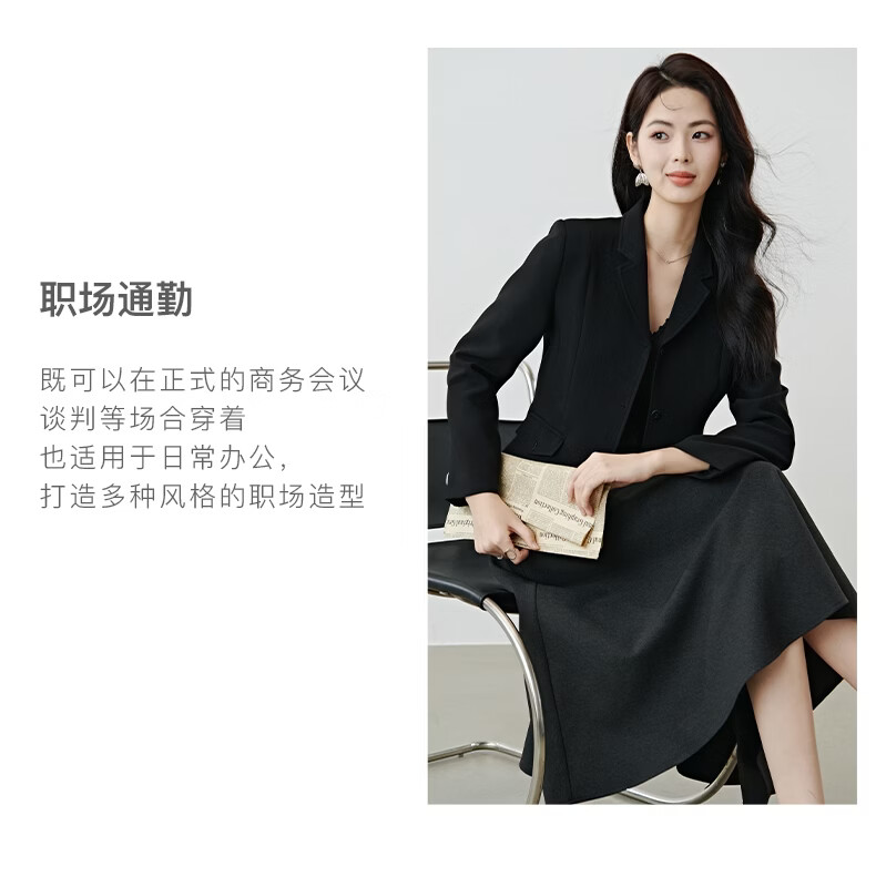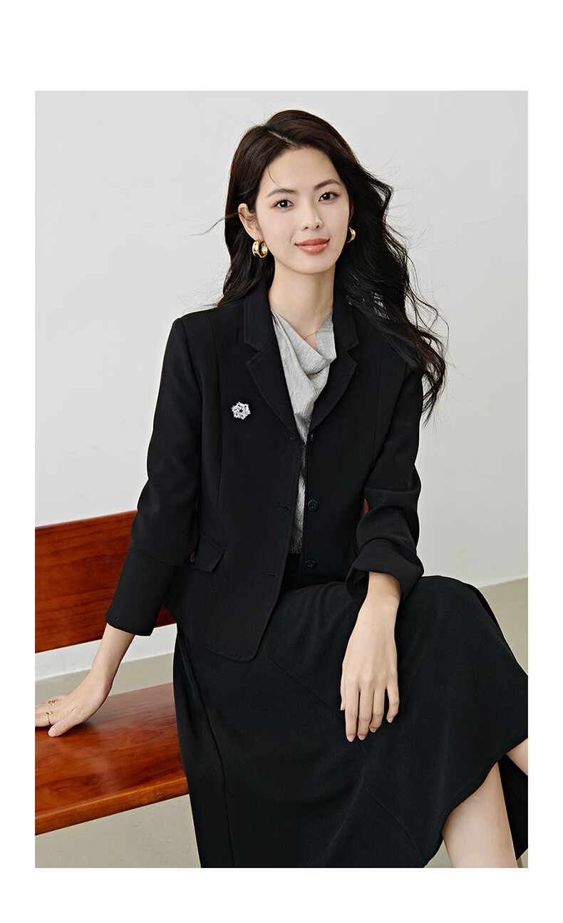晚白【新品】2026春款miu系高级感翻驳领西装修身显瘦正肩短款外套女 黑色 M