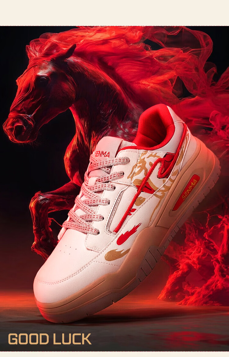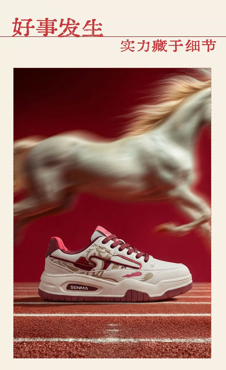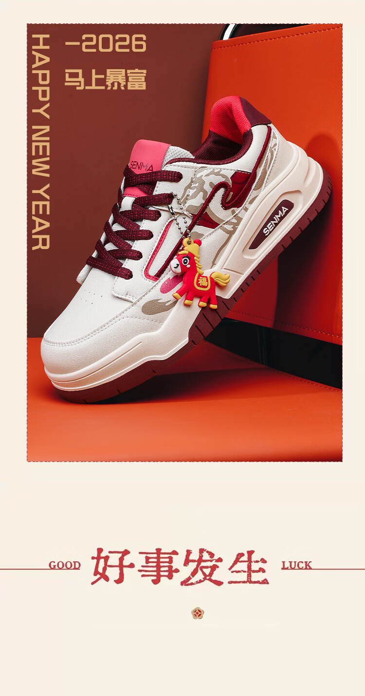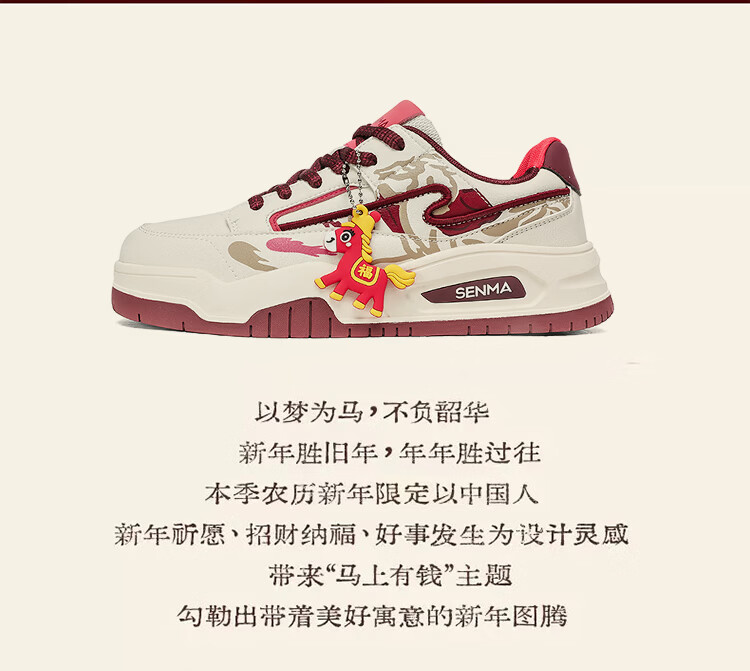 森馬【马年限定】2026新款本命年百搭小白鞋运动板鞋新年红色休闲男鞋 米红【升级款】 42 标准码数/现货秒发