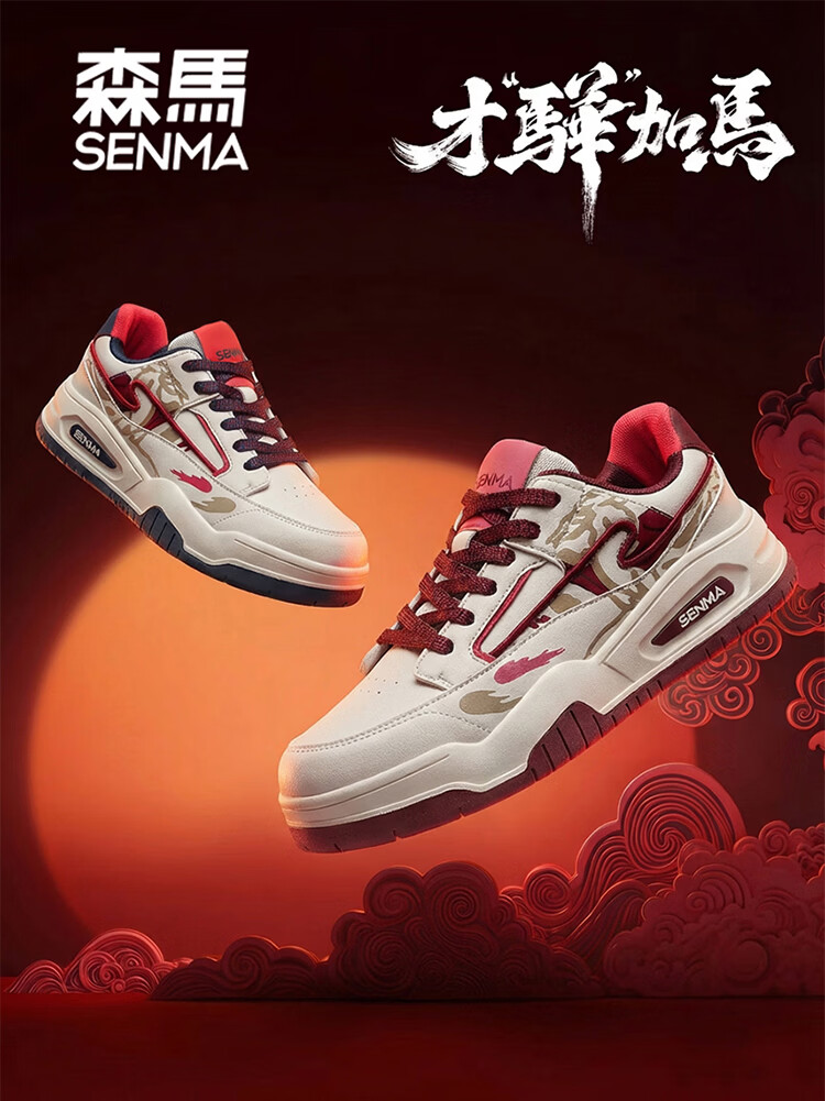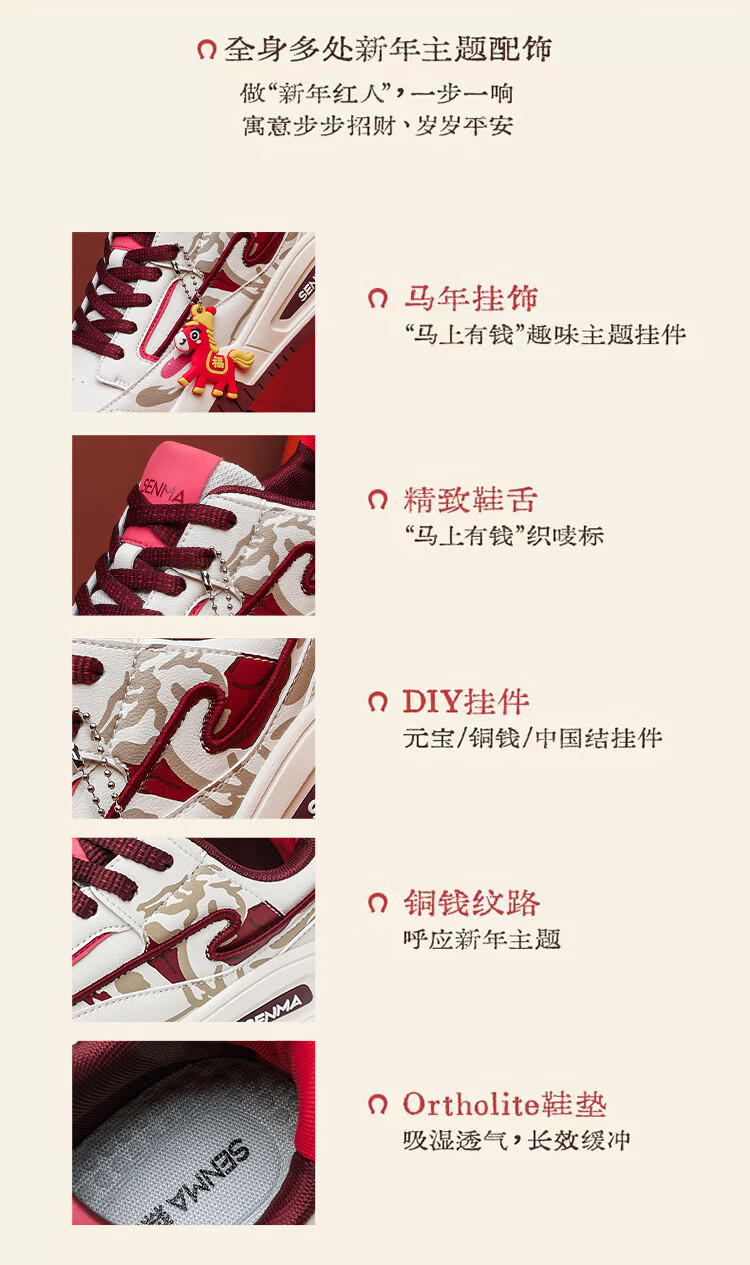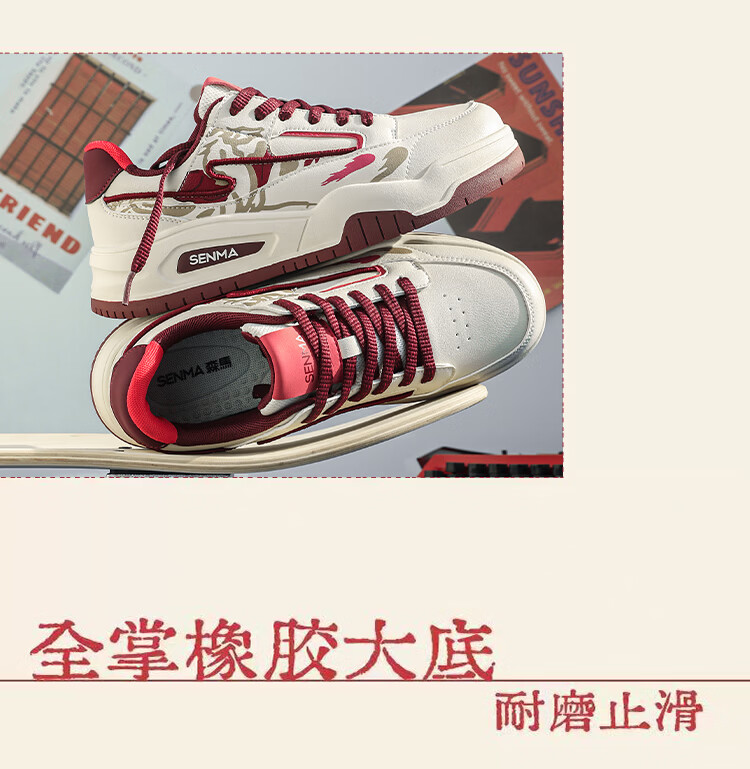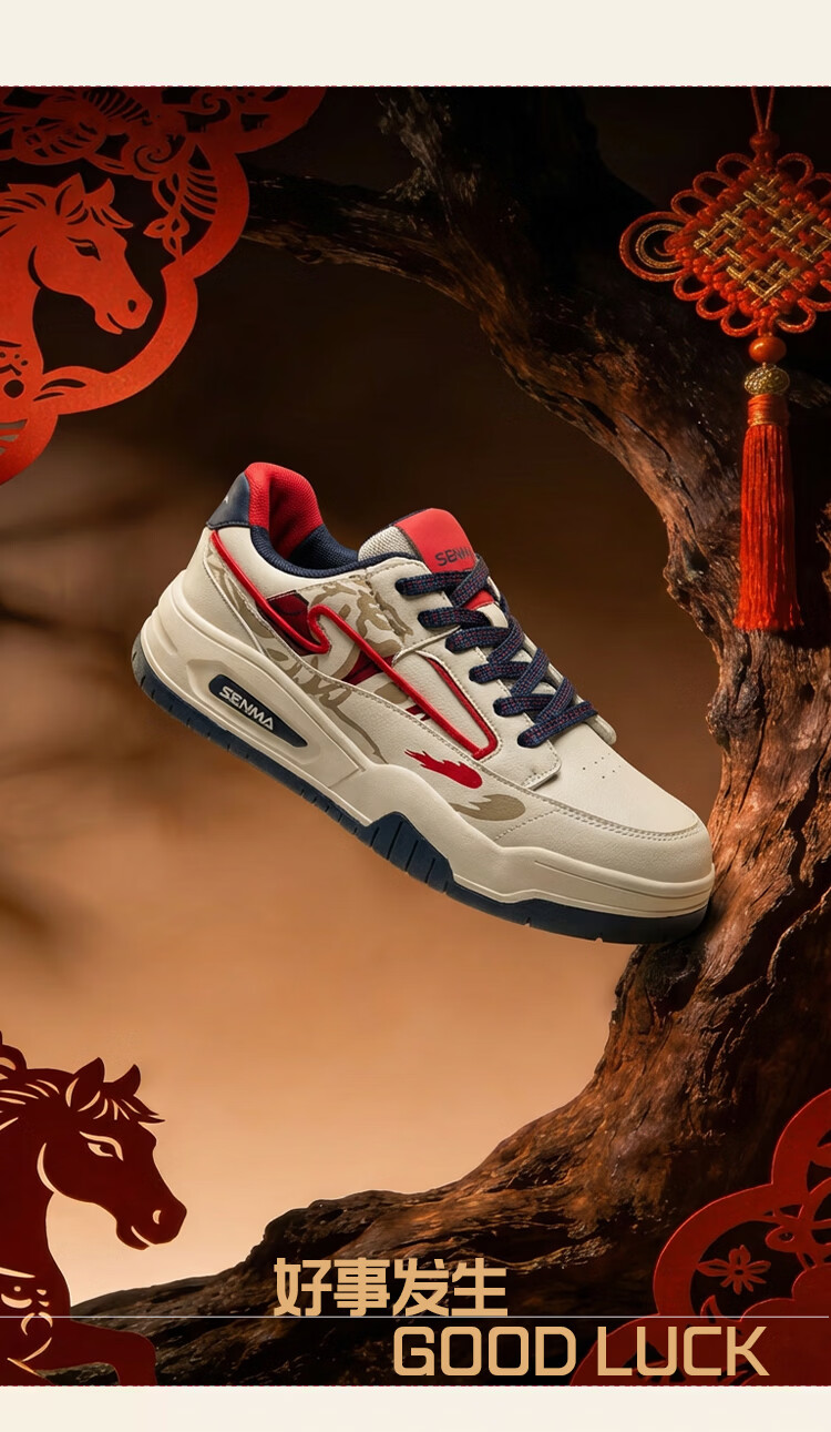 森馬【马年限定】2026新款本命年百搭小白鞋运动板鞋新年红色休闲男鞋 米红【升级款】 42 标准码数/现货秒发