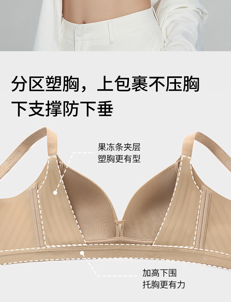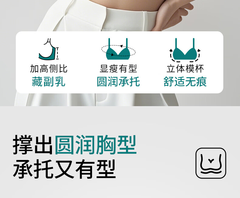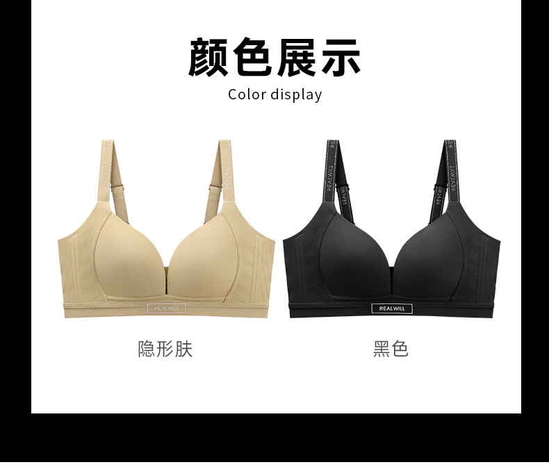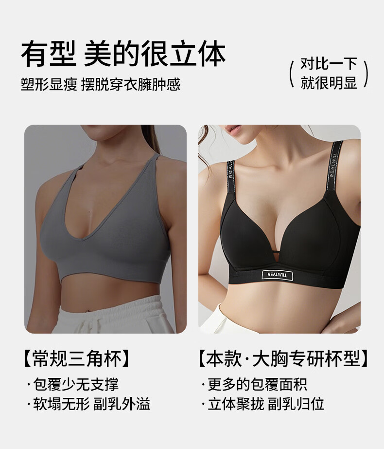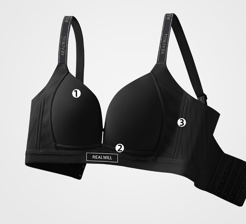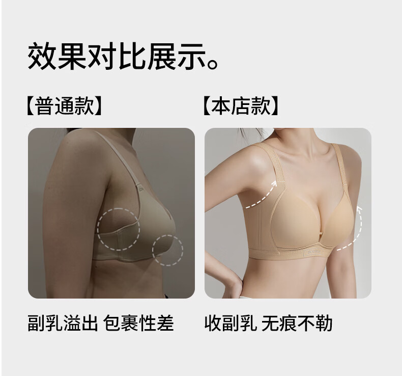 润微大胸显圆光面内衣女聚拢收副乳防下垂上托无痕深V美背文胸罩 神秘黑 M +(75DE)