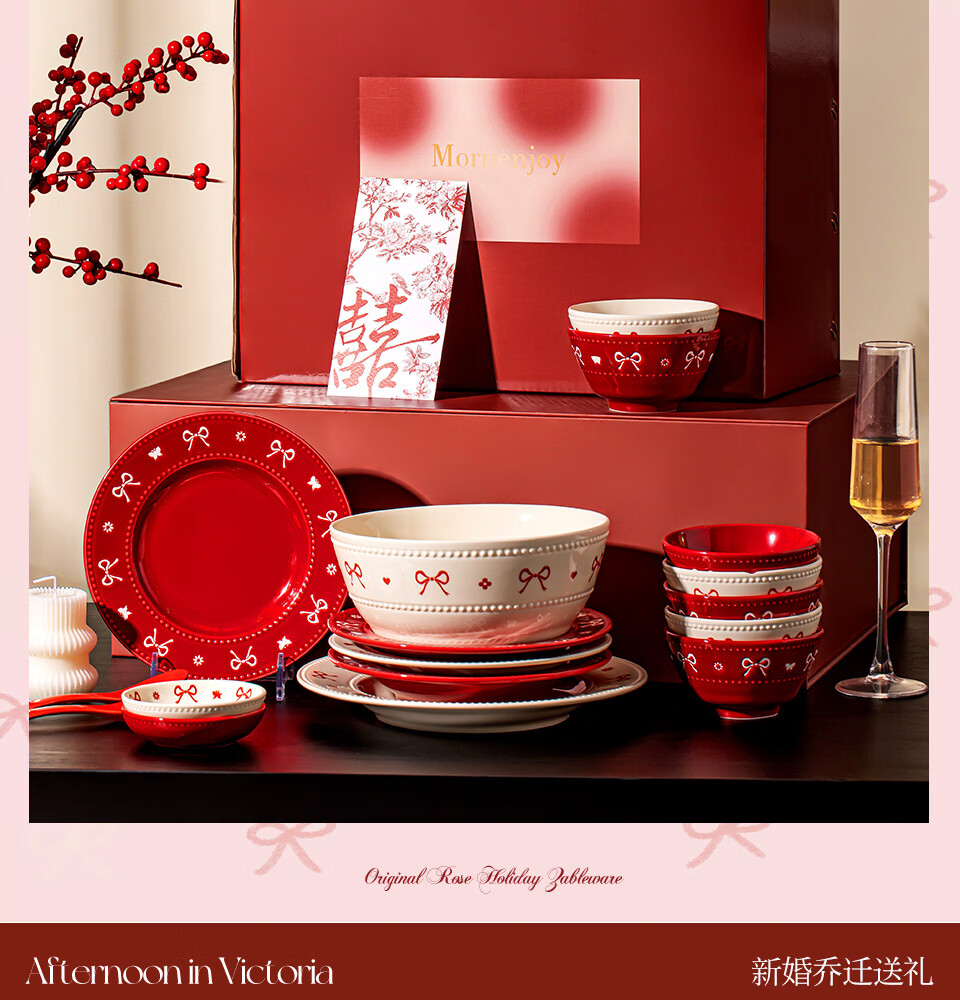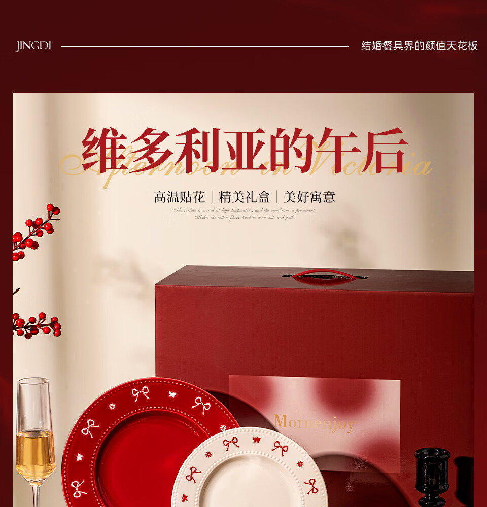 精缔陶瓷JINGDI新婚礼物高颜值釉下彩碗盘餐具套装全套2026新款乔迁结婚送礼家用 【高档礼盒-混色】4人食24件新婚结婚订婚礼物