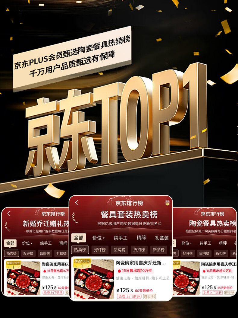 精缔陶瓷JINGDI景德镇碗家用2025新款轻奢高颜值碗碟套装家用陶瓷餐具乔迁新居 【店长推荐】升级配富贵煲 66件套