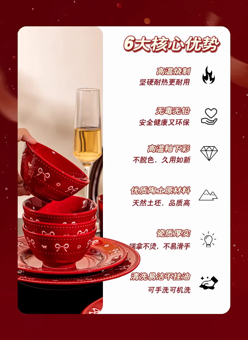 精缔陶瓷JINGDI2025新款碗碟套装家用碗筷乔迁高温骨瓷餐具套装景德镇陶瓷碗盘子 【店长推荐】66件升级配大汤碗 66件套