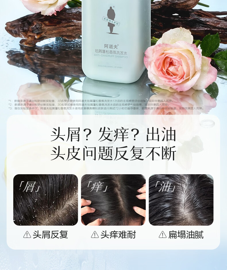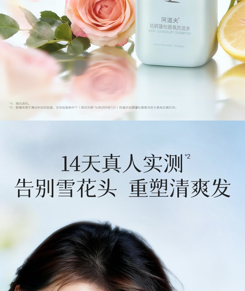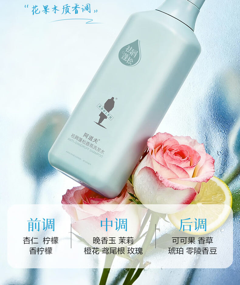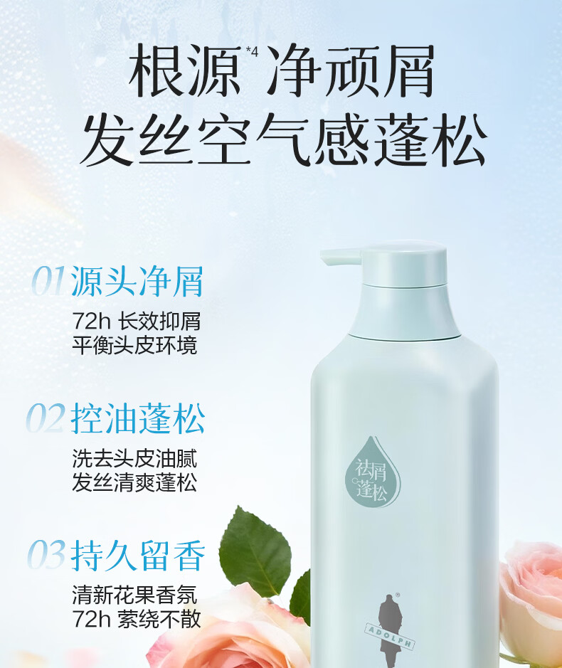 阿道夫洗发水518ml 控油去屑蓬松亮泽丝滑洗发膏露舒爽 男女通用 祛屑洗发水518ml 留香