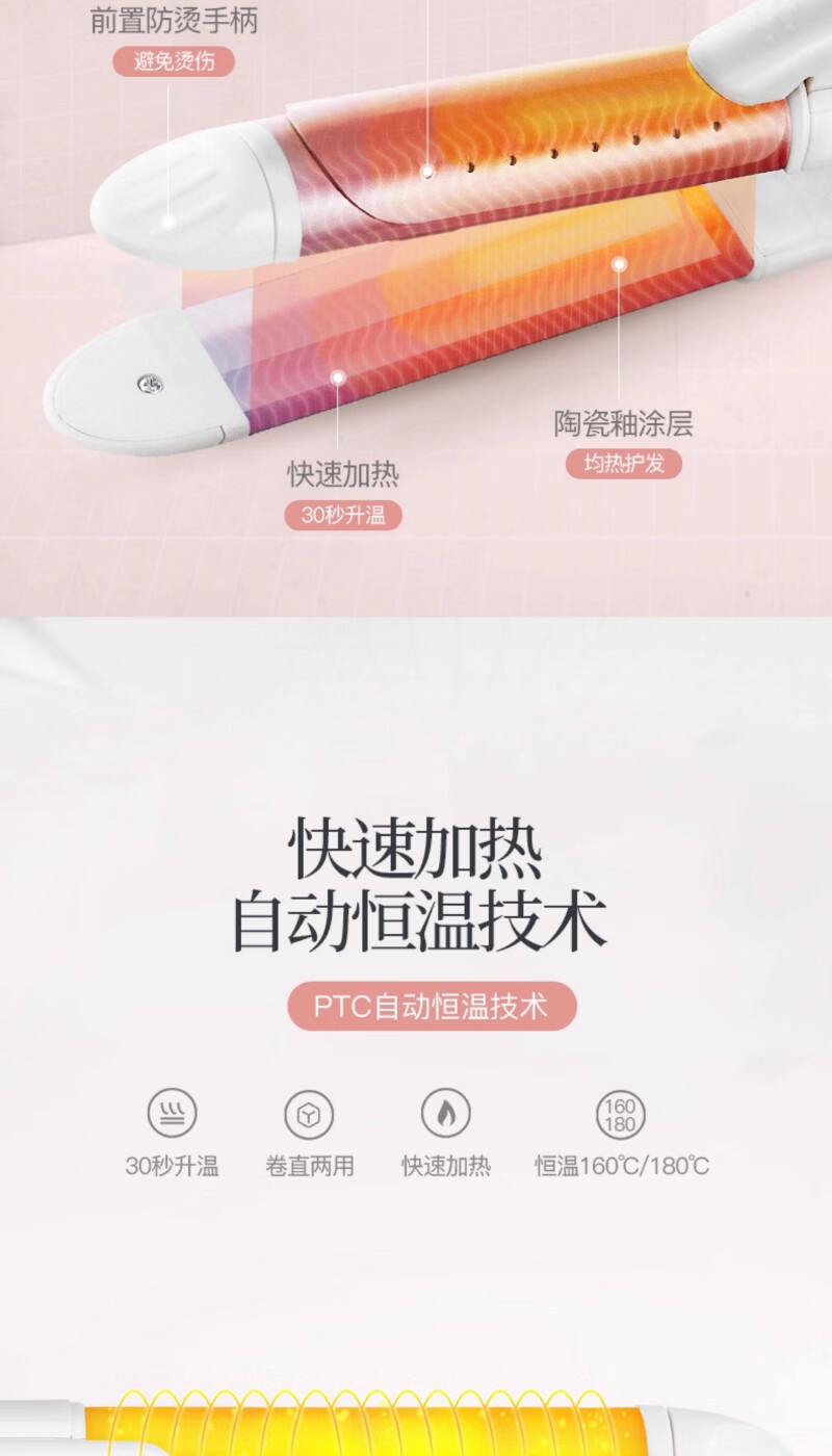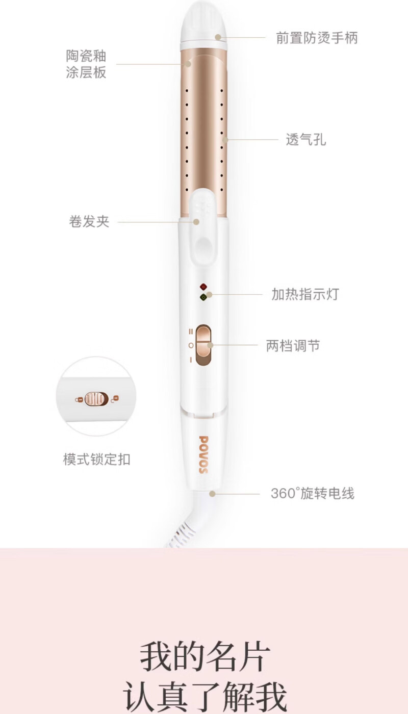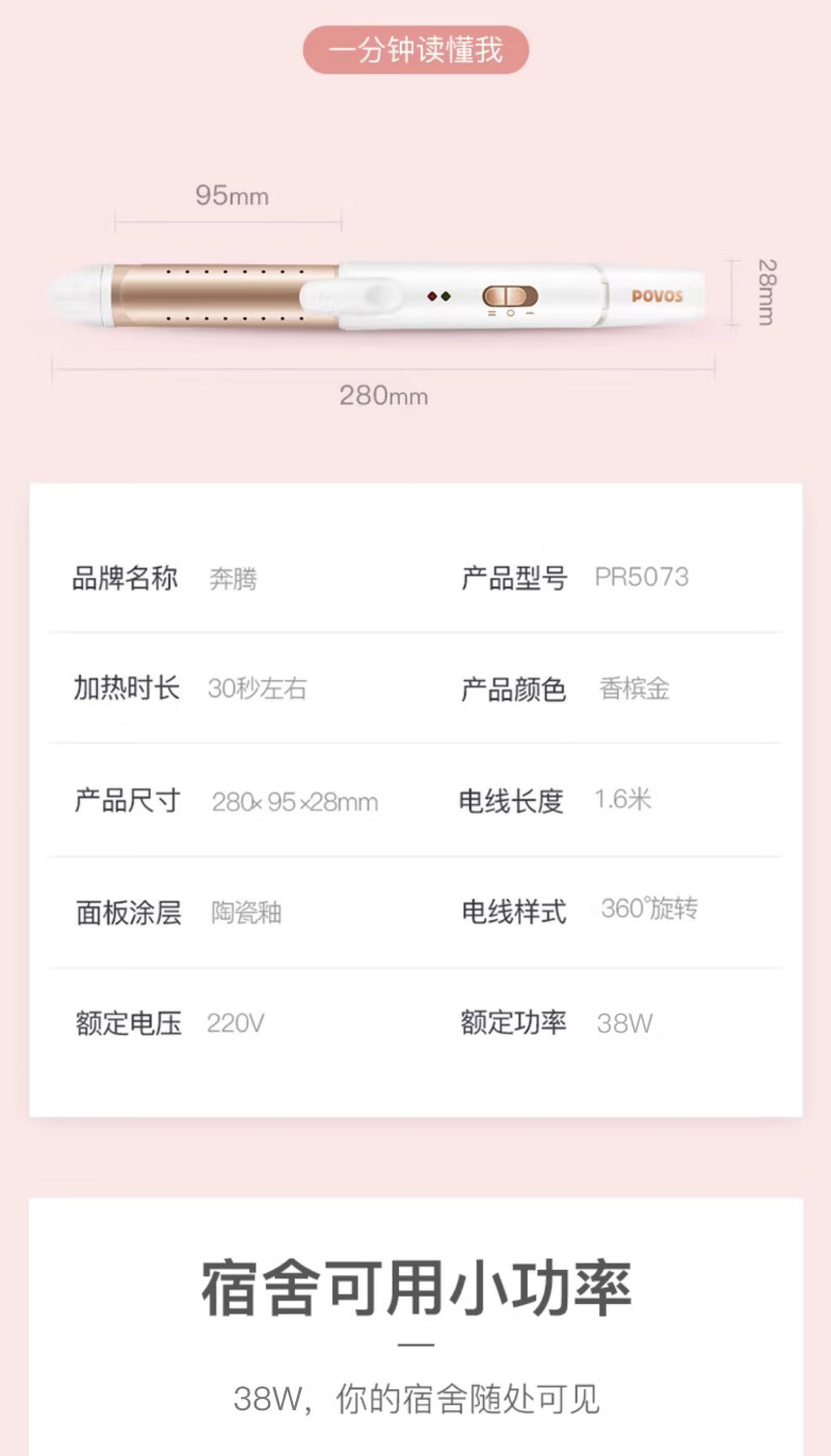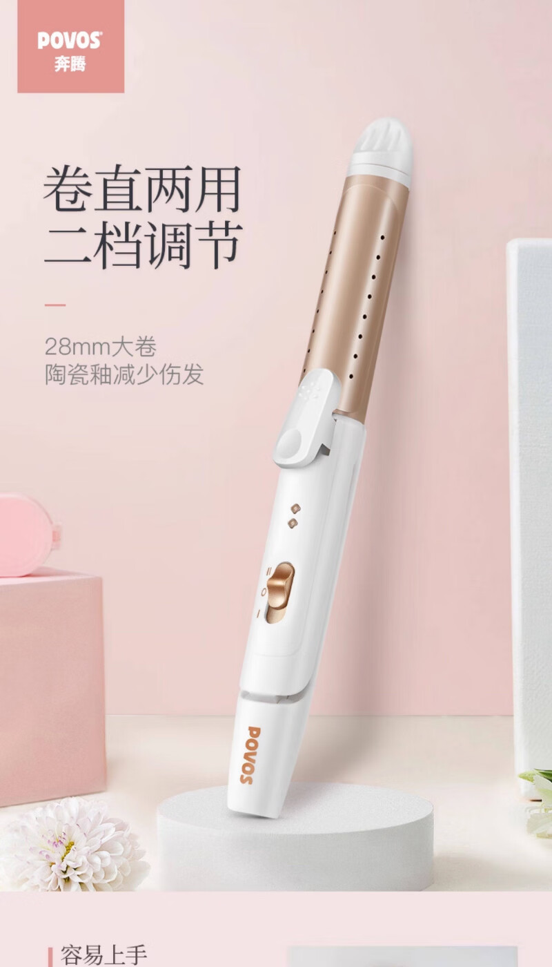 奔腾(POVOS)卷发棒卷直发器两用卷发器直发器迷你夹板刘海烫发美发电卷棒PR5073节日礼物生日礼物送女友 【卷直两用】PR5073香槟金 28mm