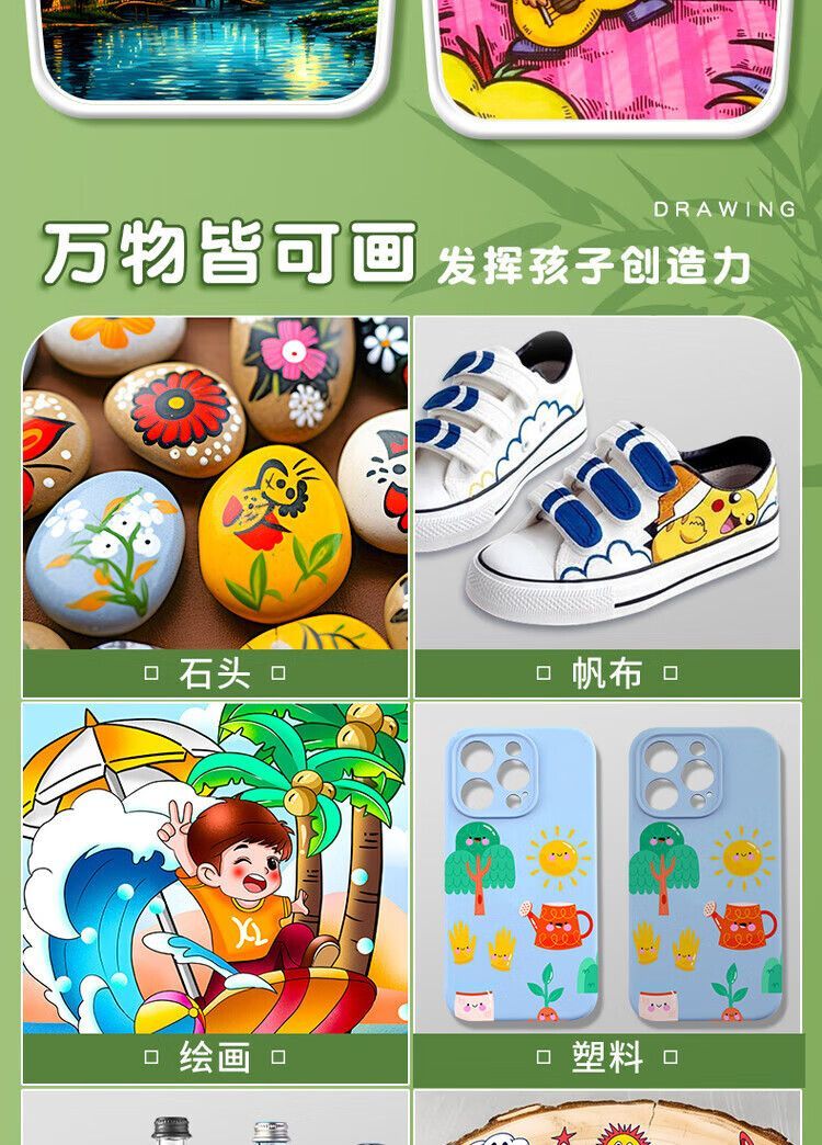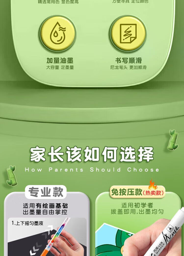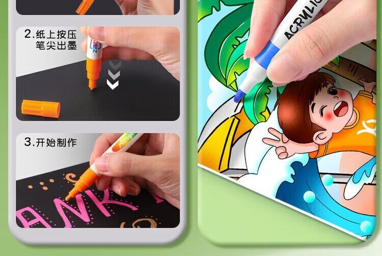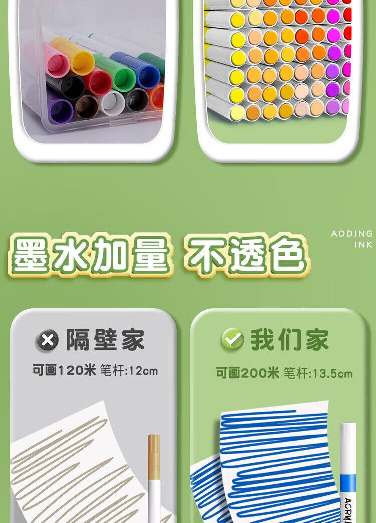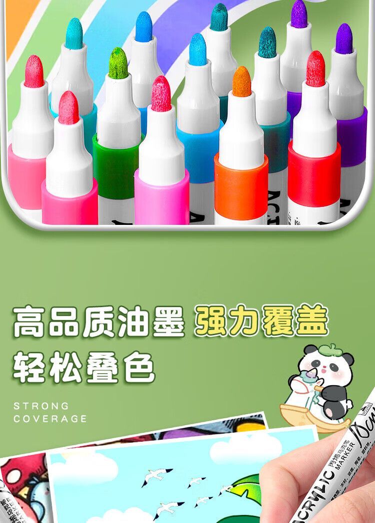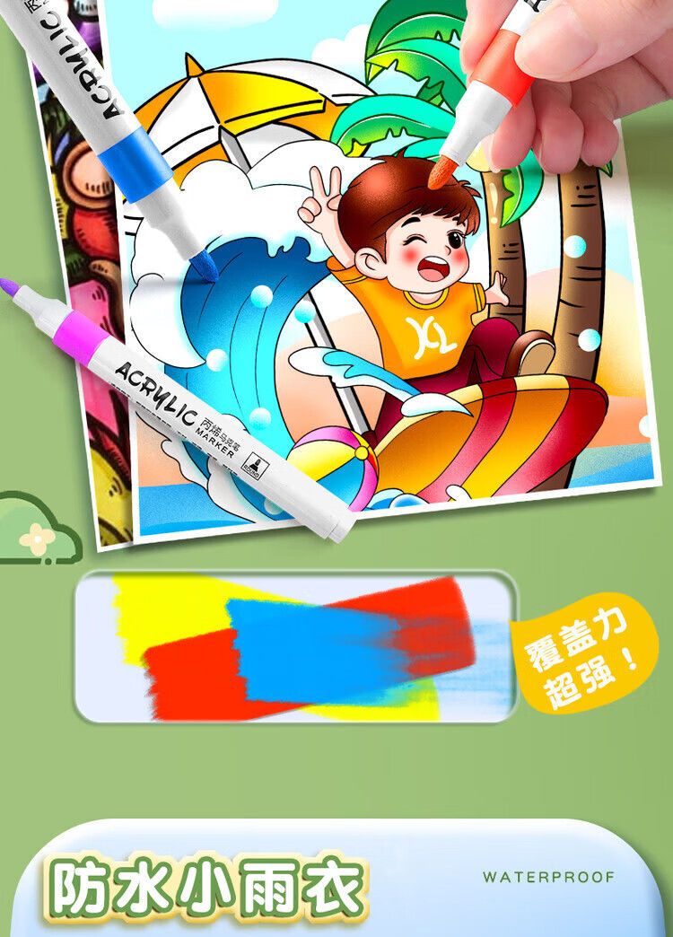 MEEIAOREY丙烯马克笔小学生专用美术大容量不透色可叠色儿童彩笔24色幼儿园水彩笔36色画画绘画可水洗彩色笔 【全套36色】加墨100%-速干可叠色送贴纸 【粗杆】可叠色可水洗