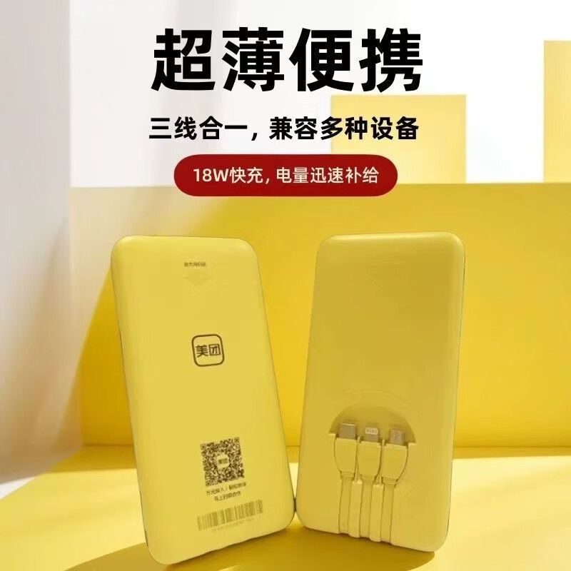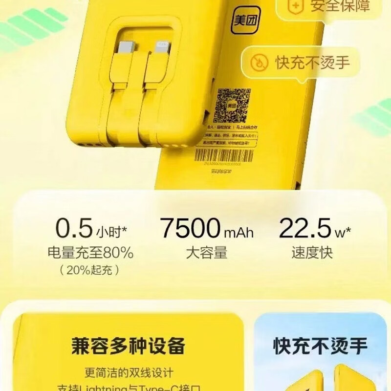 美团3C认证美团充电宝超级快充超薄自带三合一数据线超薄便捷可上飞机 美团超级快充【7500】充电宝