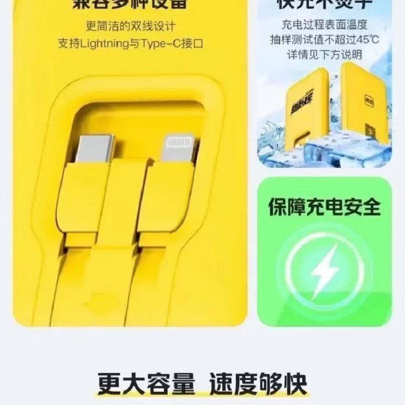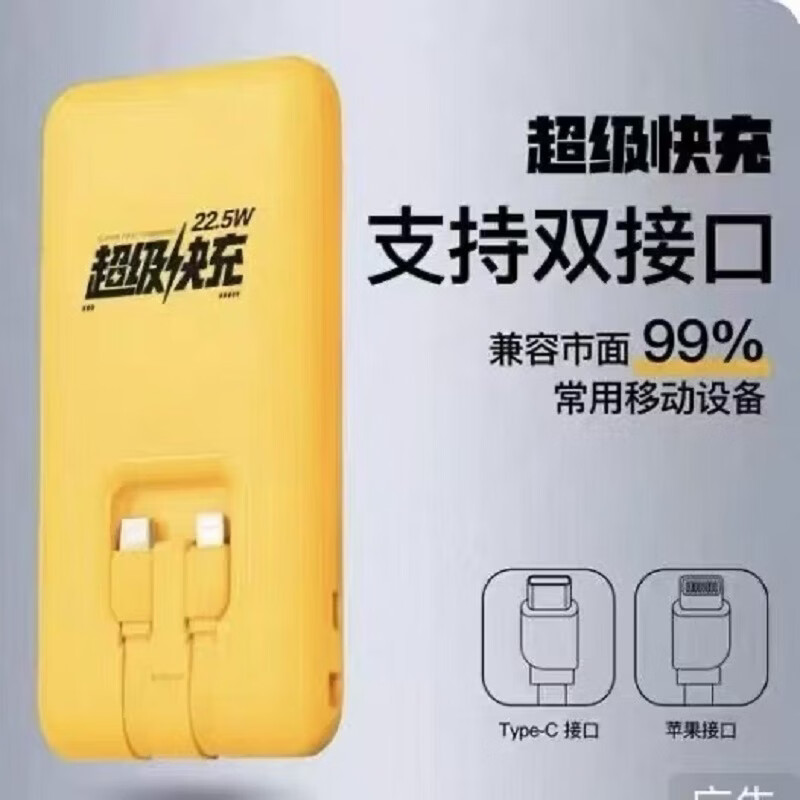 二伯【3C认证充电宝 可上飞机高铁】27000毫安22.5w超级快充自带线大容量移动电源适用苹果安卓露营用 20000毫安(新3C认证+苹果安桌双线+数显))
