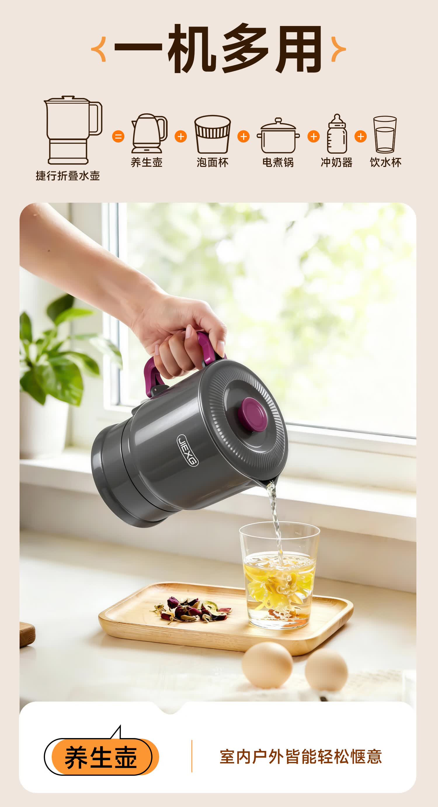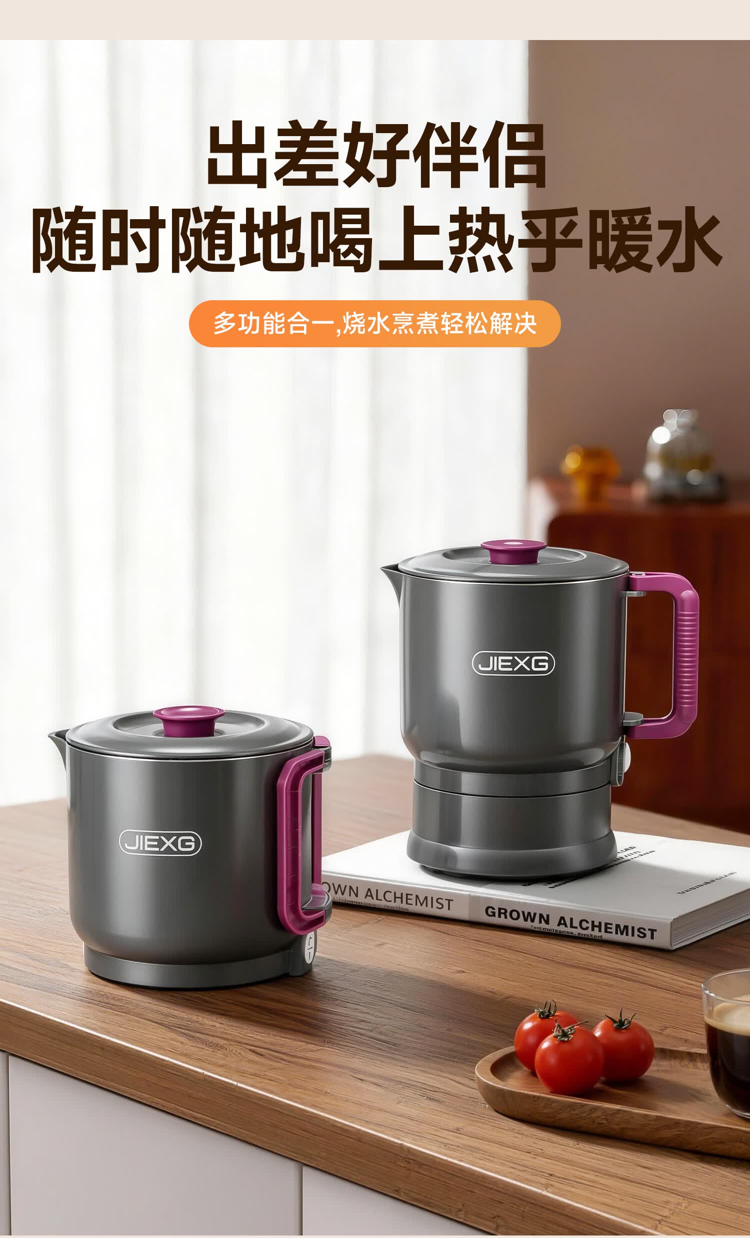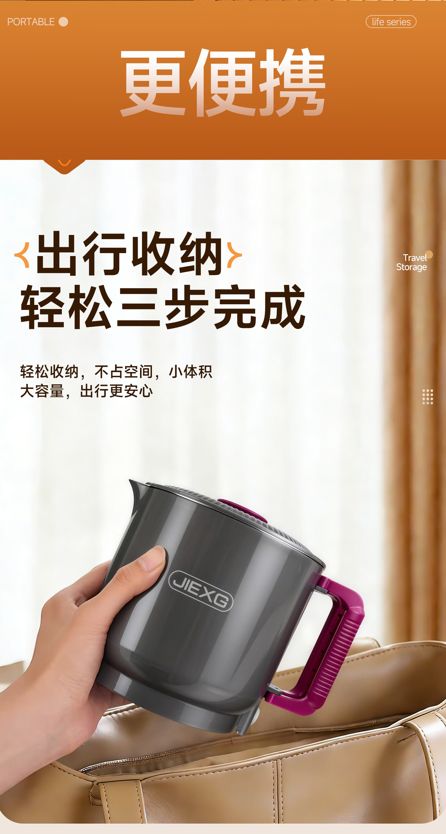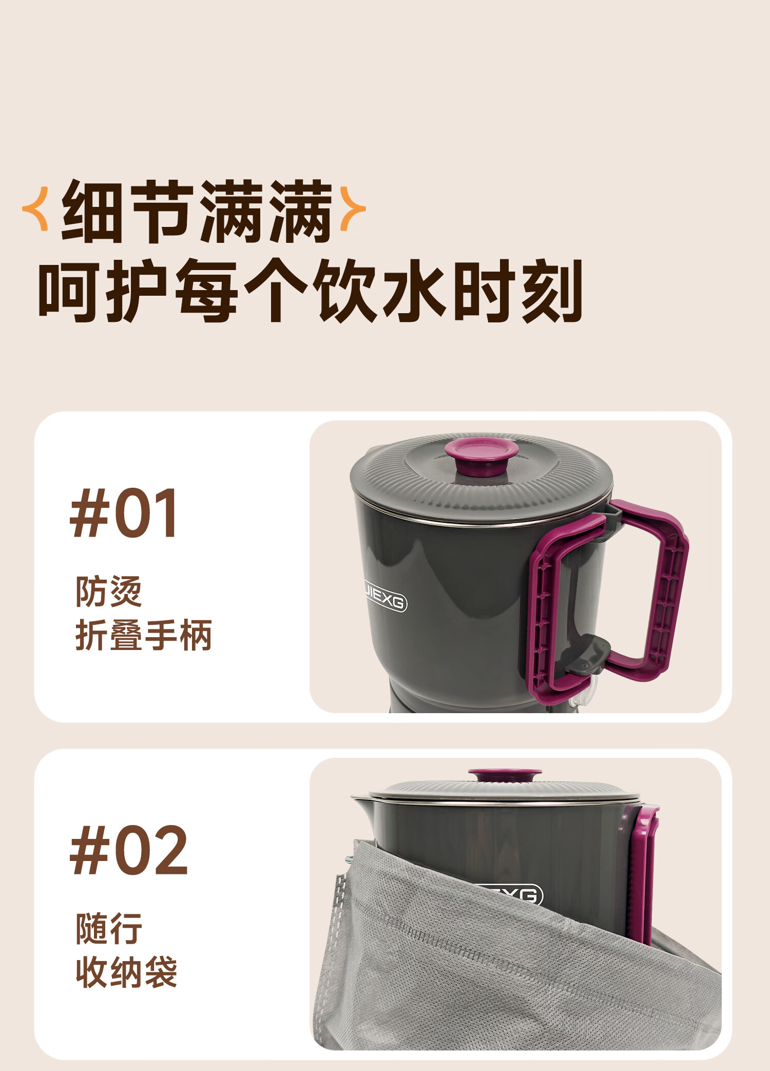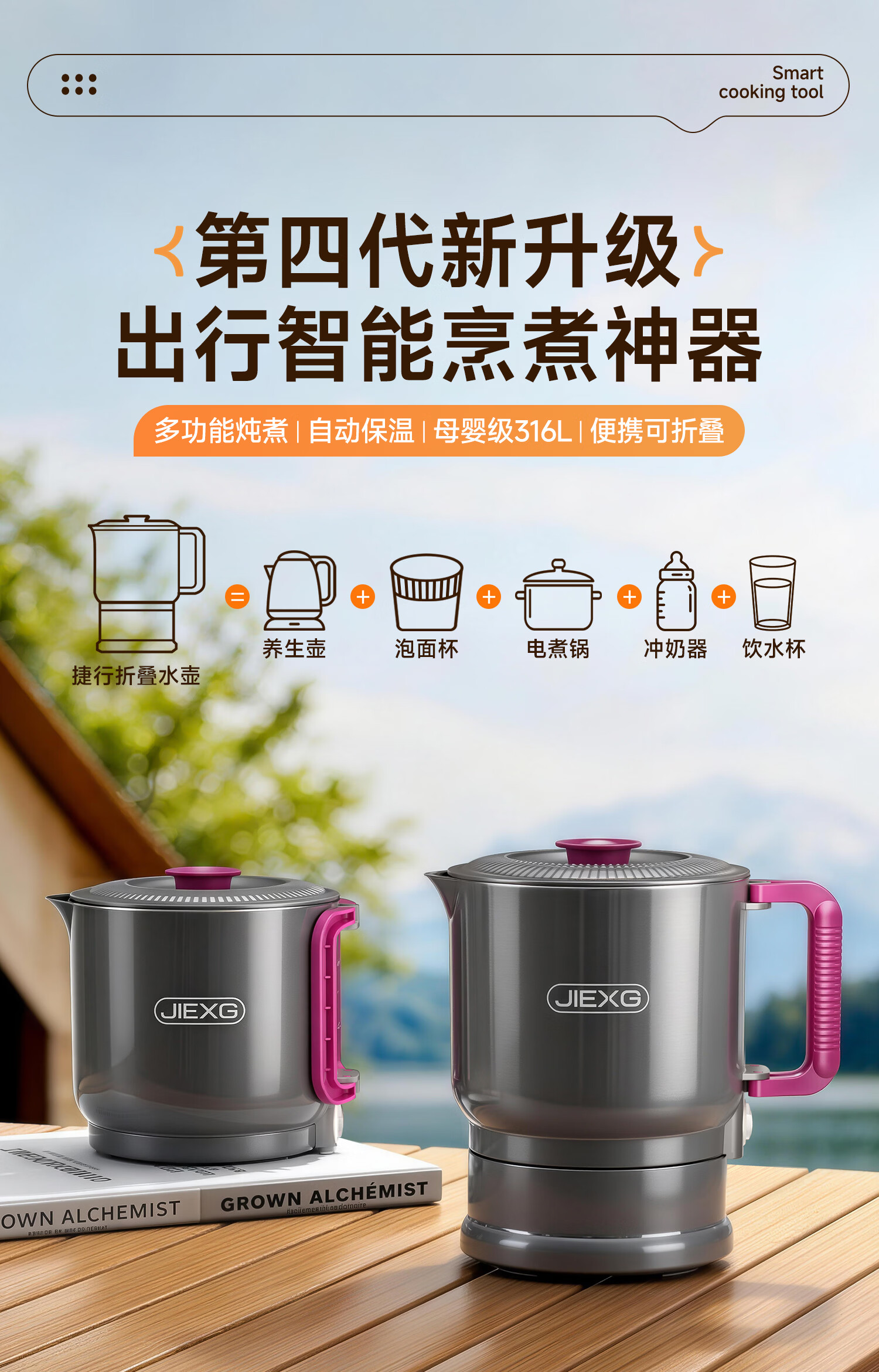 JIEXG便携式烧水壶折叠不锈钢电热水壶旅行出差烧水杯家用宿舍小型泡面杯 1L 【智能款可调温】+316不锈钢