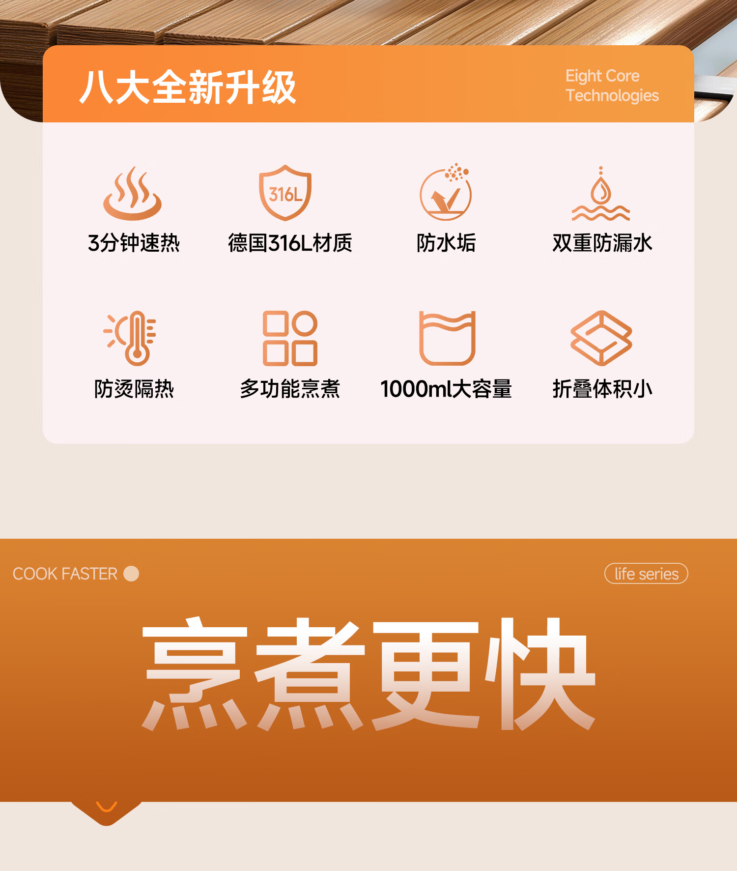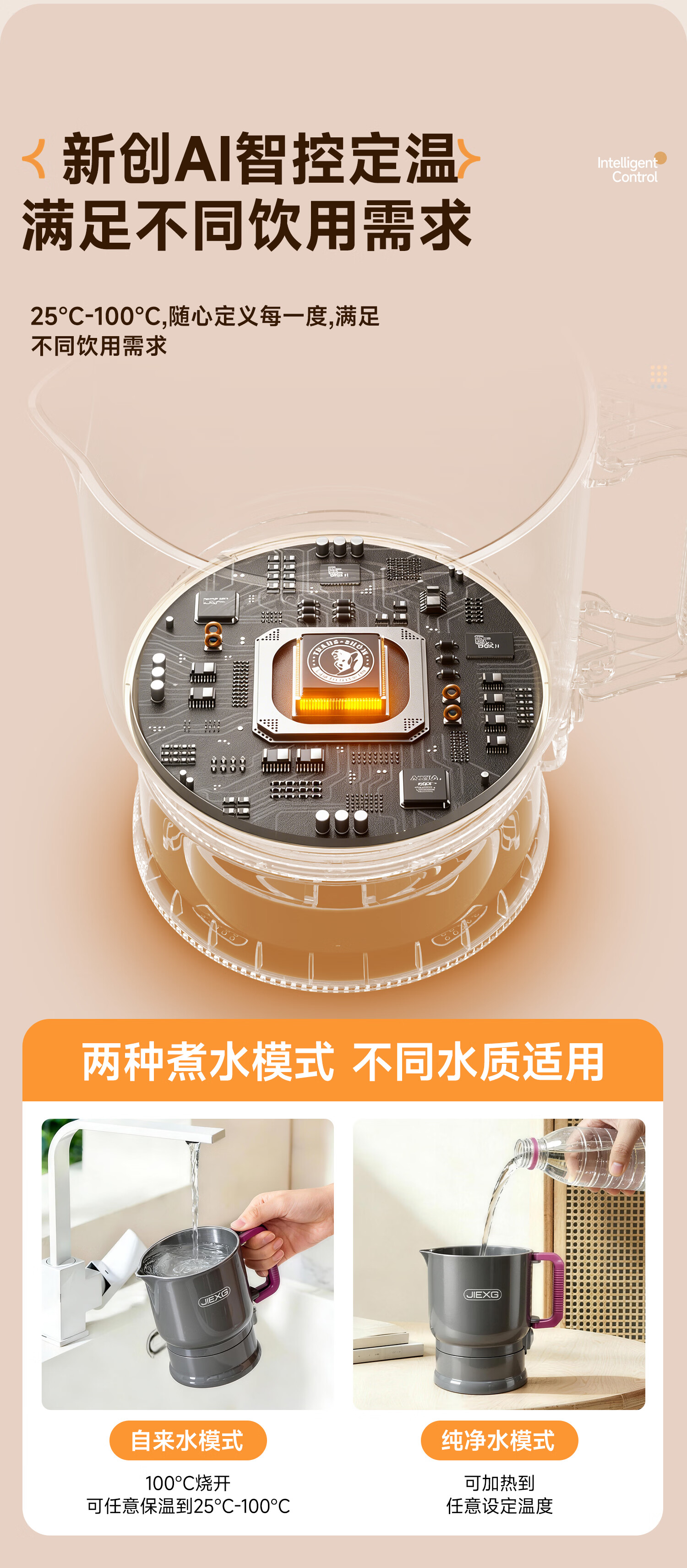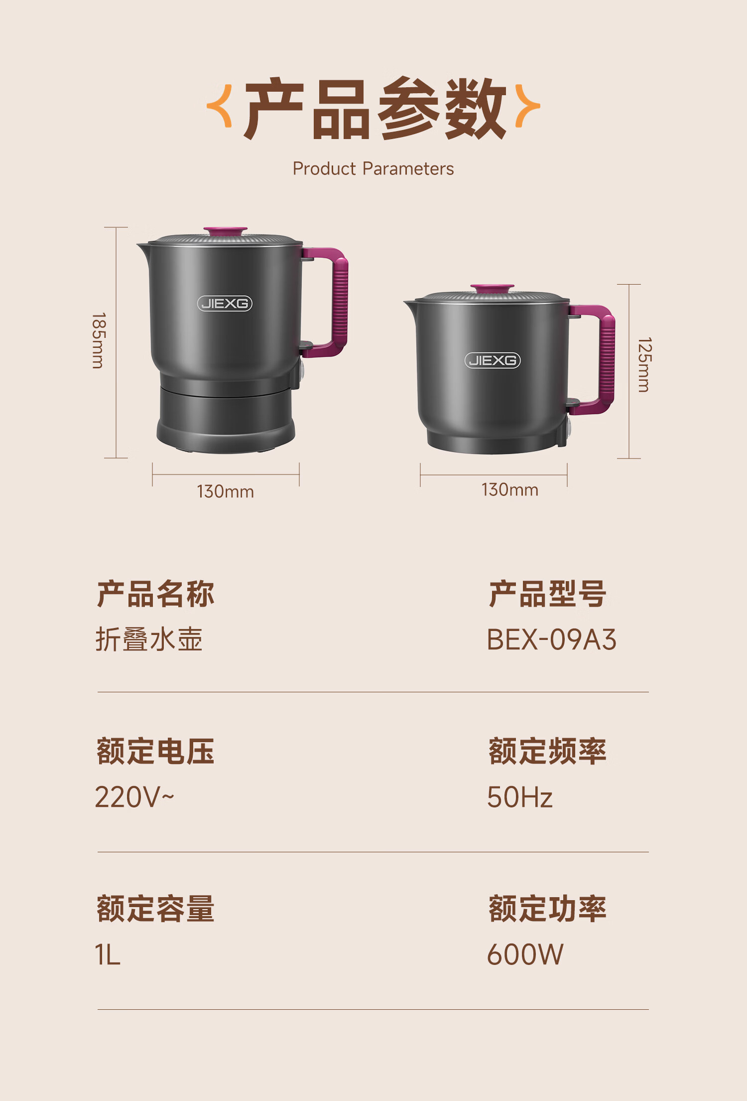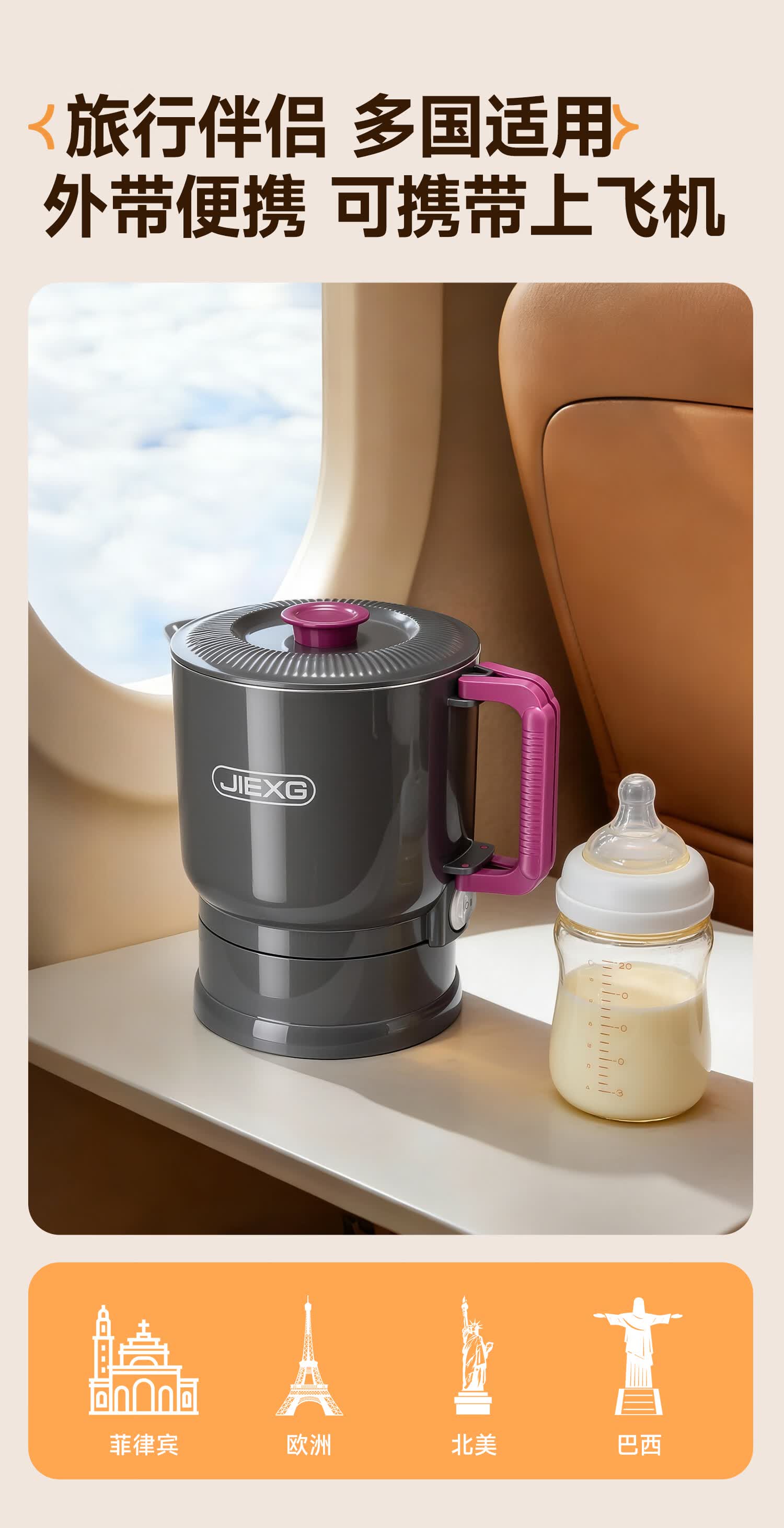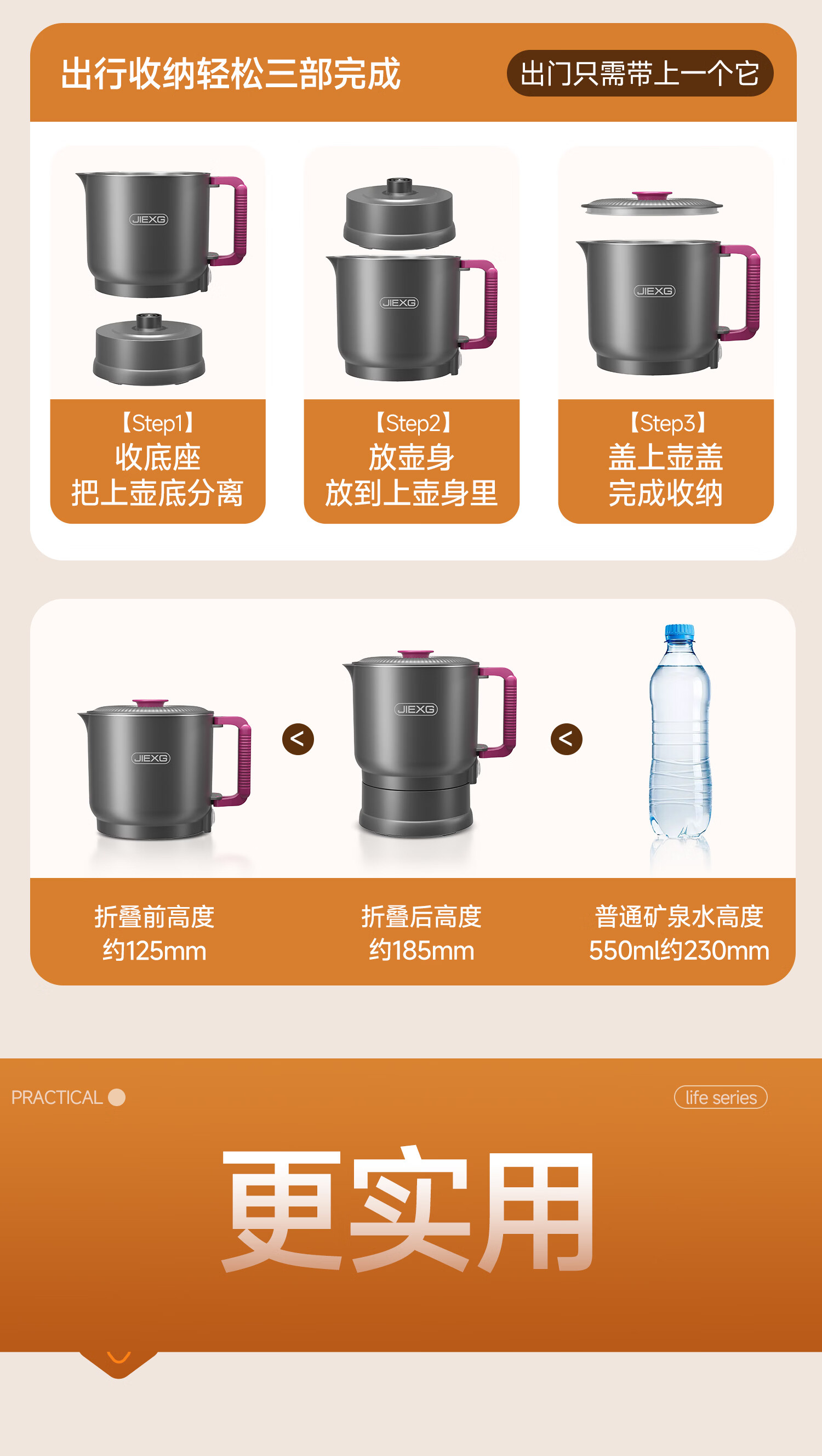 JIEXG便携式烧水壶折叠不锈钢电热水壶旅行出差烧水杯家用宿舍小型泡面杯 1L 【智能款可调温】+316不锈钢