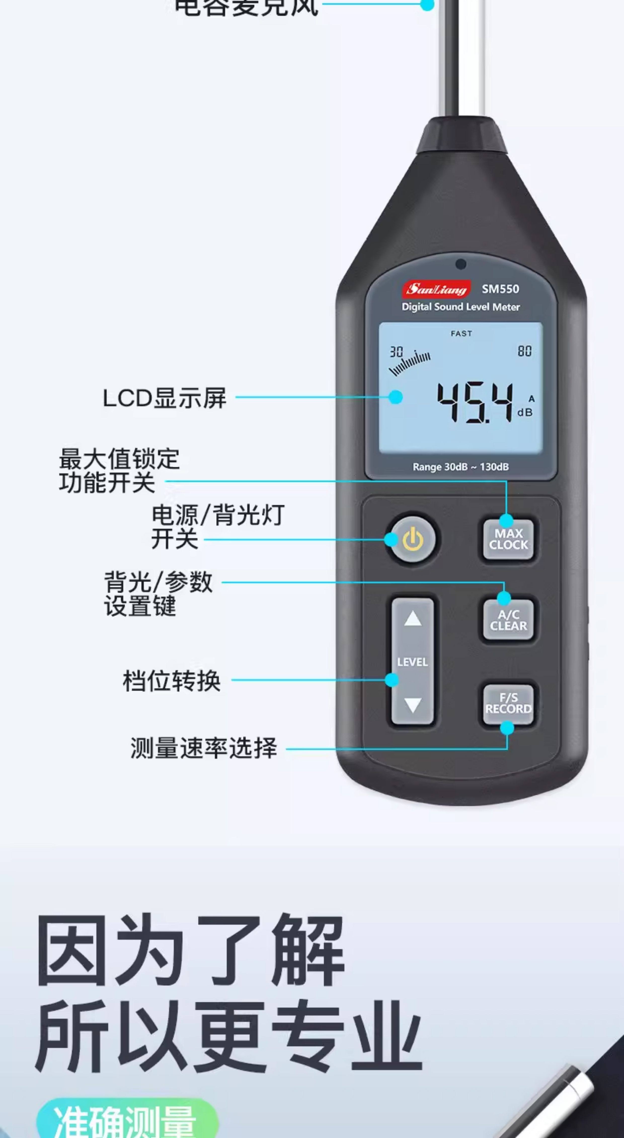 三量(sanliang)三量分贝测试器分贝仪家用噪音计测音量声音噪声噪音声测试仪 SM350(蛇年活动款) 无规格