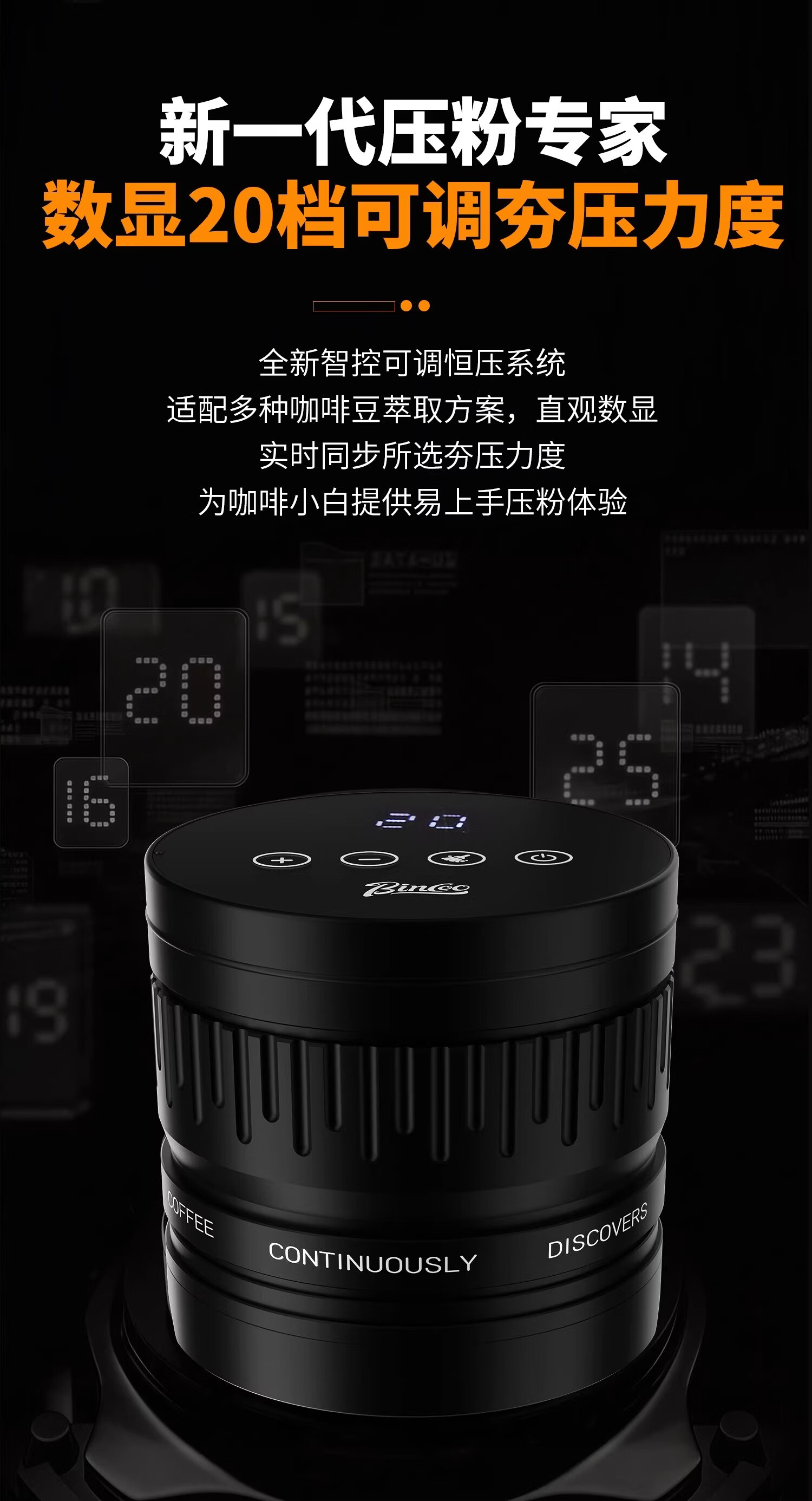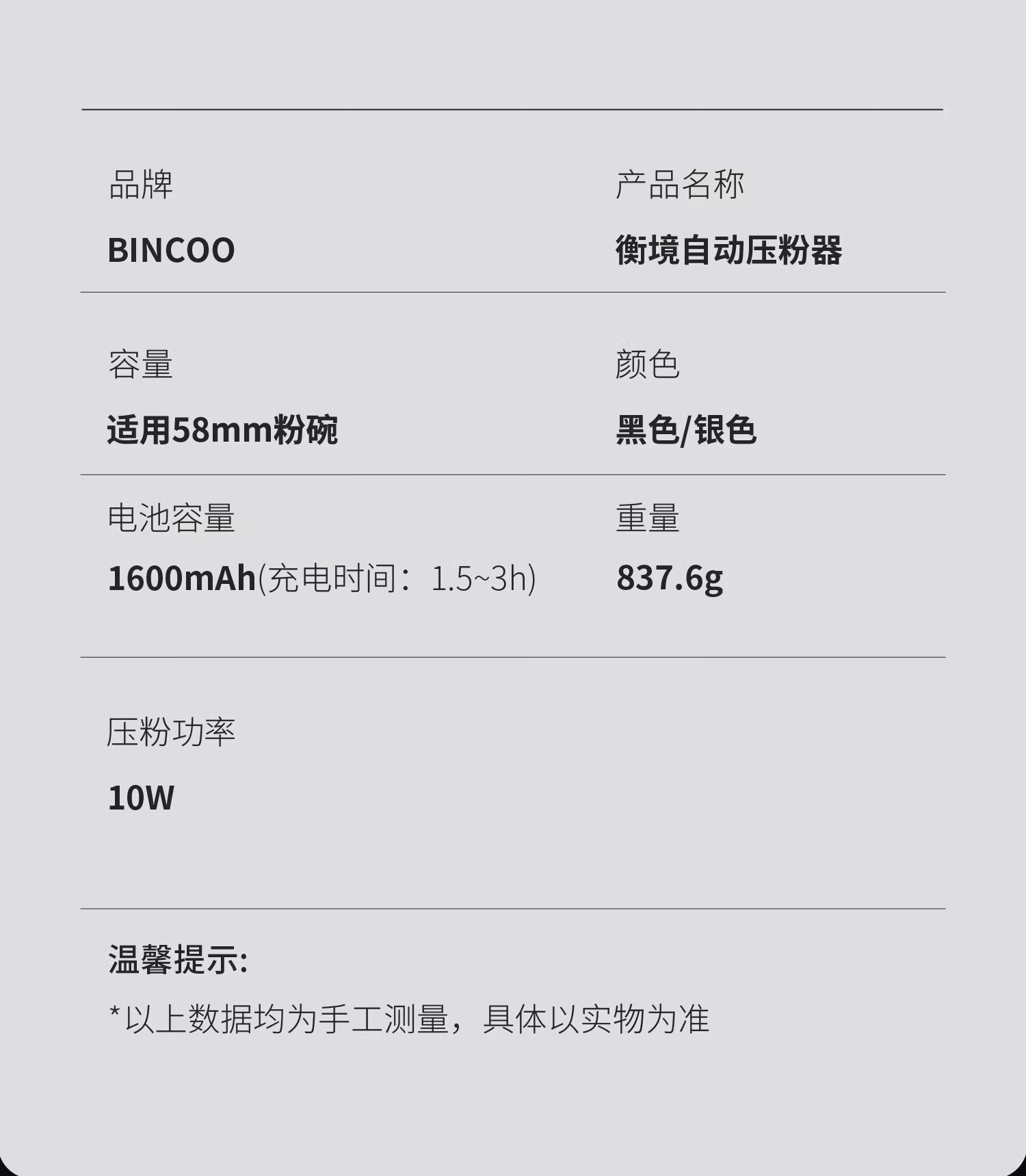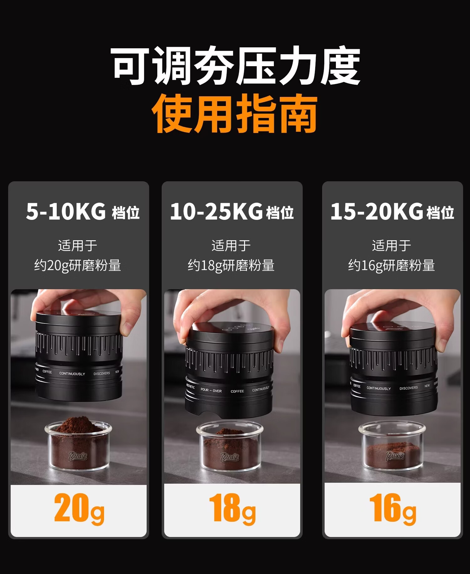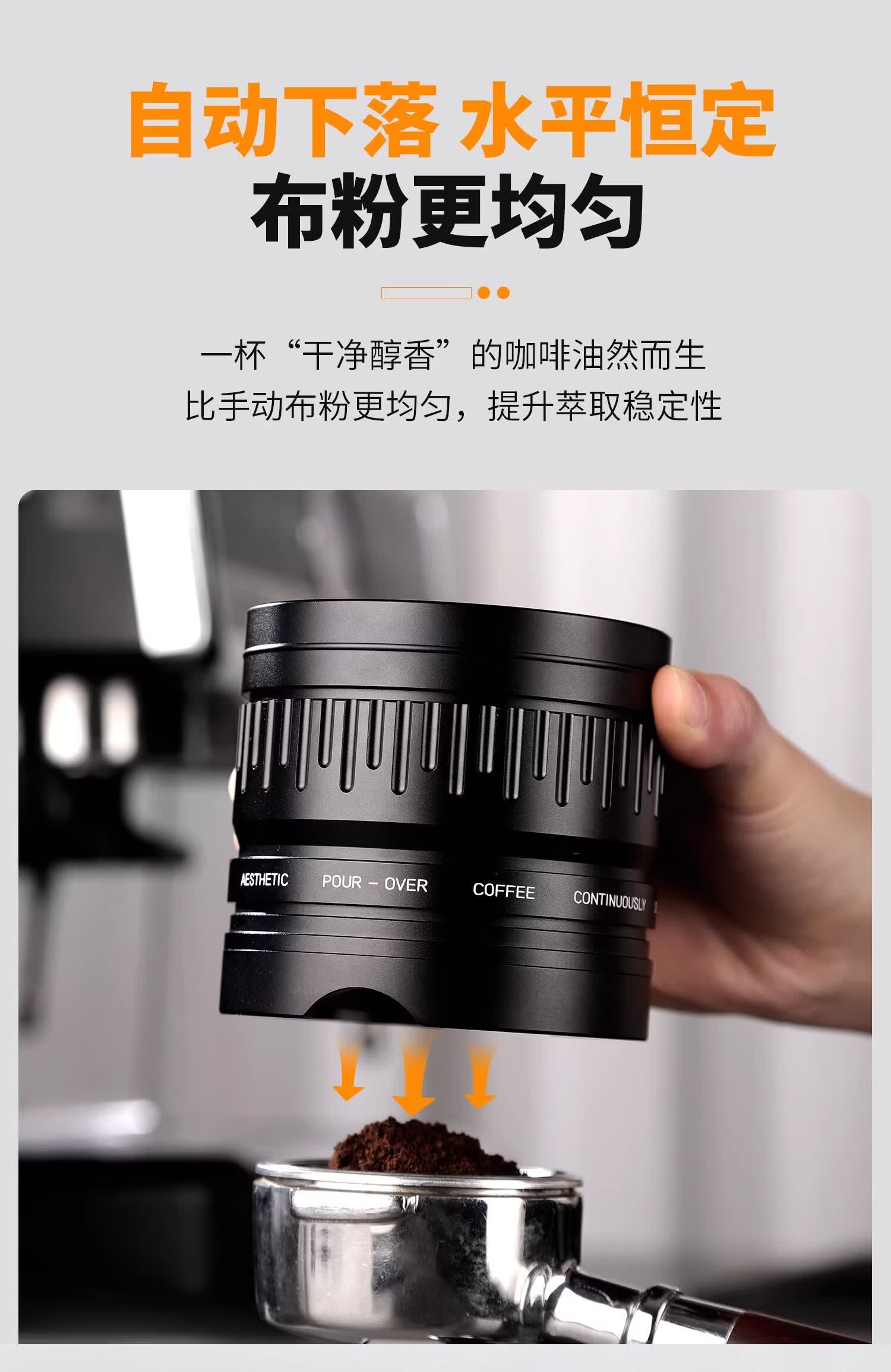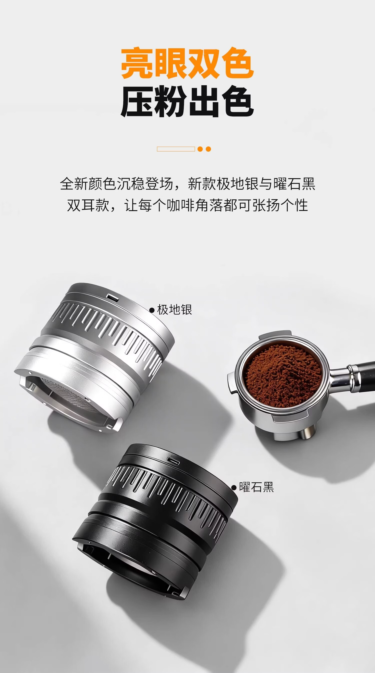 Bincoo意式自动布粉器电动咖啡压粉器恒力可调节20磅压粉锤二合一 极地银-双耳【20磅可调】 58mm