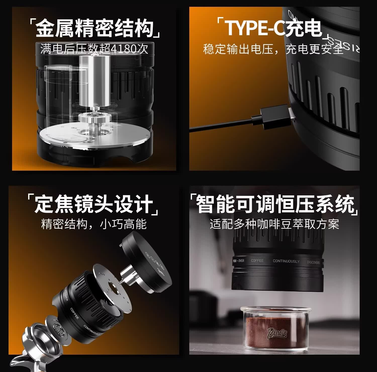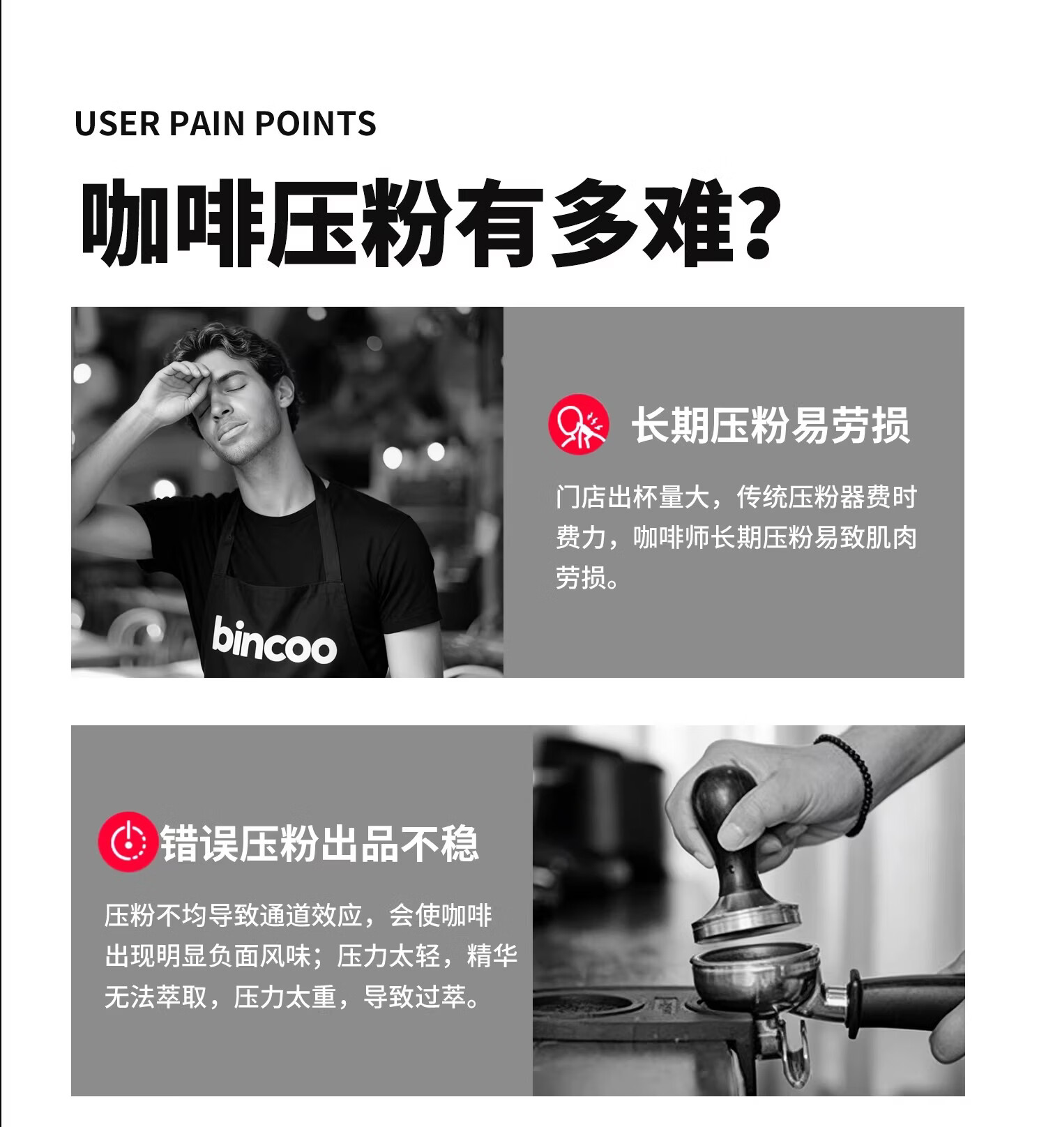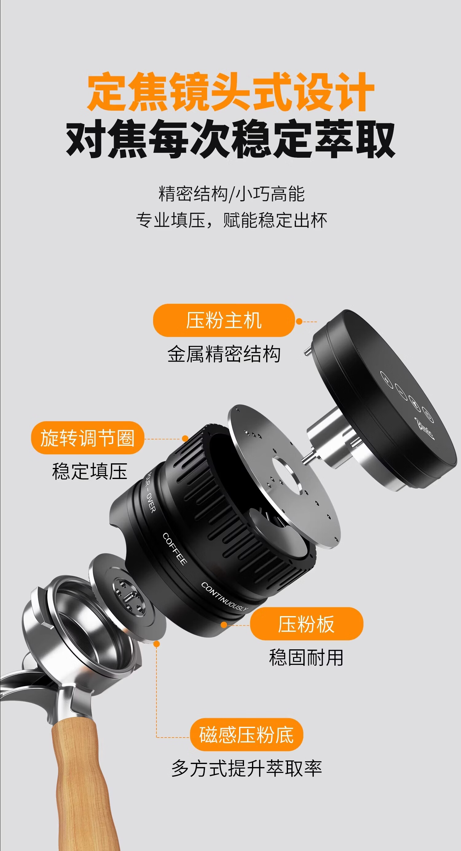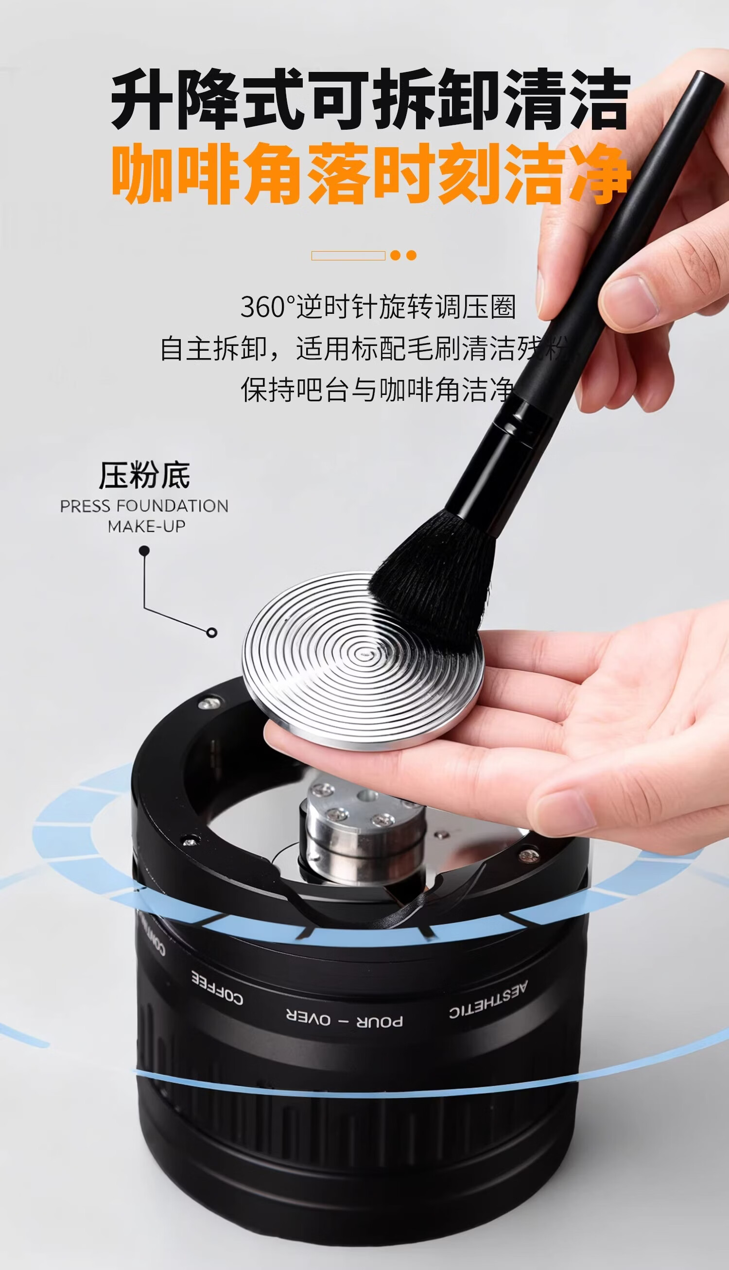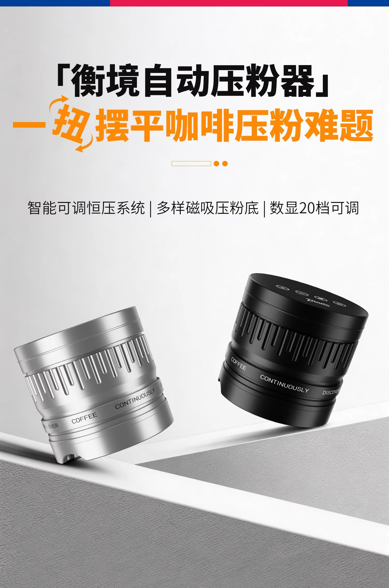 Bincoo意式自动布粉器电动咖啡压粉器恒力可调节20磅压粉锤二合一 极地银-双耳【20磅可调】 58mm