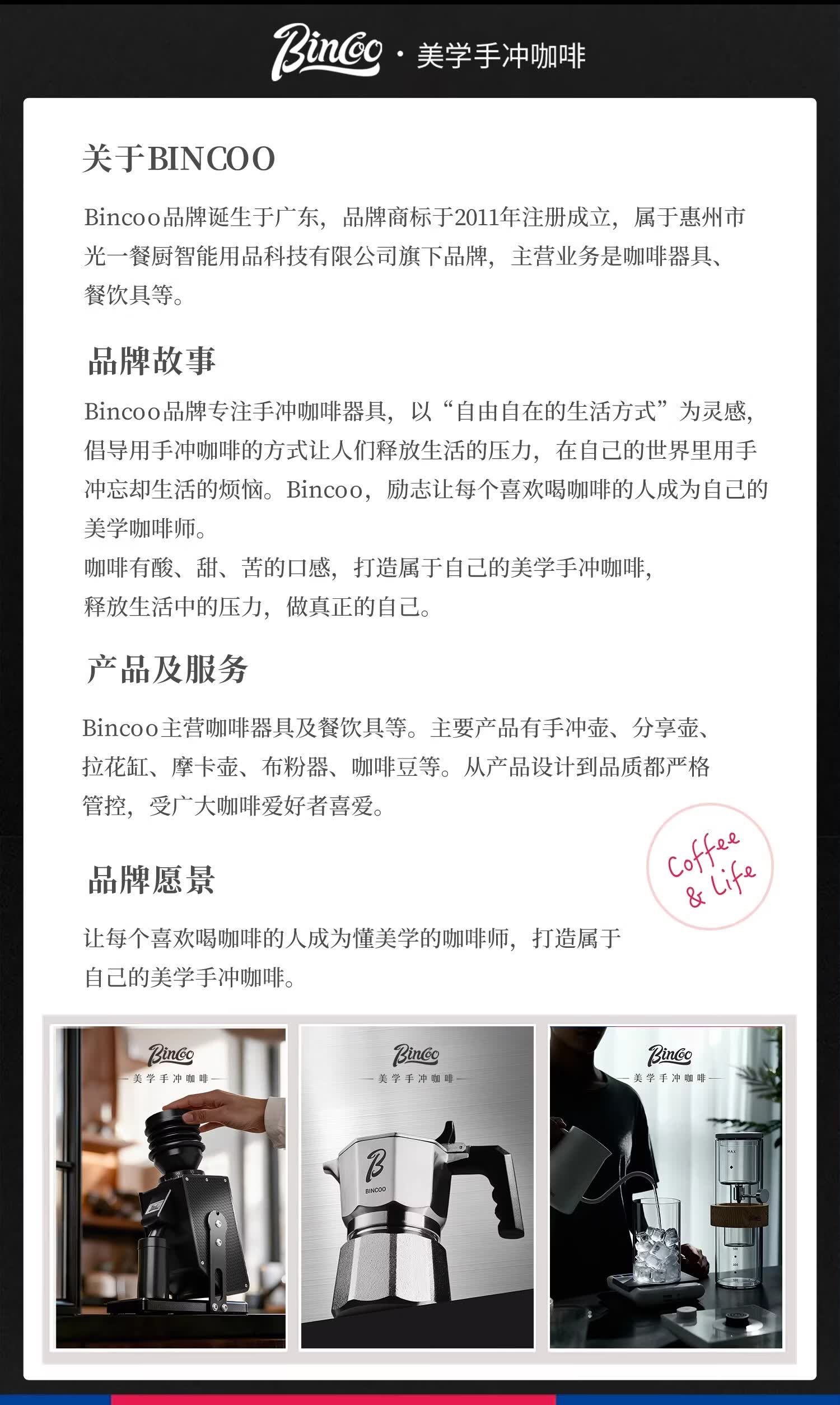 Bincoo手冲咖啡壶套装过滤分享壶陶瓷滤杯手磨咖啡磨豆机家用便携 渐变粉-两件套