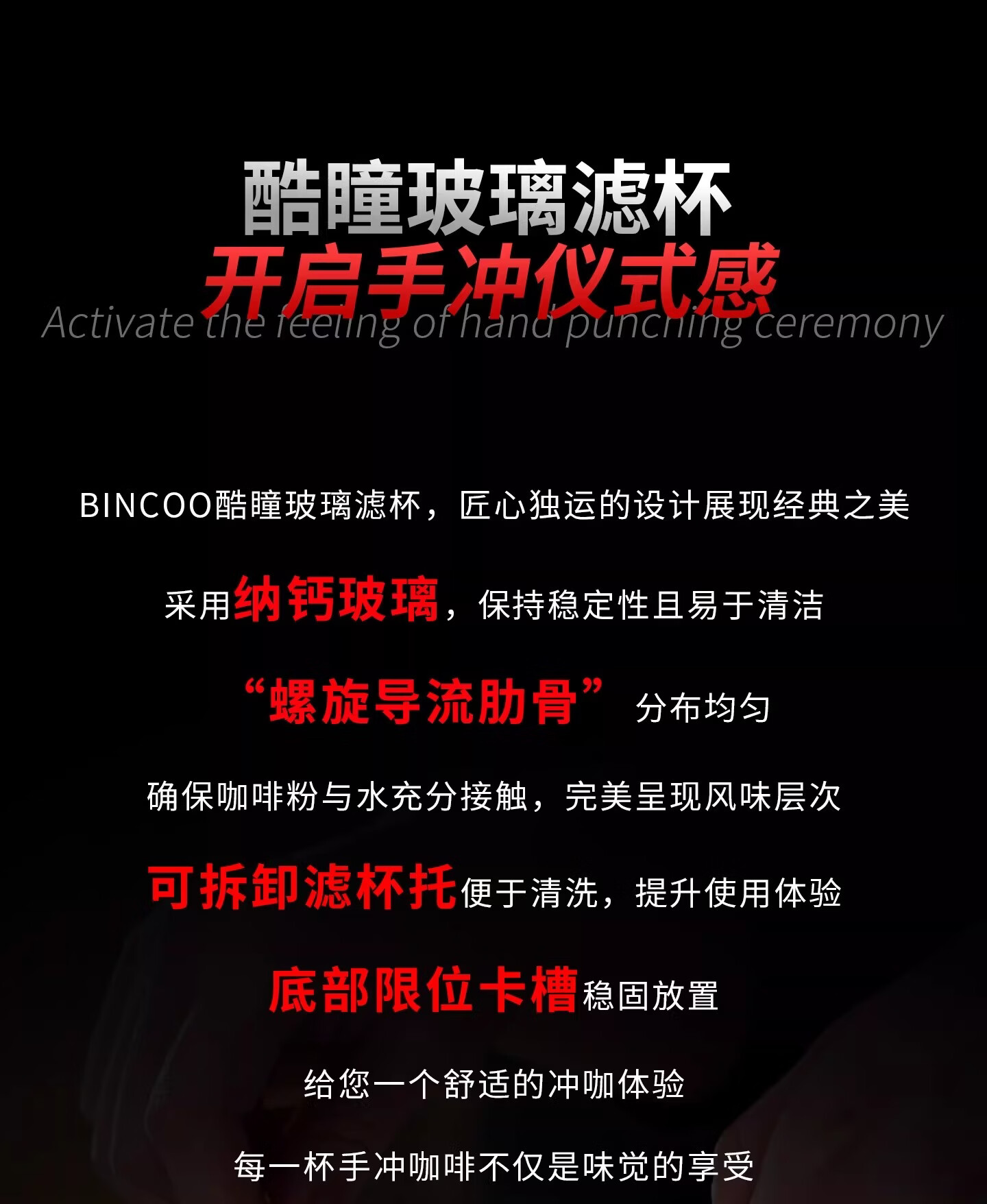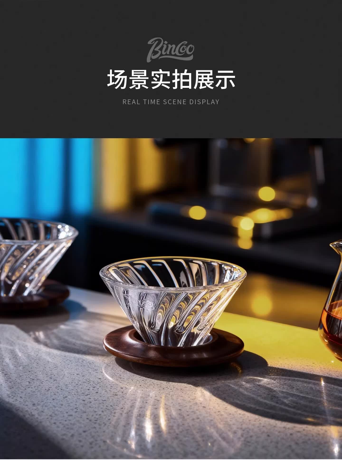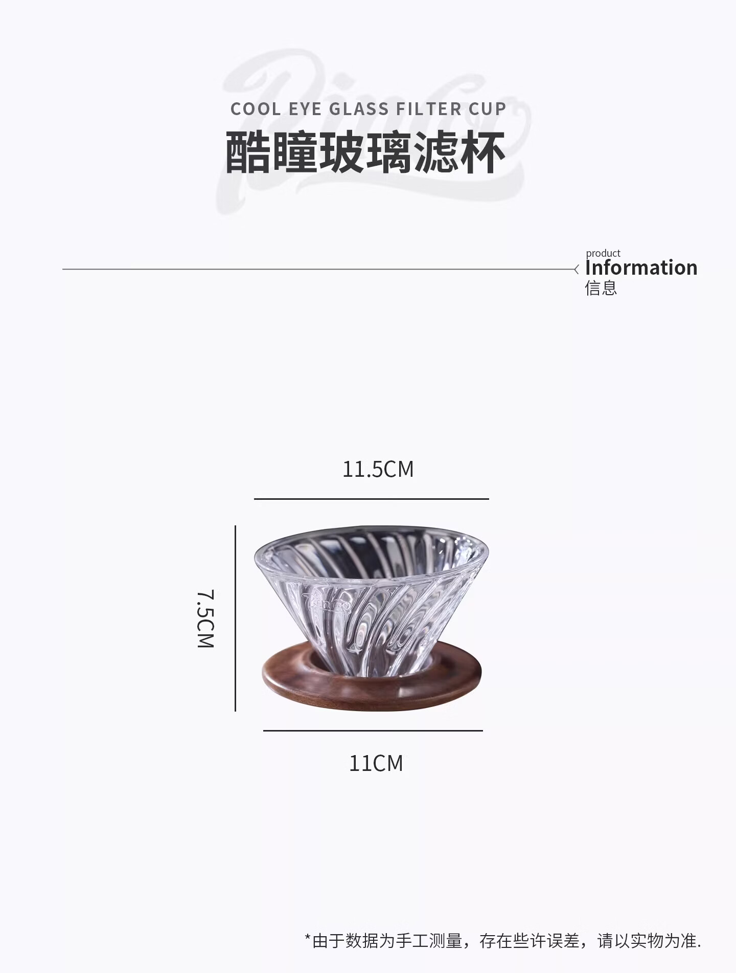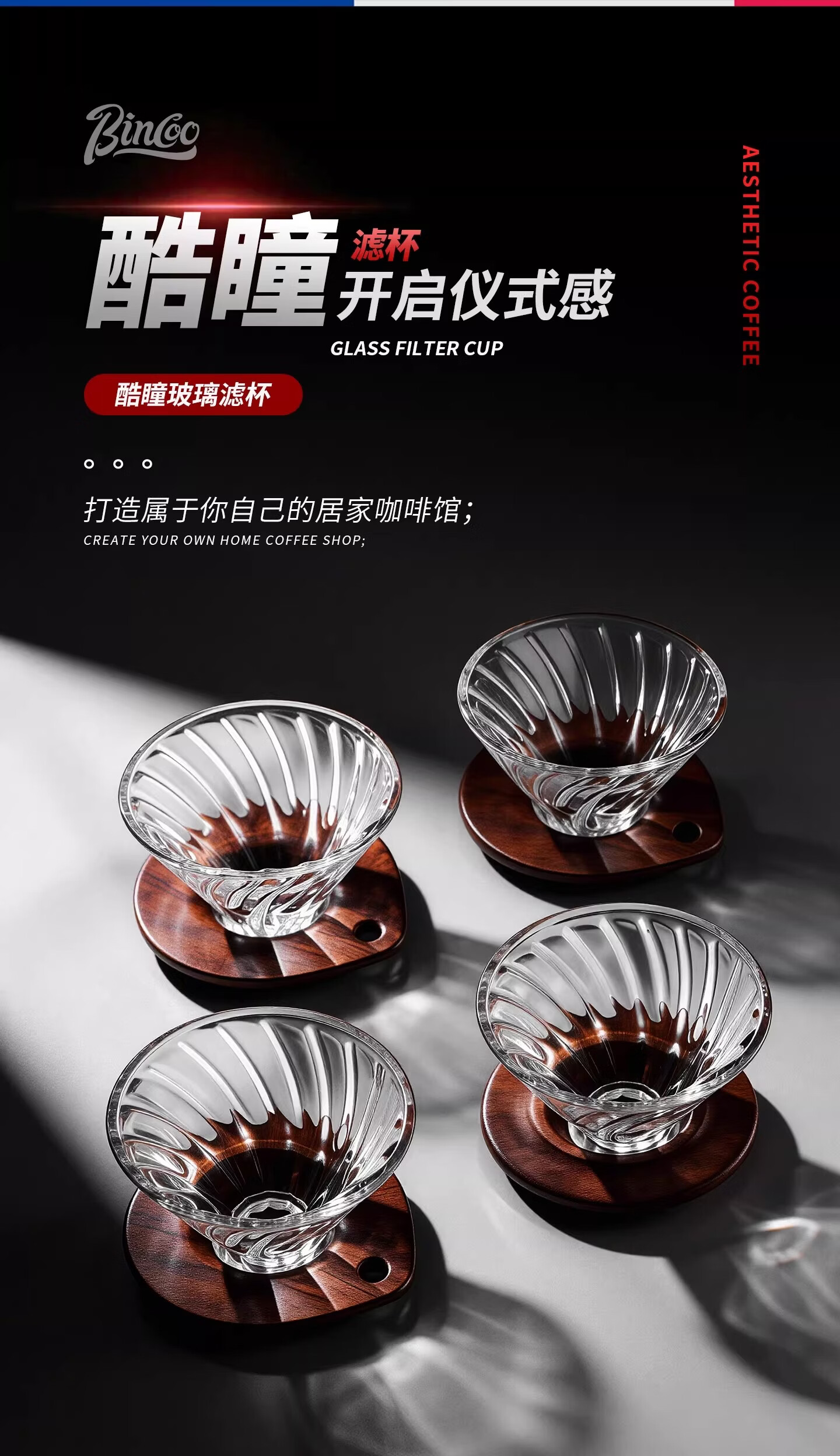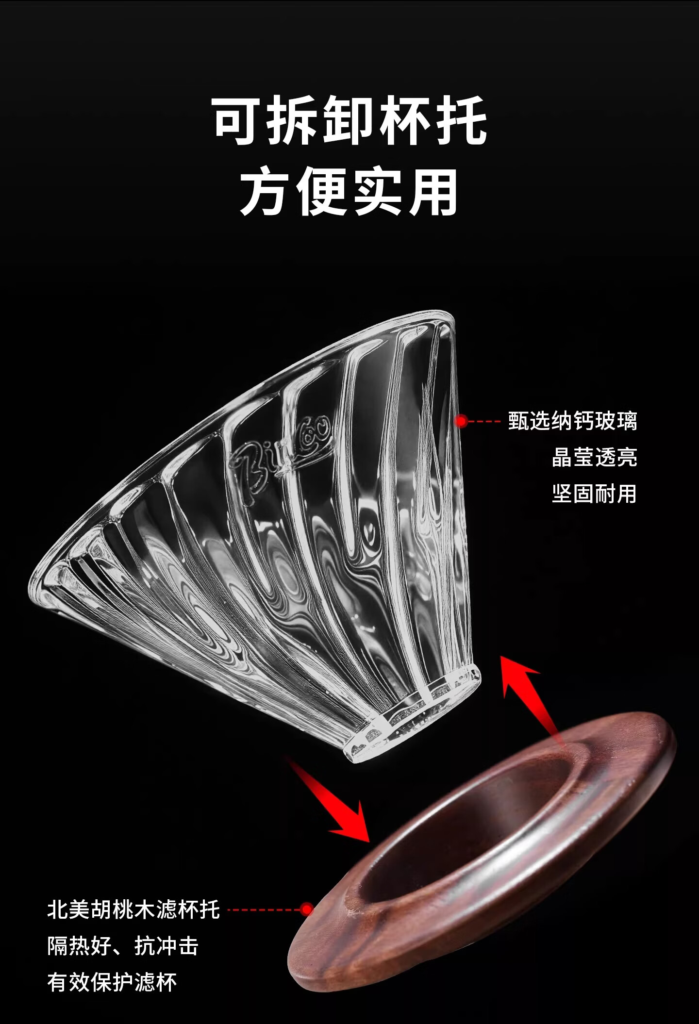 Bincoo手冲咖啡滤杯玻璃分享壶家用过滤冲泡配套器具咖啡器具套装 酷瞳滤杯+胡桃木杯托【水滴形】