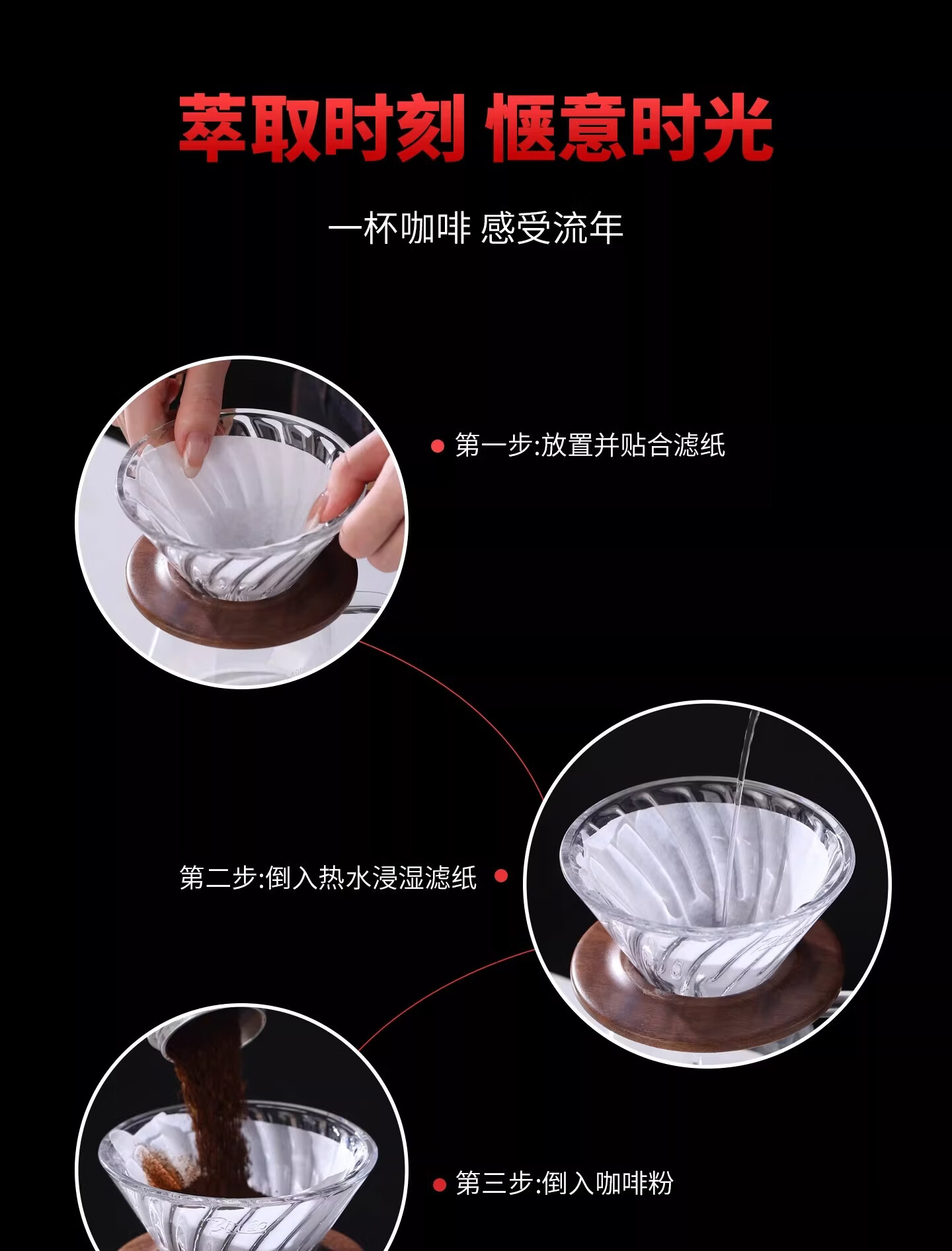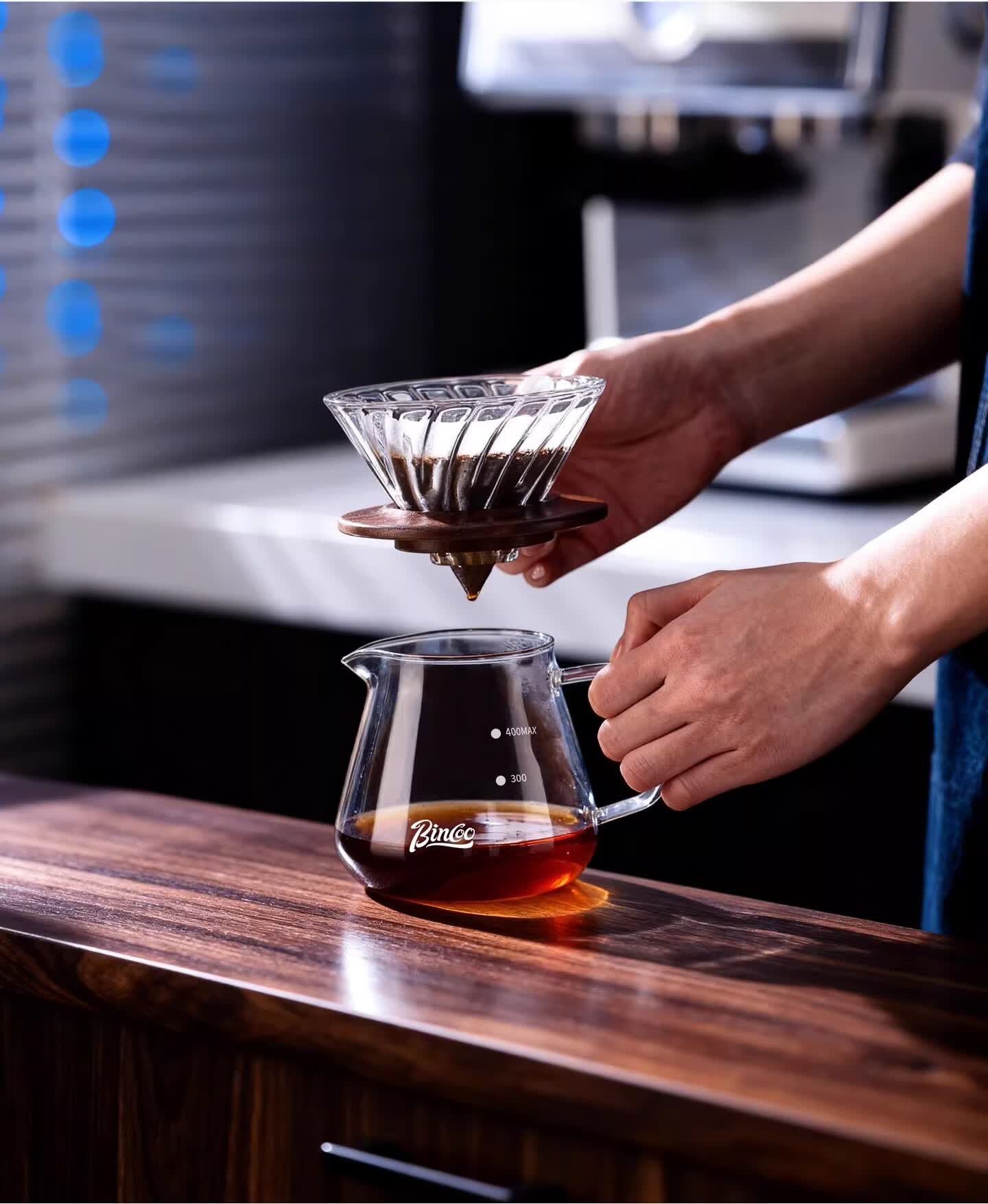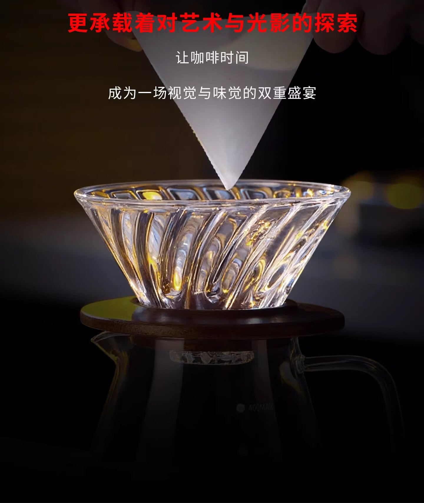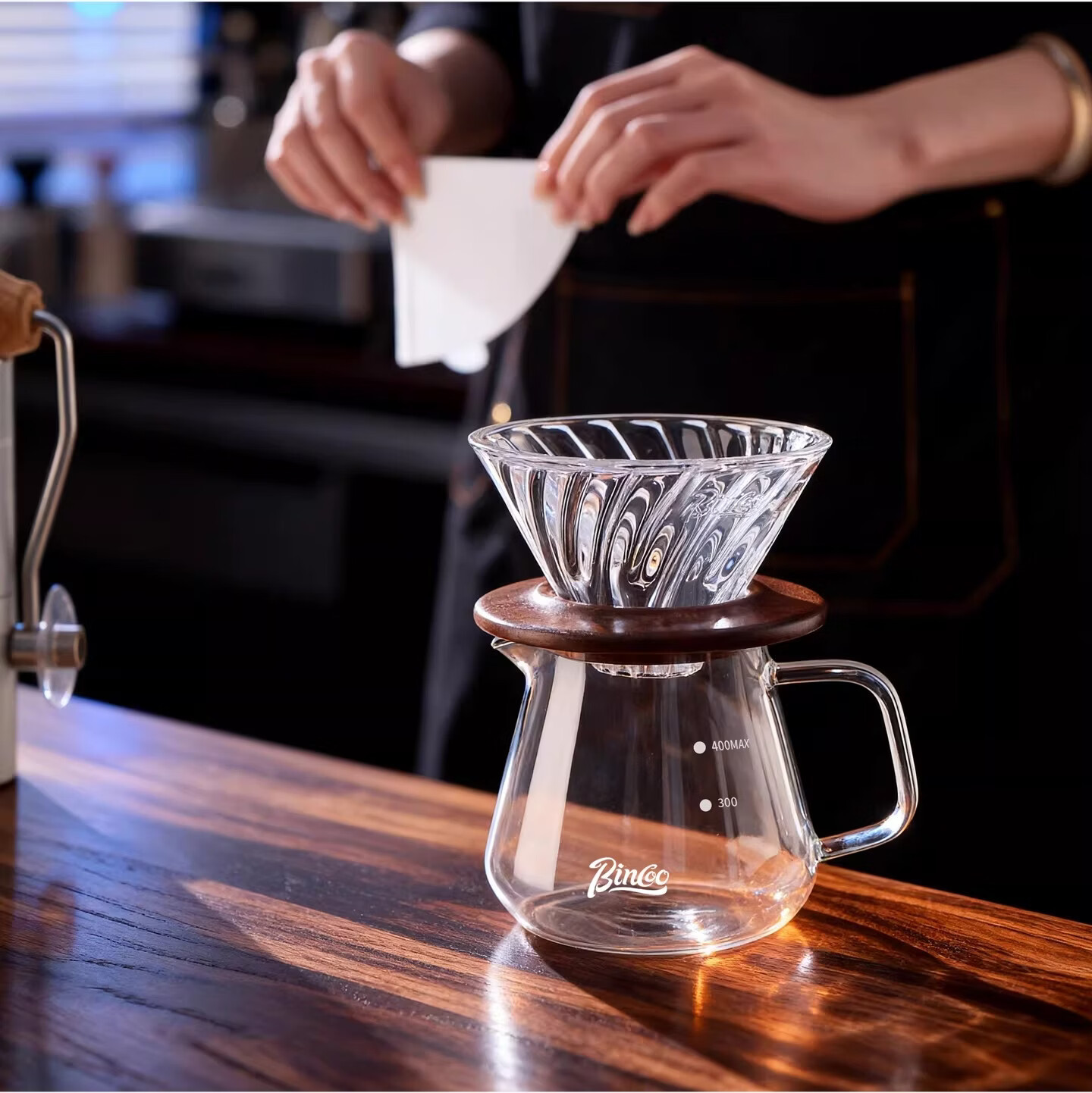 Bincoo手冲咖啡滤杯玻璃分享壶家用过滤冲泡配套器具咖啡器具套装 酷瞳滤杯+胡桃木杯托【水滴形】