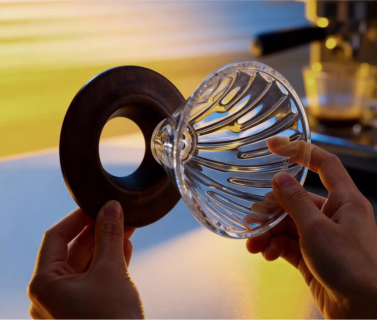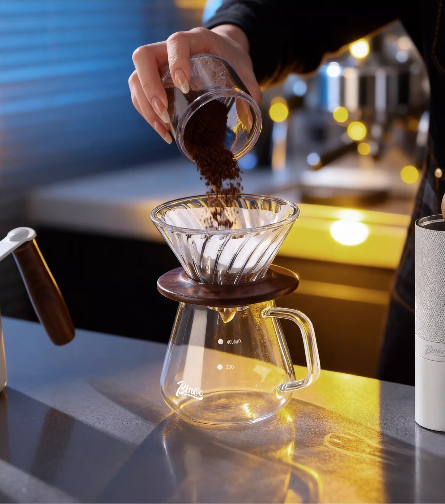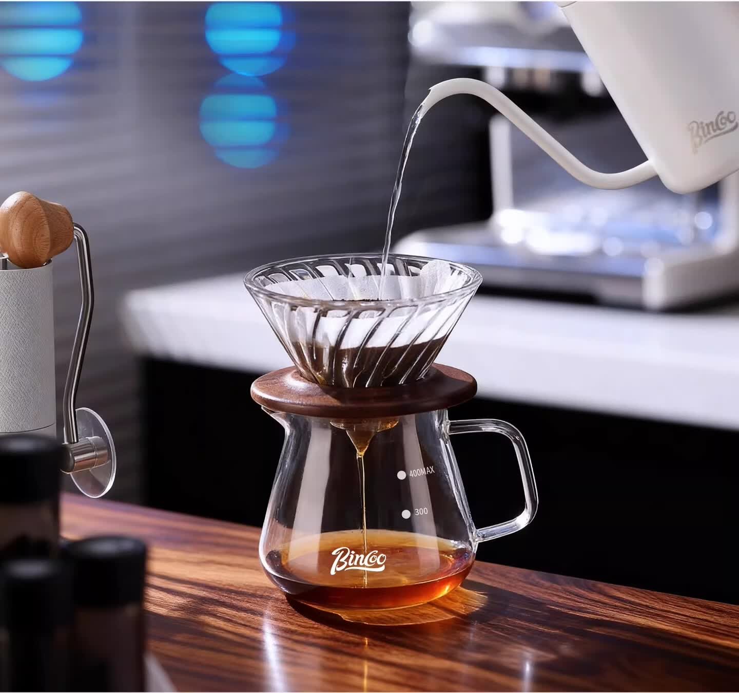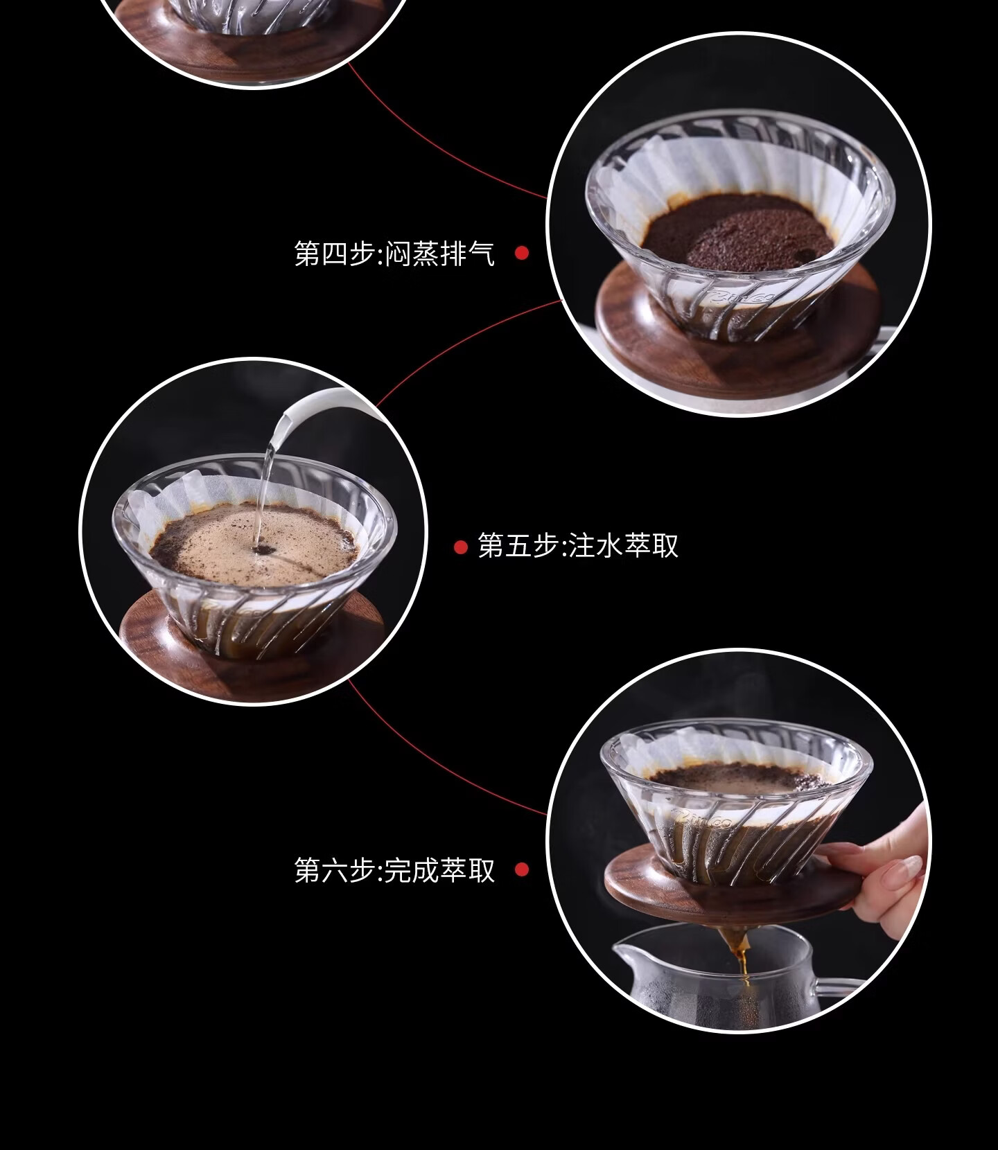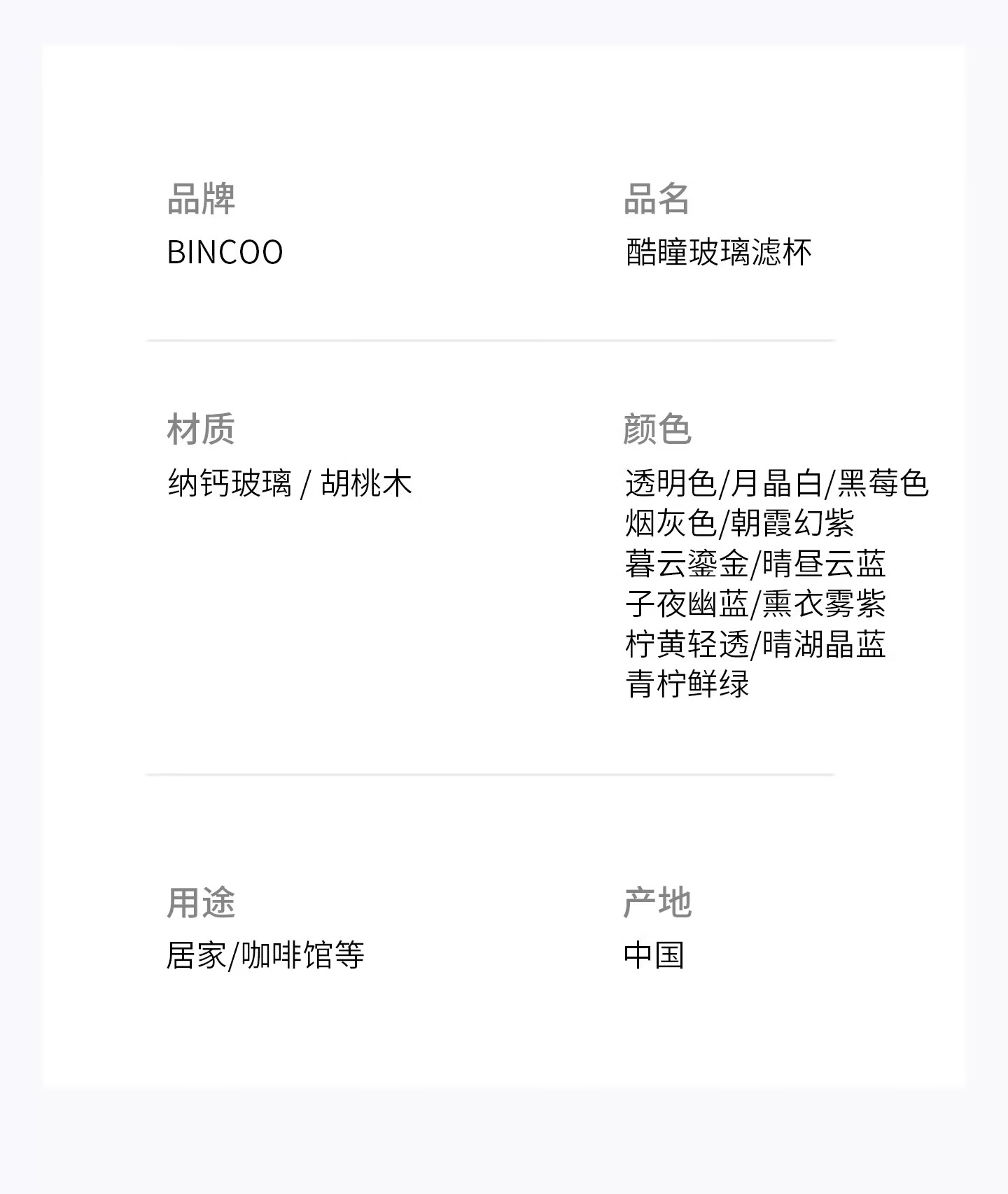 Bincoo手冲咖啡滤杯玻璃分享壶家用过滤冲泡配套器具咖啡器具套装 酷瞳滤杯+胡桃木杯托【水滴形】