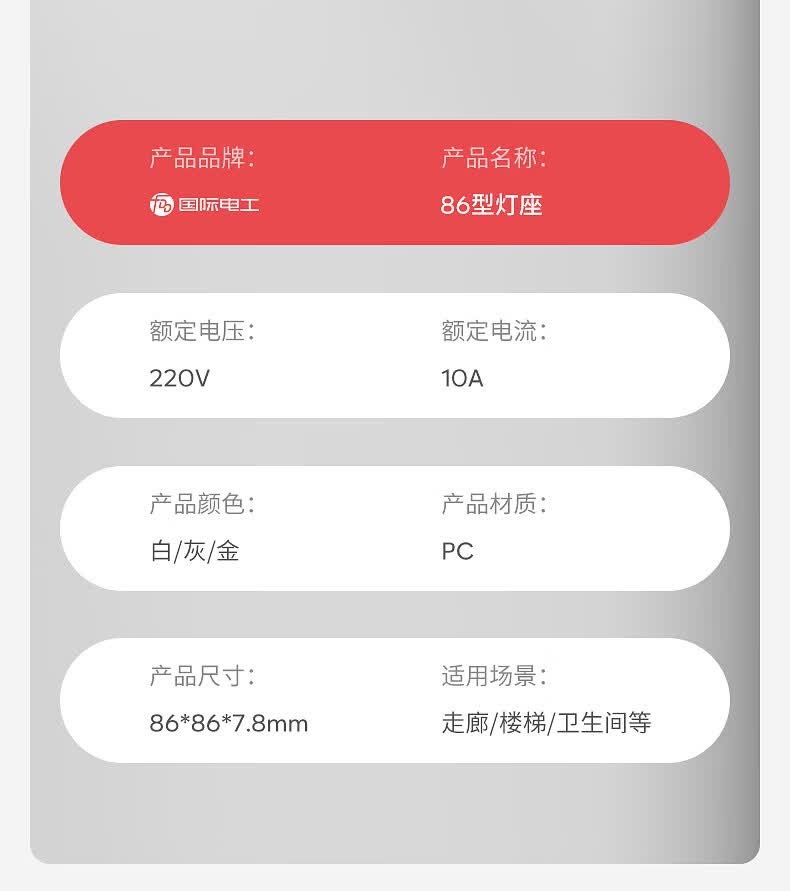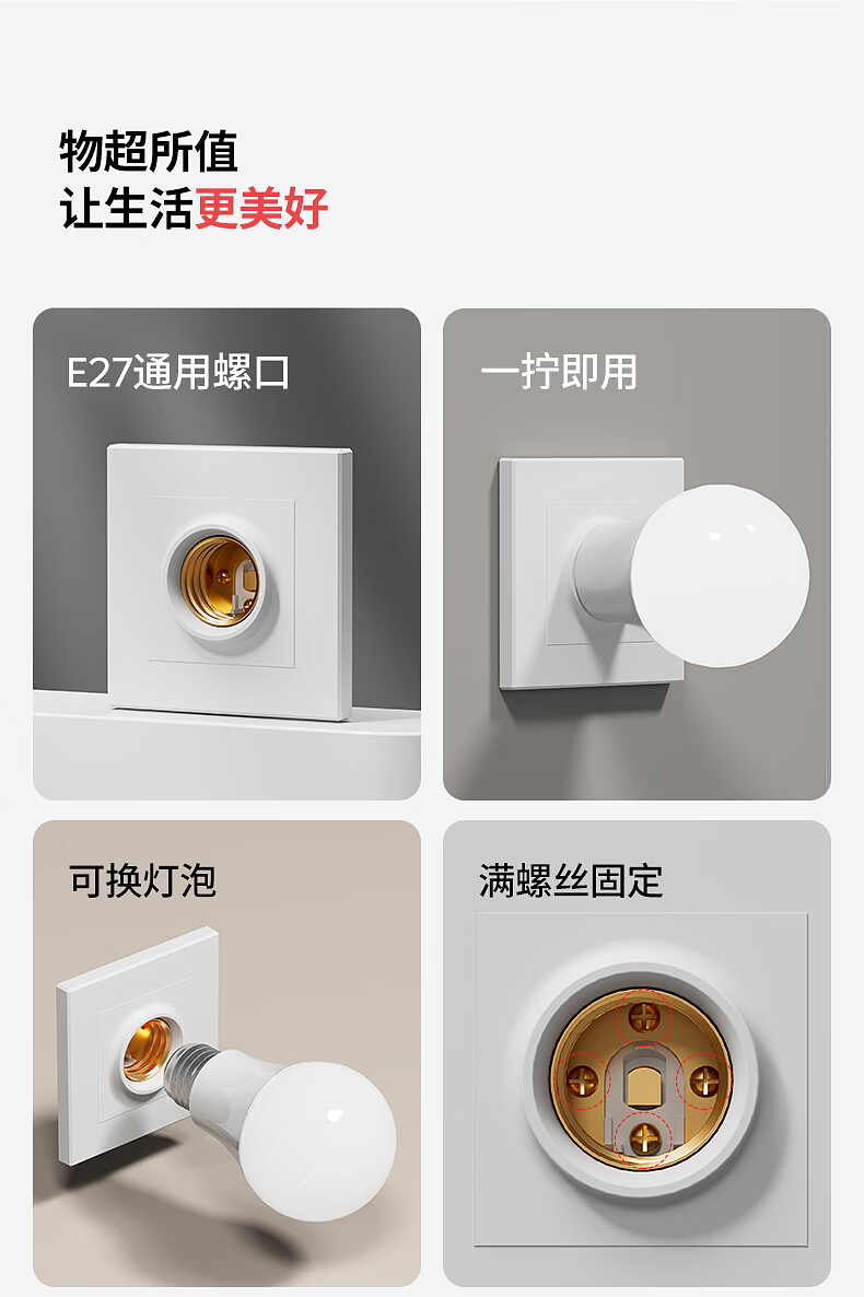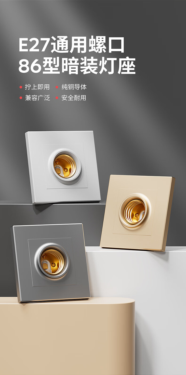 国际电工家用86型暗装E27螺口暗装灯座LED照明灯节能灯墙壁内嵌式灯座底座 暗装灯座【白色】