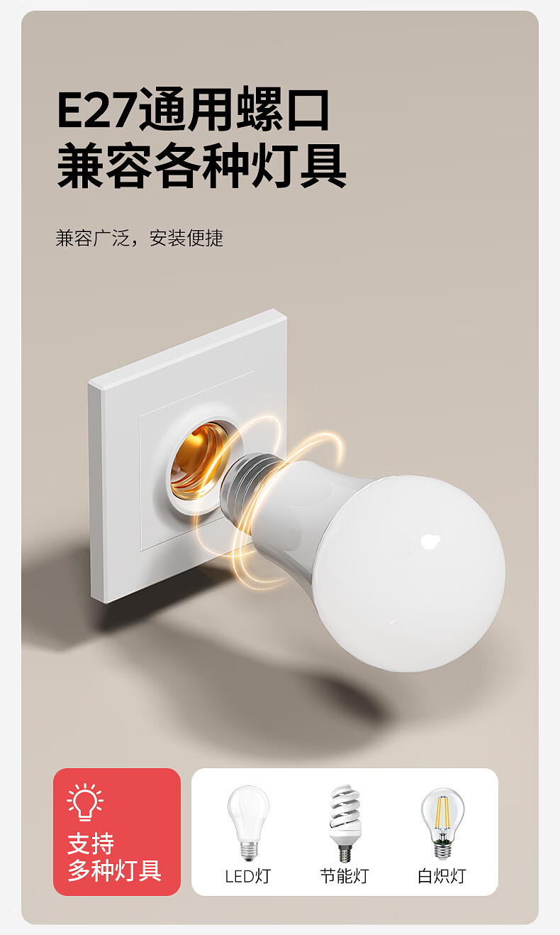 国际电工E27螺口通用型灯头灯座家用明装可控LED节能灯泡明线平口底座 (小号)圆形灯座 1只装