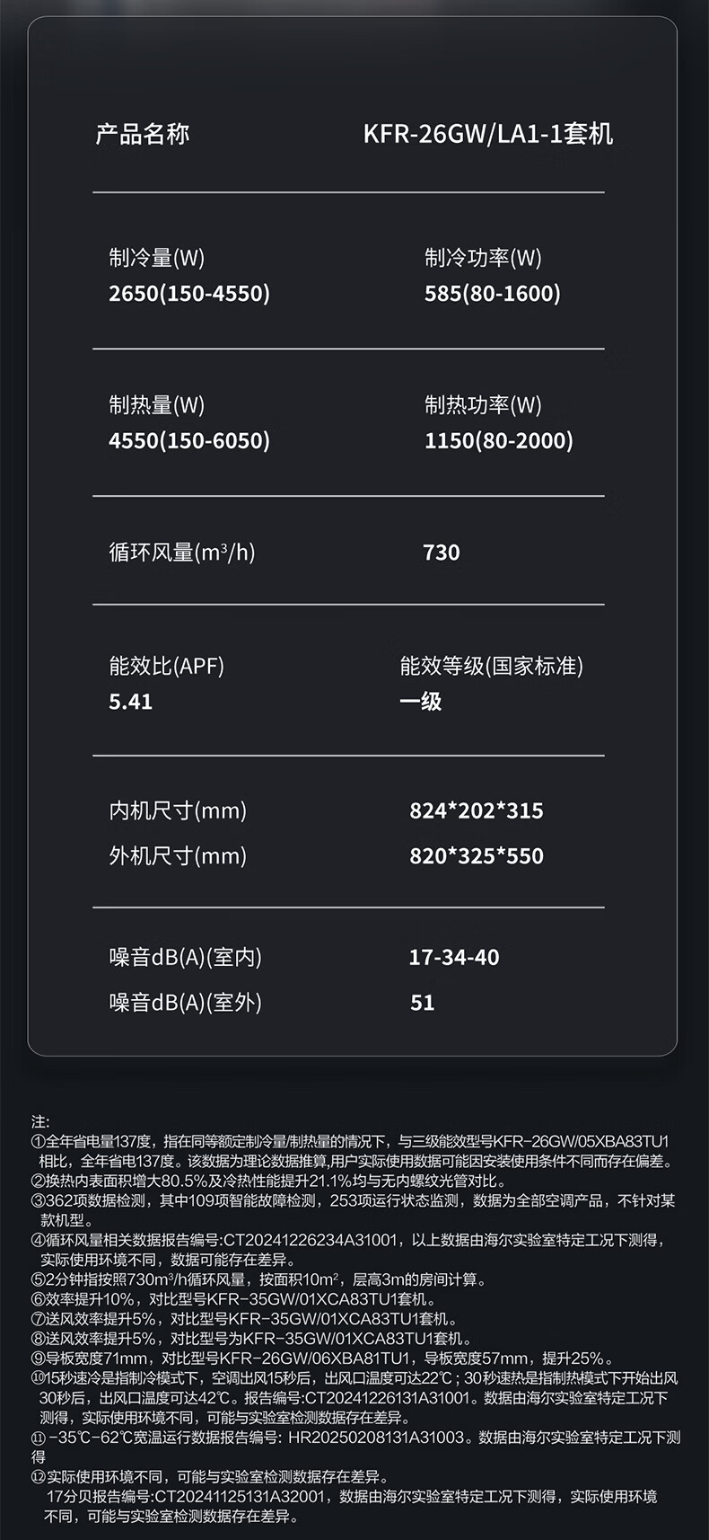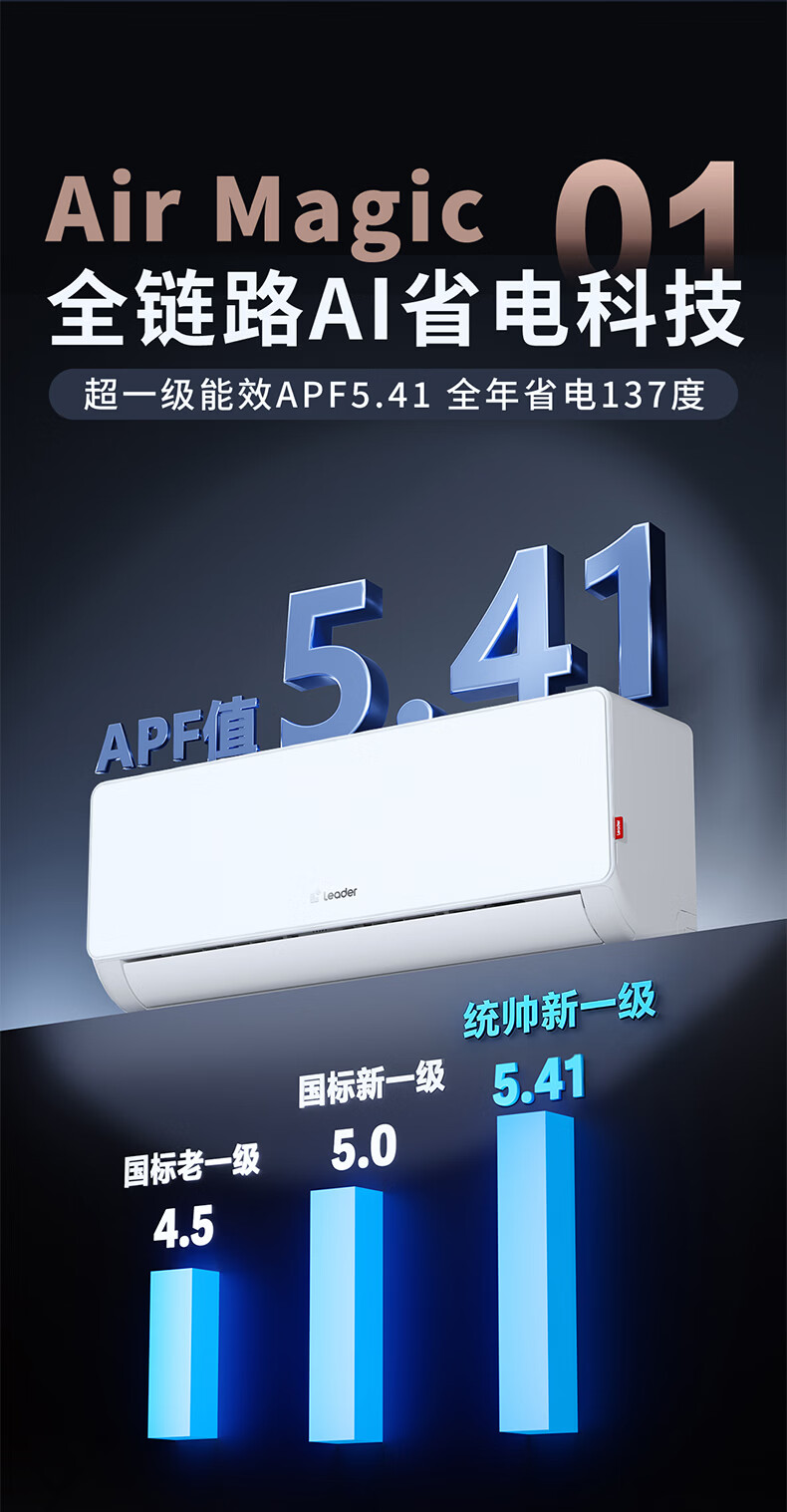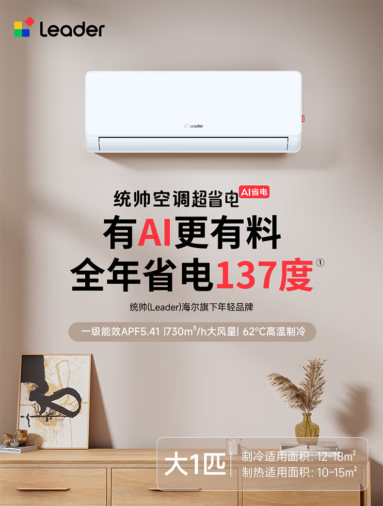 Leader海尔智家出品统帅空调超省电大1匹一级能效AI省电变频冷暖挂机壁挂式静音KFR-26GW/LA1-1