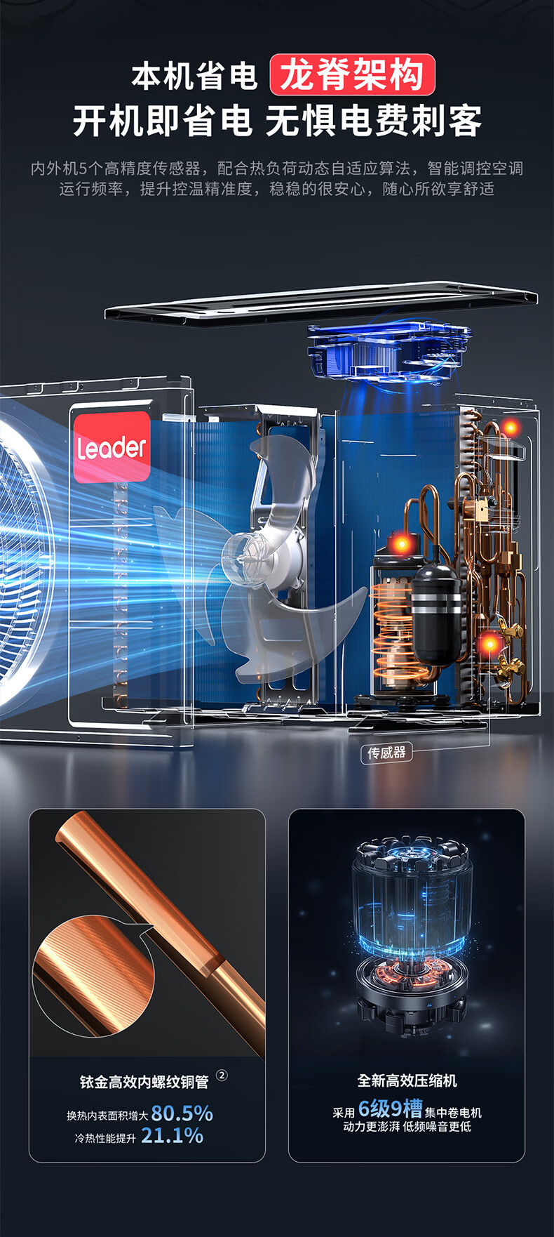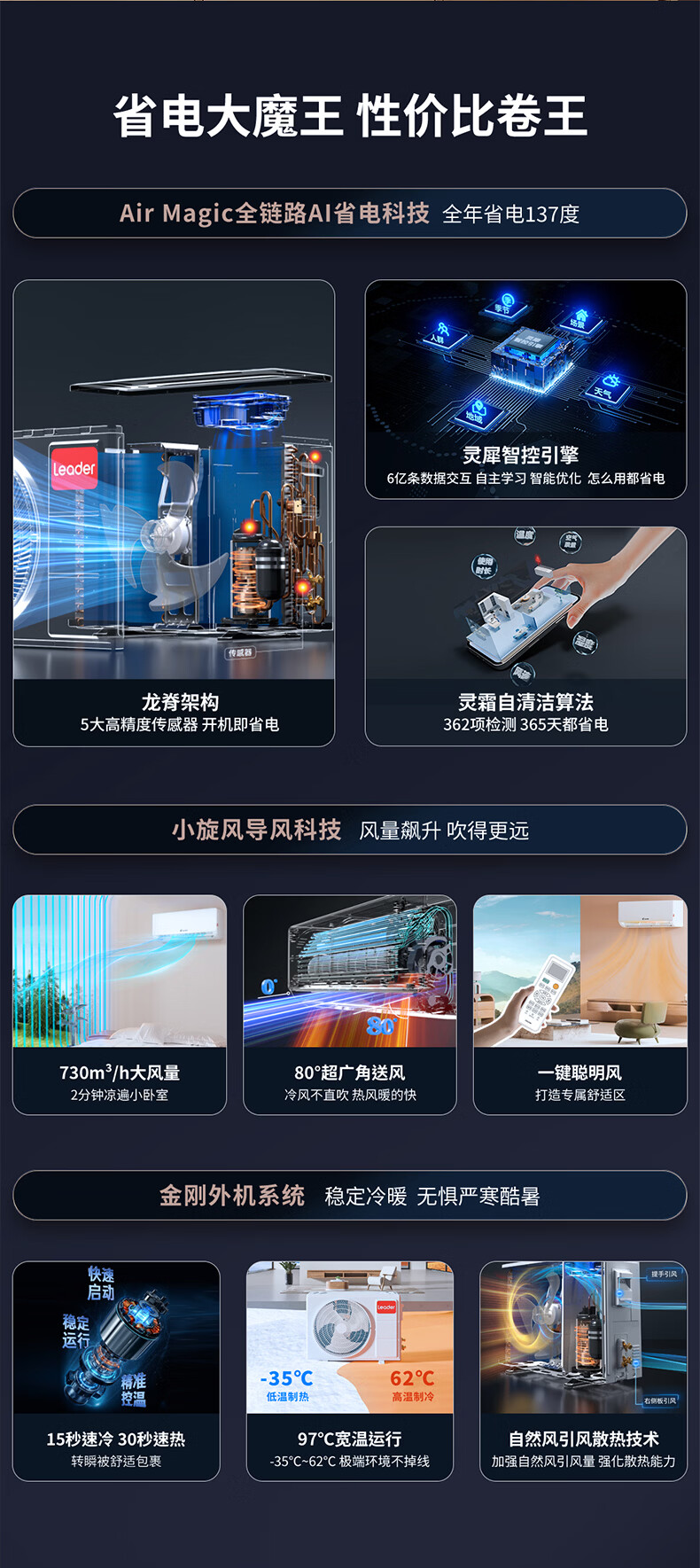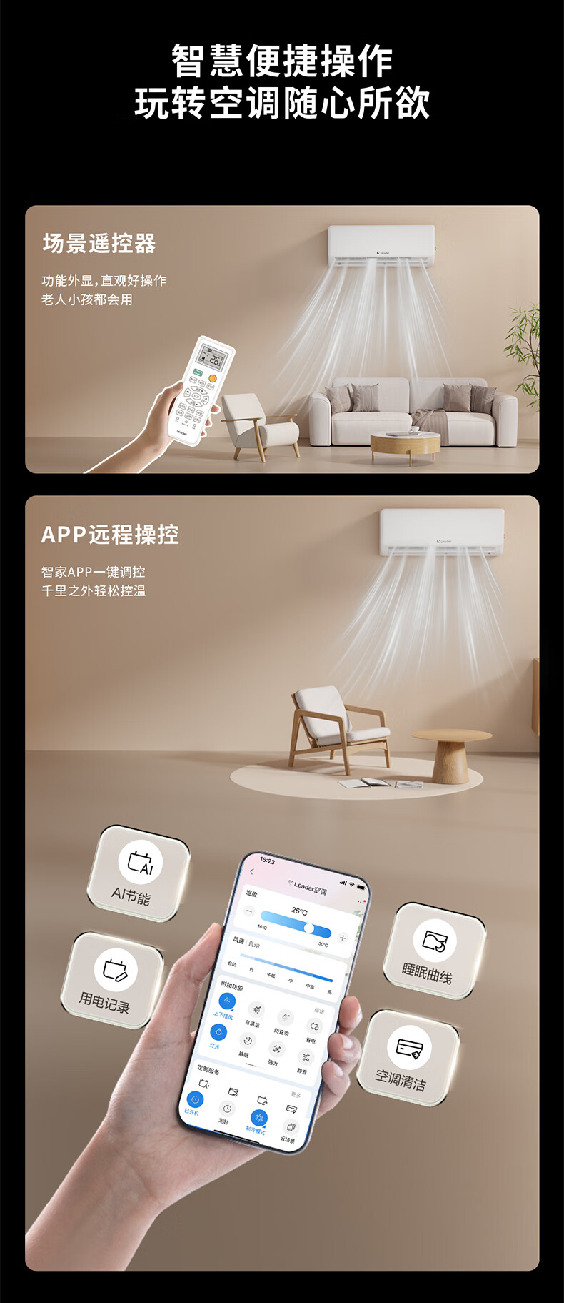 Leader海尔智家出品统帅空调超省电大1匹一级能效AI省电变频冷暖挂机壁挂式静音KFR-26GW/LA1-1