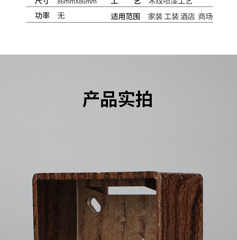 国际电工(FDD)中古风复古明装底盒86型通用明盒明线开关插座面板盒仿木纹接线盒 仿榉木纹【一位】