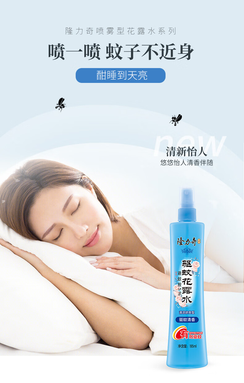 隆力奇驱蚊花露水液防蚊喷雾户外蚊怕水大瓶195ml[预防基孔肯雅热] 驱蚊花露水3瓶装+赠30ml*1瓶