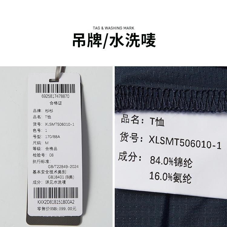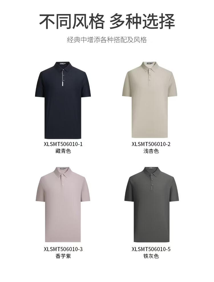 杉杉(SHANSHAN)【轻奢醋酸7A】男士polo衫短袖亚麻桑蚕丝短袖t恤 雾霾蓝 4XL