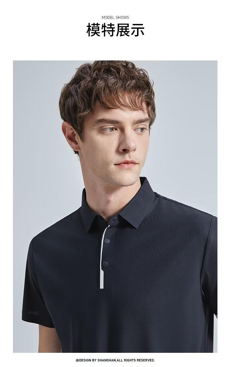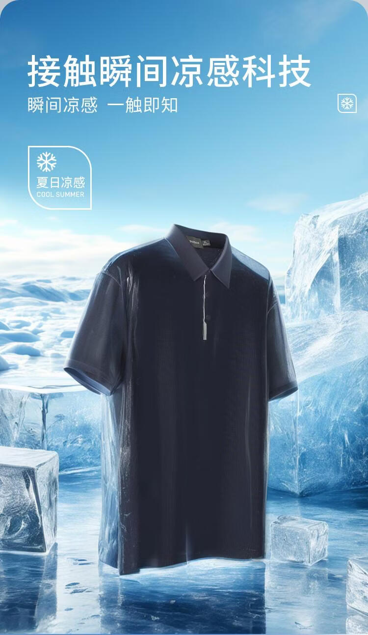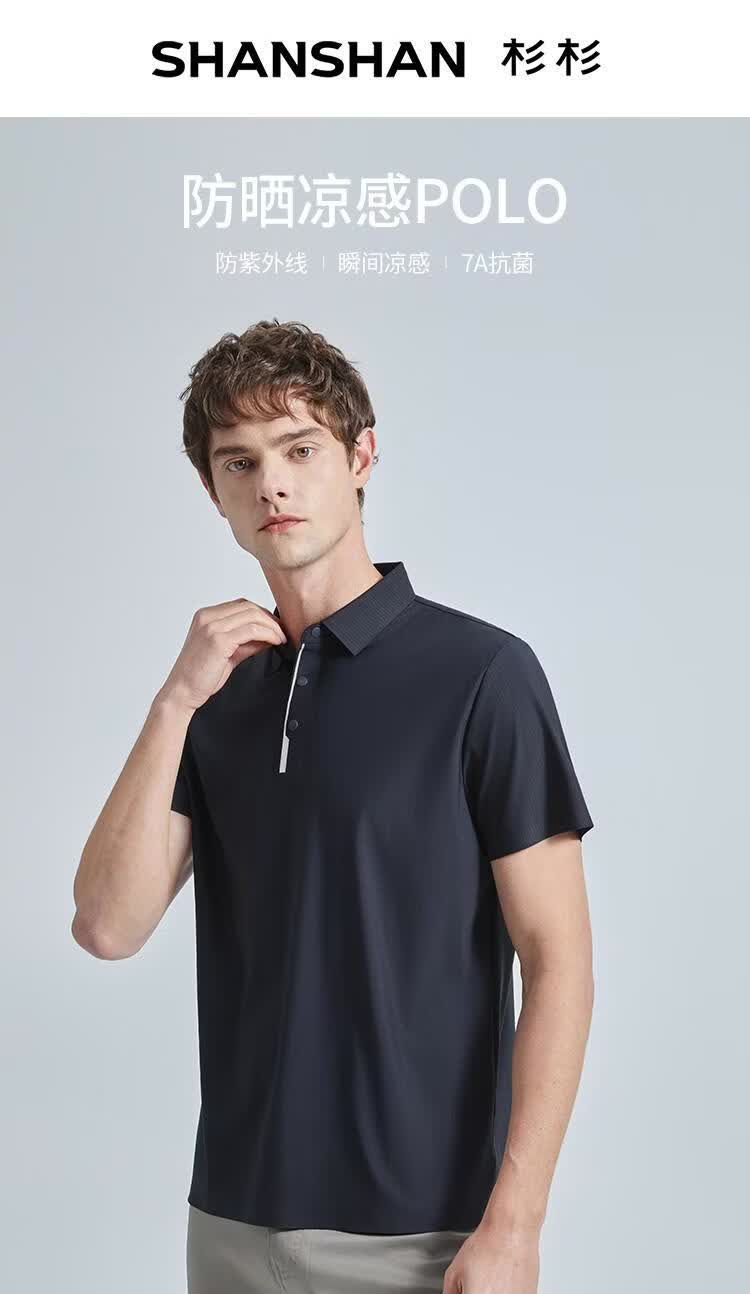 杉杉(SHANSHAN)【瞬间凉感防晒】polo衫男款轻奢高级感轻薄透气t恤 蓝色 4XL
