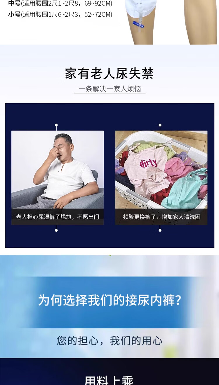 新辉老年人尿失禁裤接尿器大小便失禁护理卧床绑腿尿斗可拆行走款 【新款尿失禁裤-尿斗可拆】小号/腰围52-72