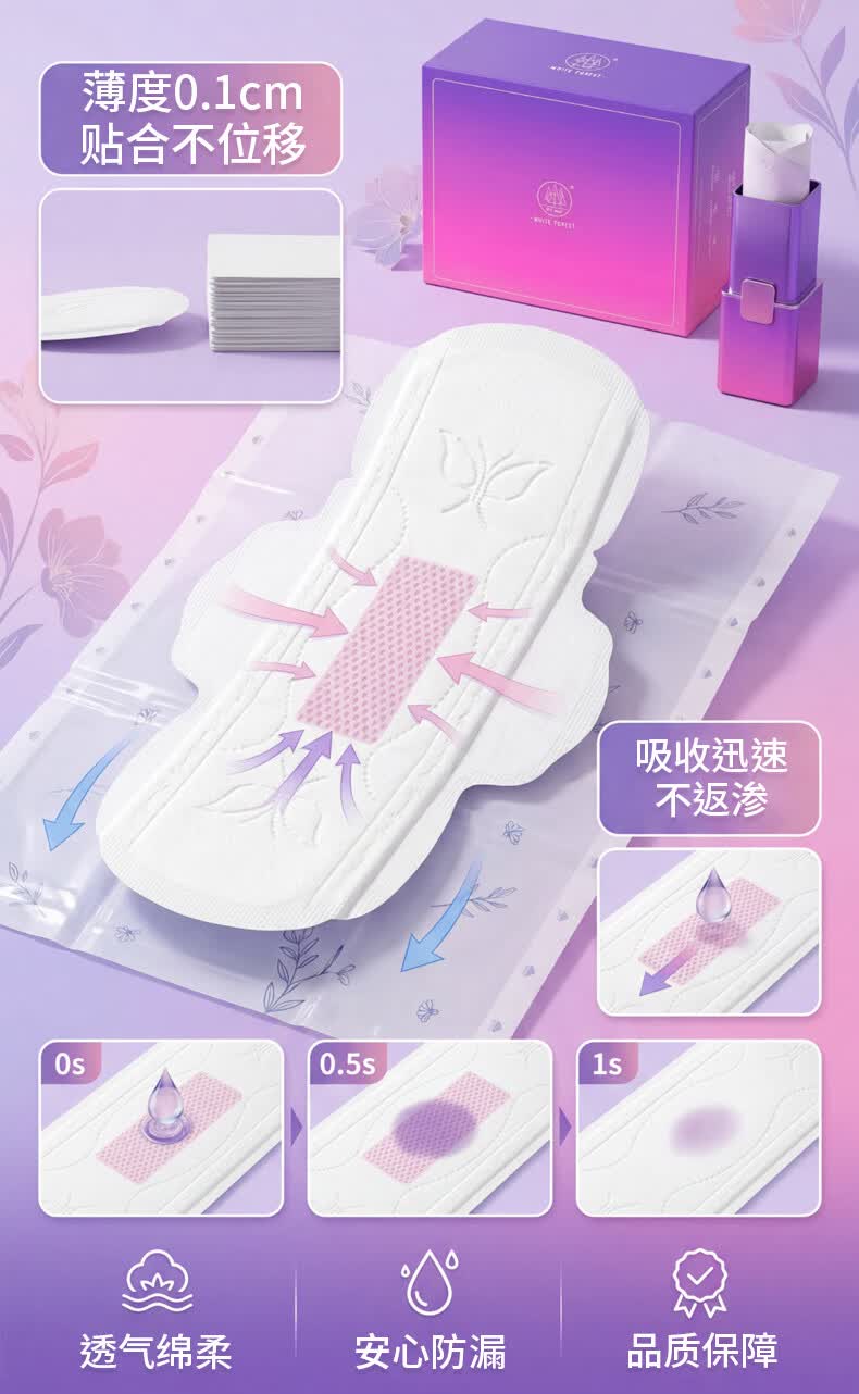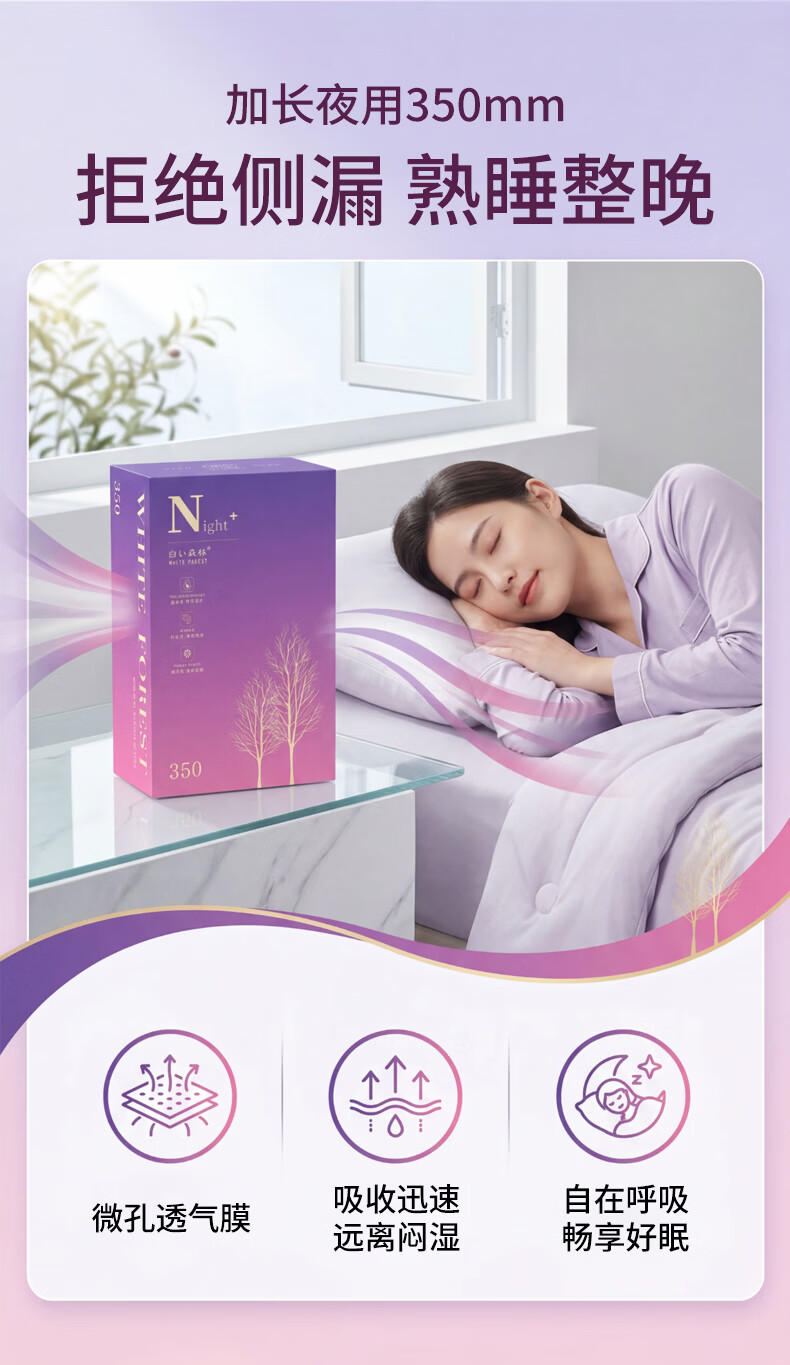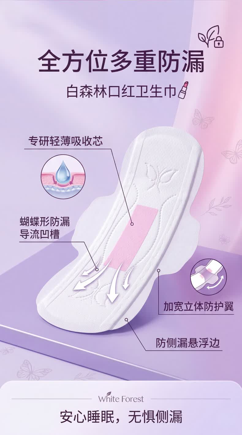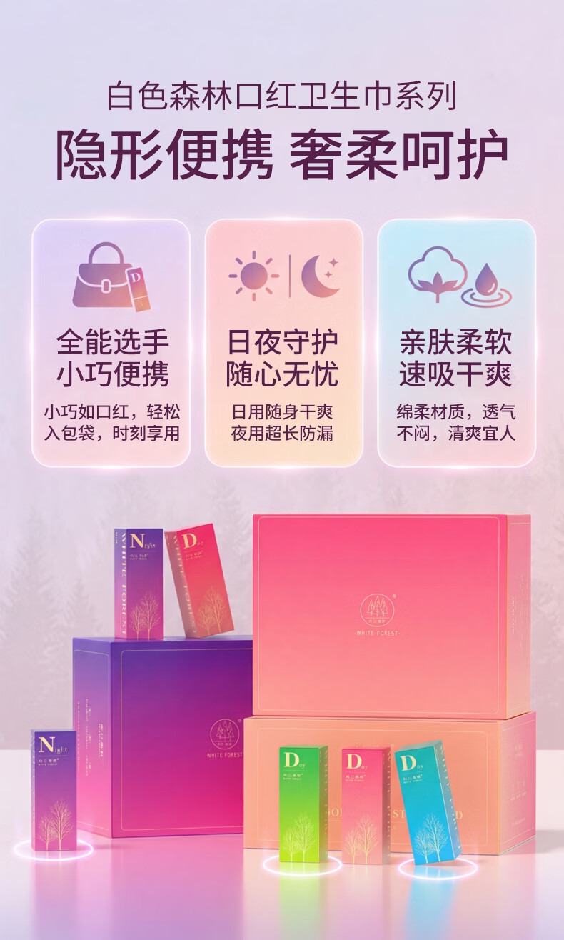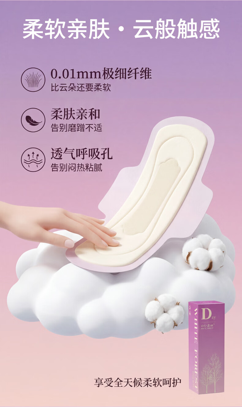 白森林(white forest)口虹卫生巾日用夜用小巧携带方便起来姨妈巾超薄透气少女 【共30片】日用245mm30盒x1片