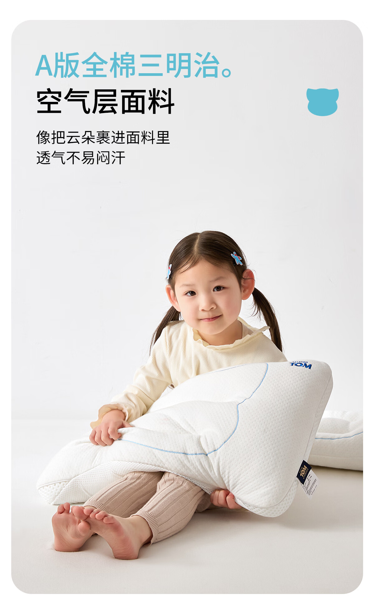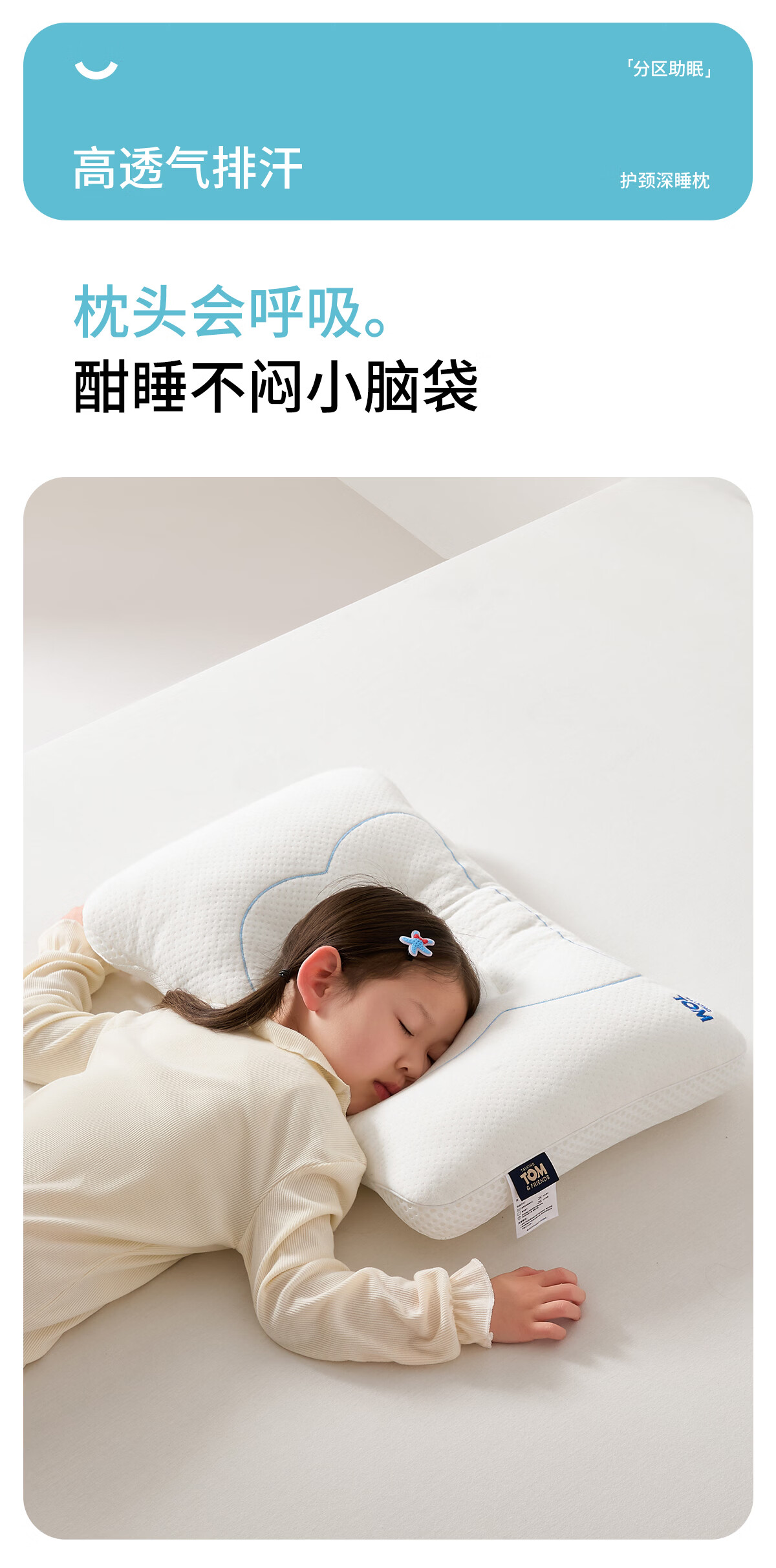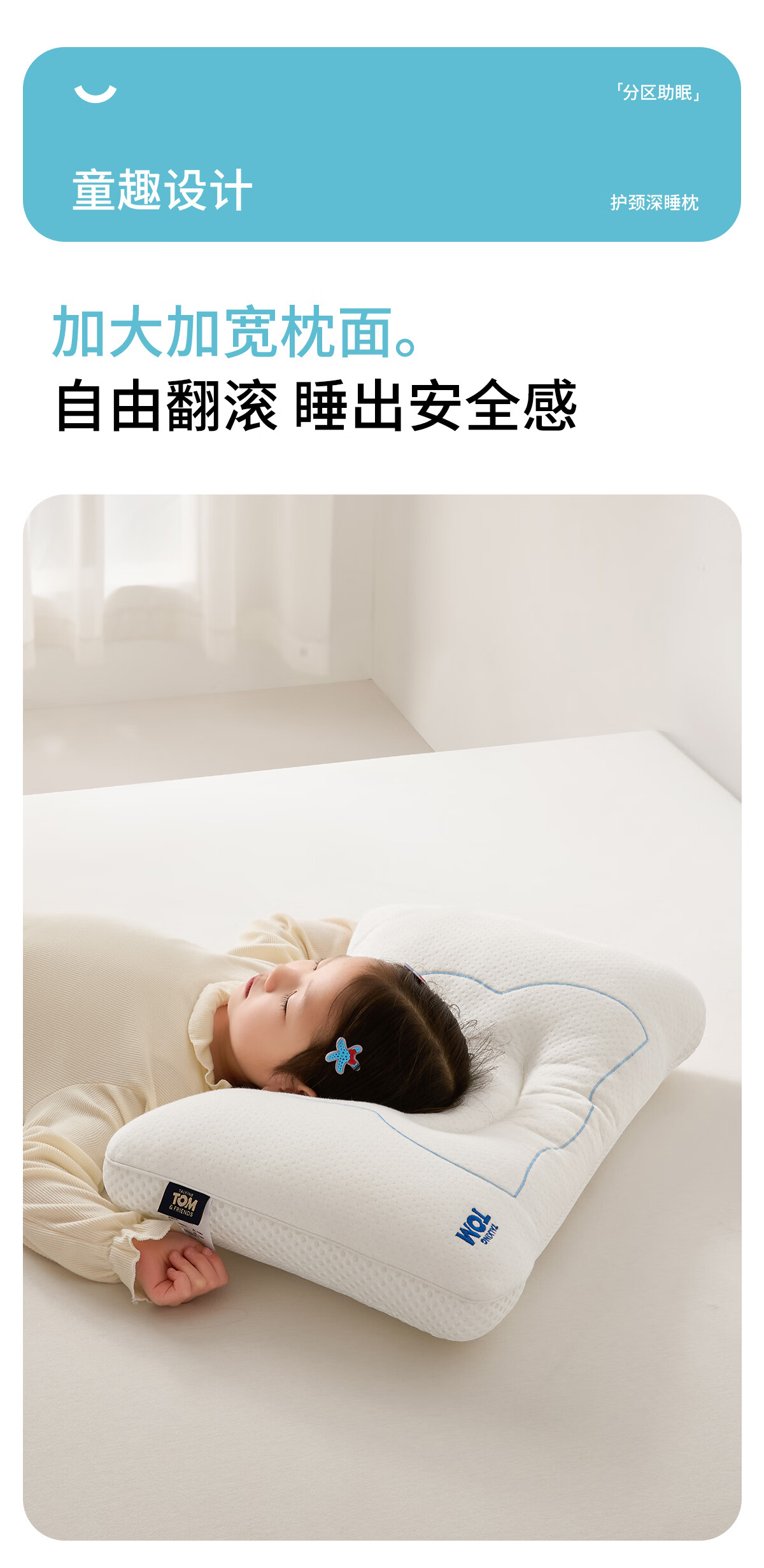 汤姆猫TOM枕头护颈椎助睡眠儿童专用吸汗透气枕芯3到6岁到12岁深睡枕 汤姆猫奇趣安睡枕 单只 50-35cm(适合3-6岁儿童)