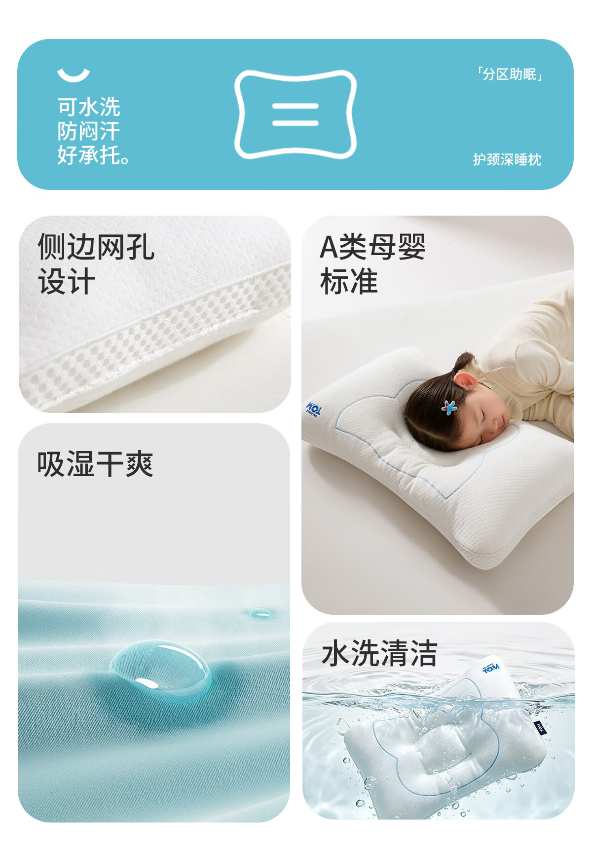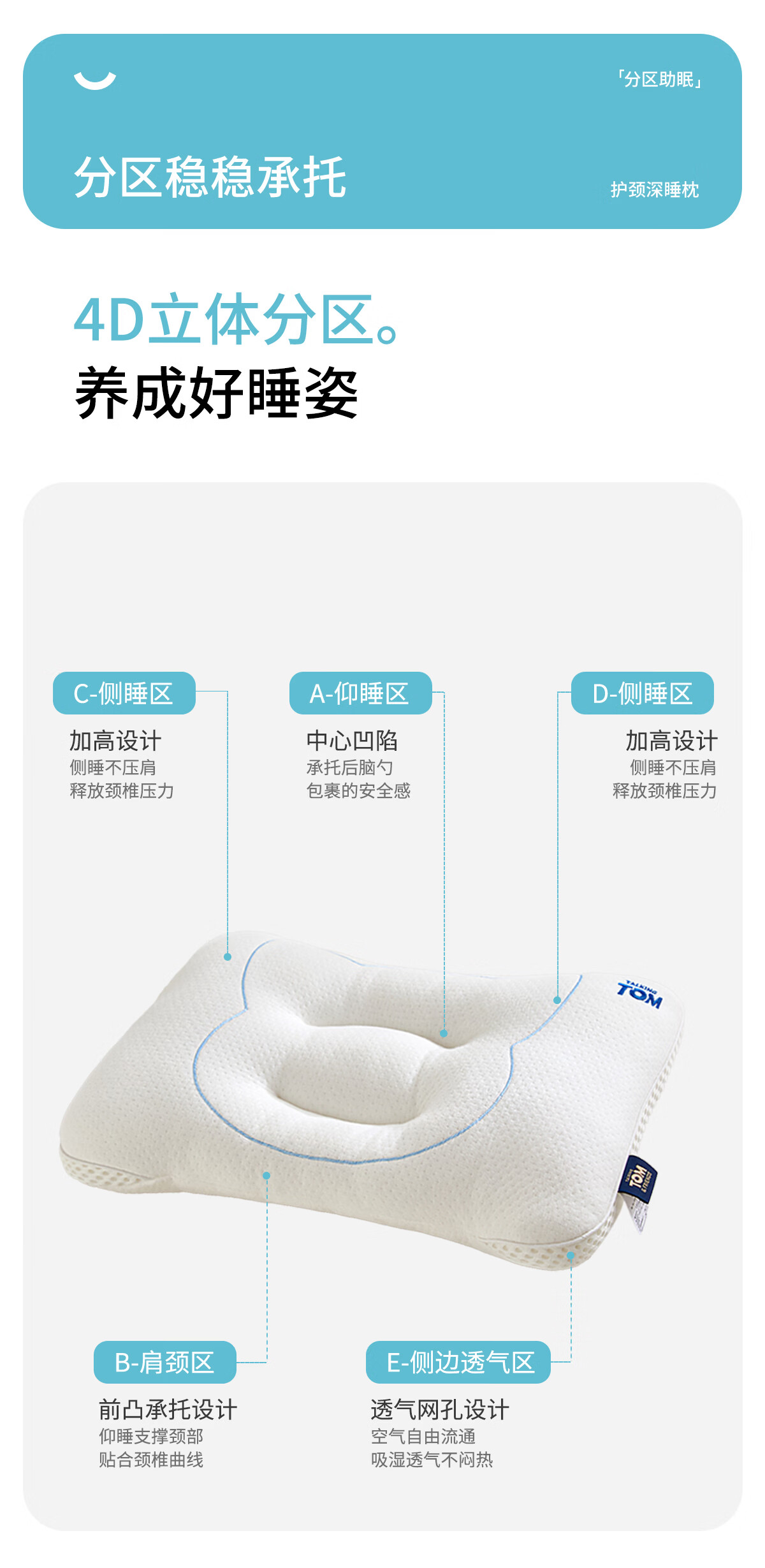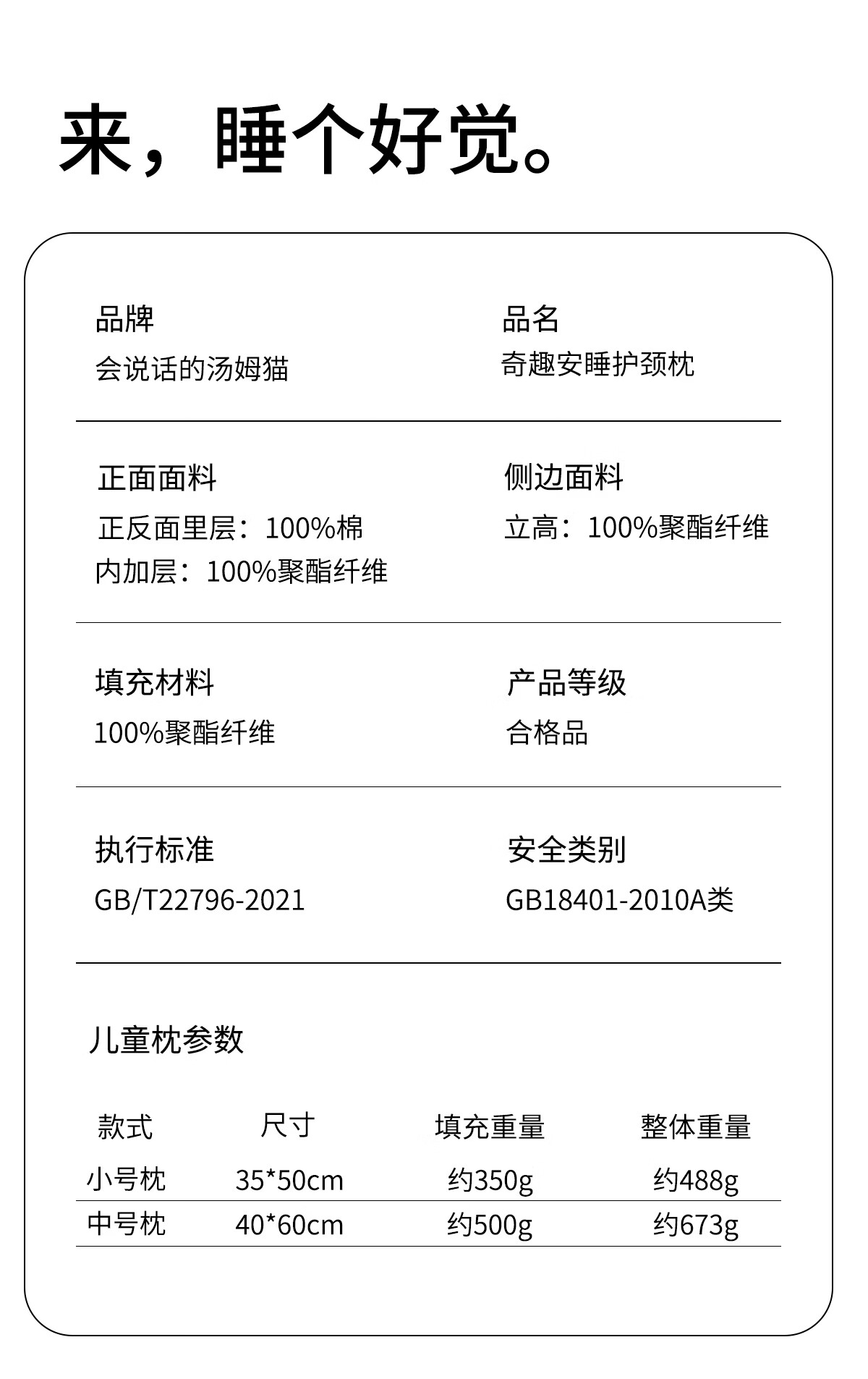 汤姆猫TOM枕头护颈椎助睡眠儿童专用吸汗透气枕芯3到6岁到12岁深睡枕 汤姆猫奇趣安睡枕 单只 50-35cm(适合3-6岁儿童)