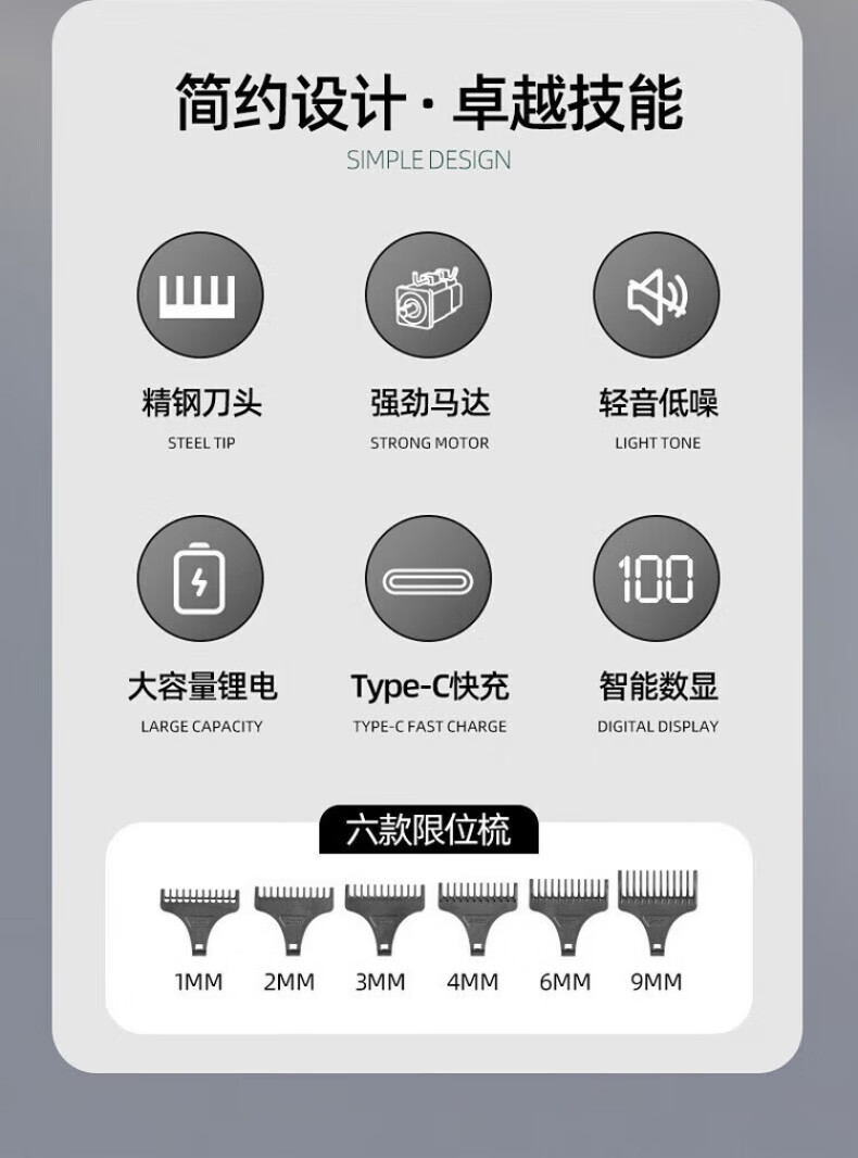 KDISV德国光头理发剃光头自理发器电推子充电电推剪油头鬓角修剪成人儿童发廊神器88 经典黑 升级装【数显版】升级续航丨强劲电机不卡发