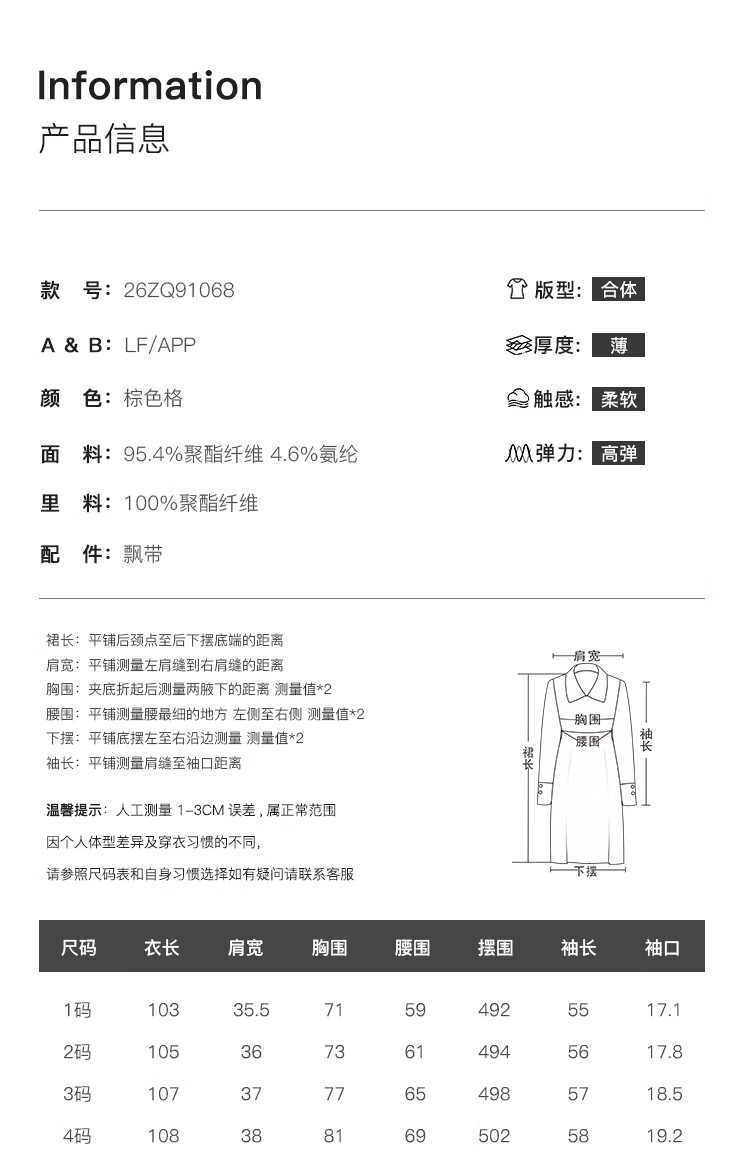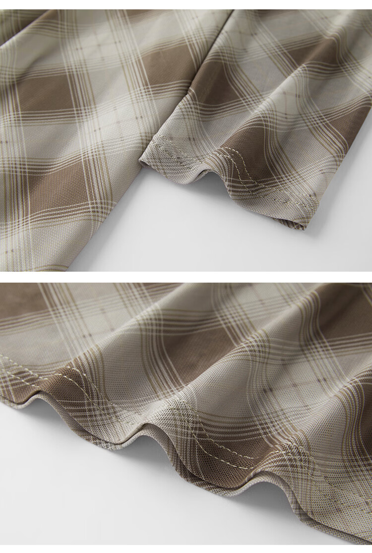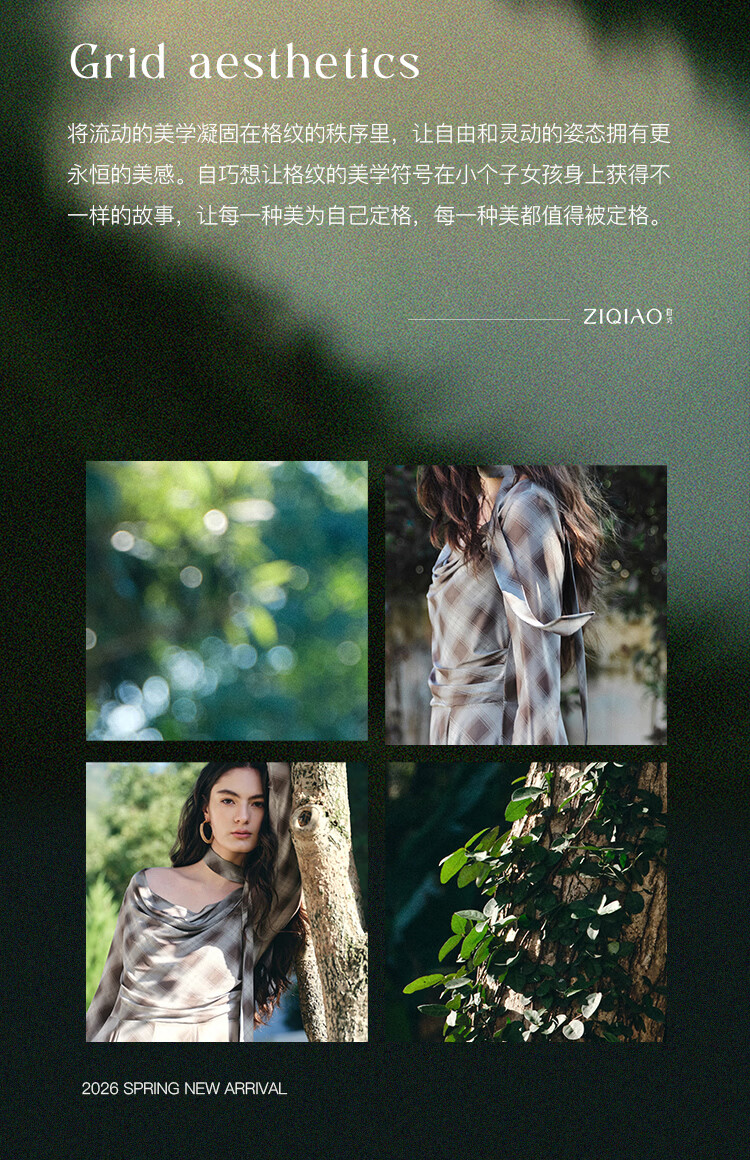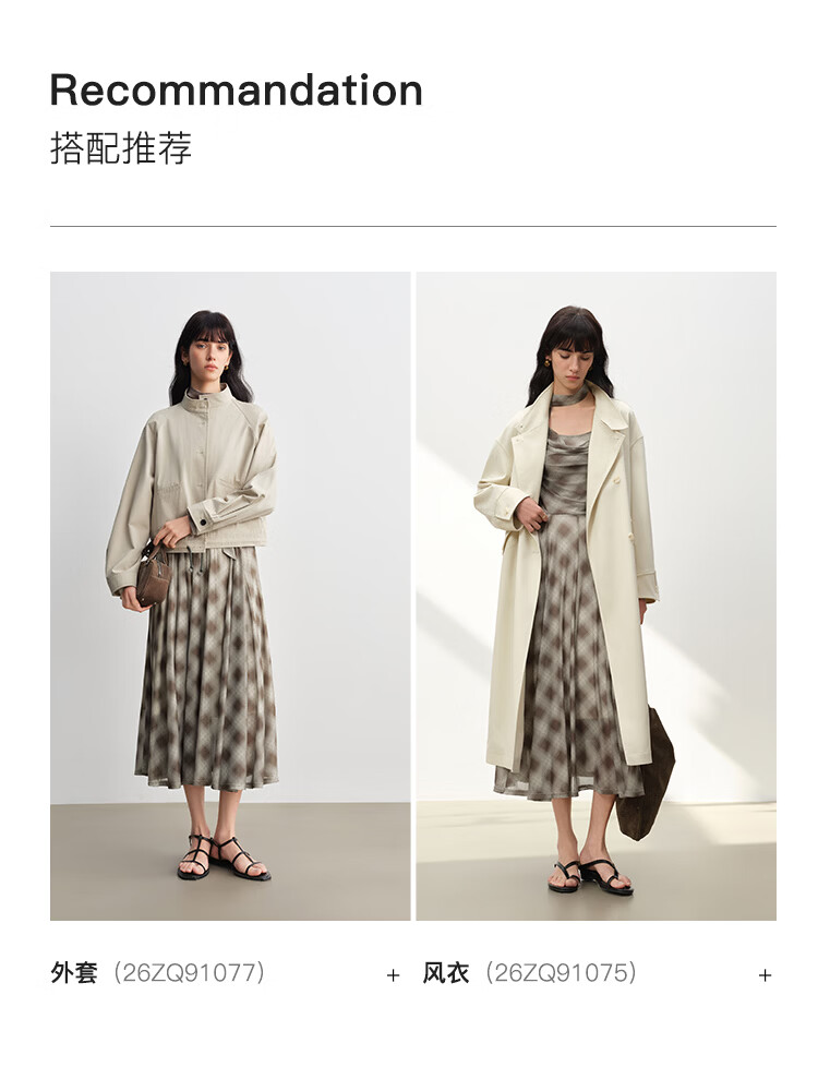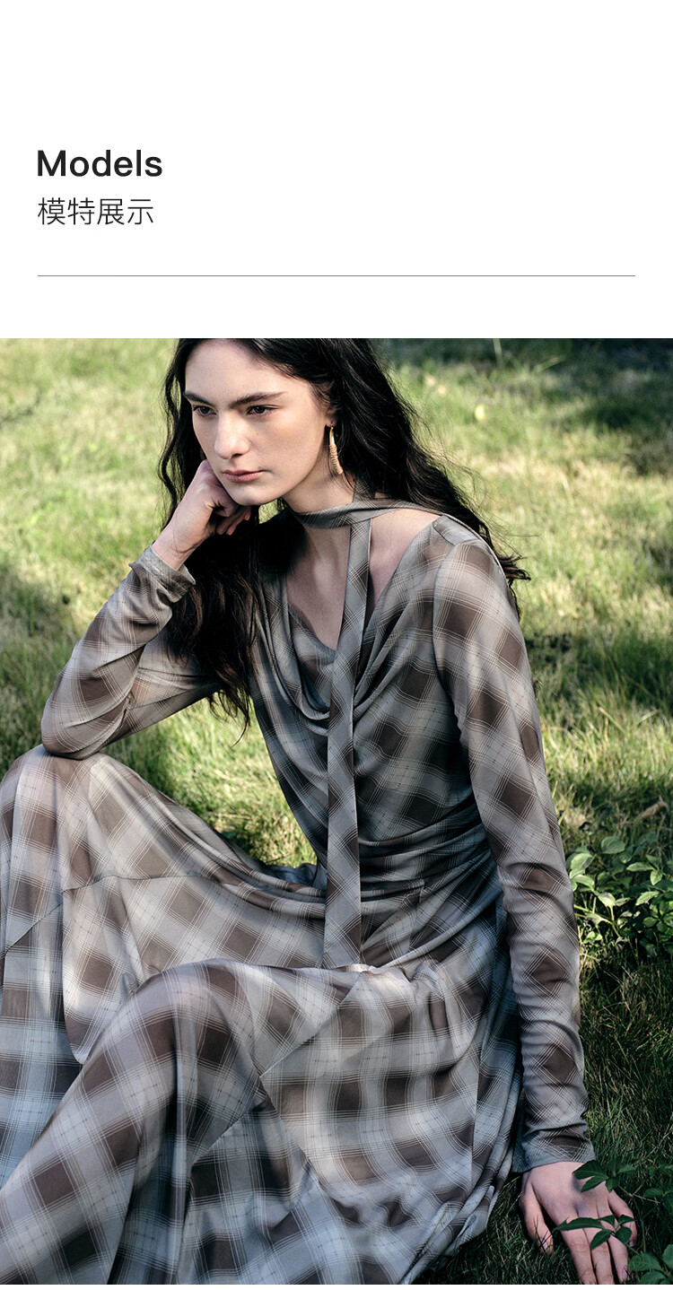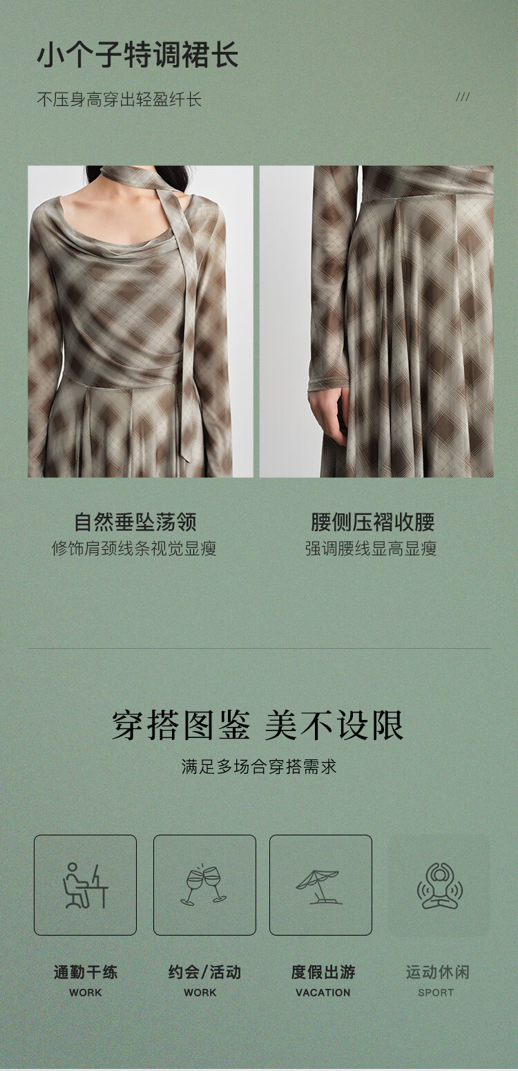 自巧【定格时刻】小个子格纹荡领连衣裙女压褶收腰长裙2026春新品 棕色格 XXS (尺码:1)