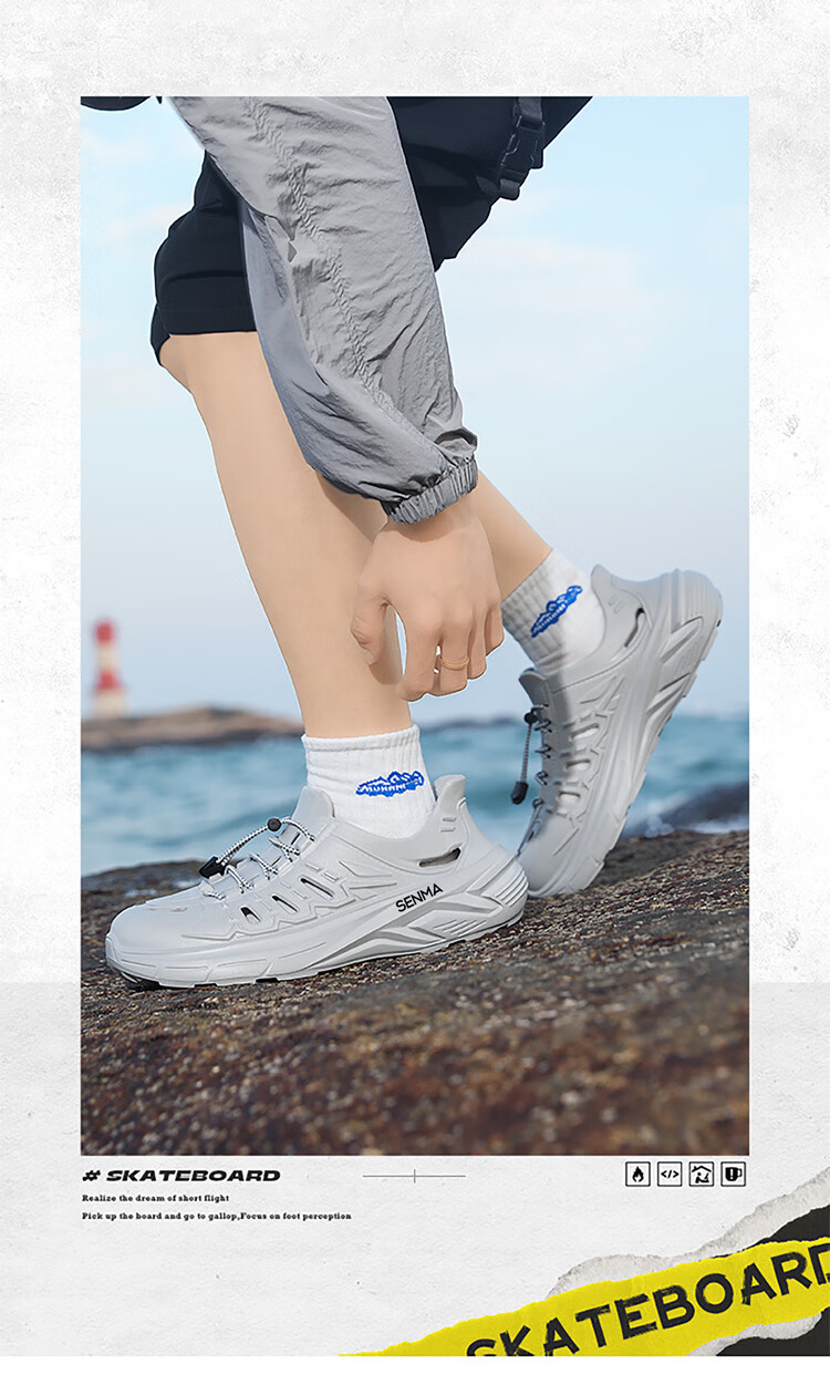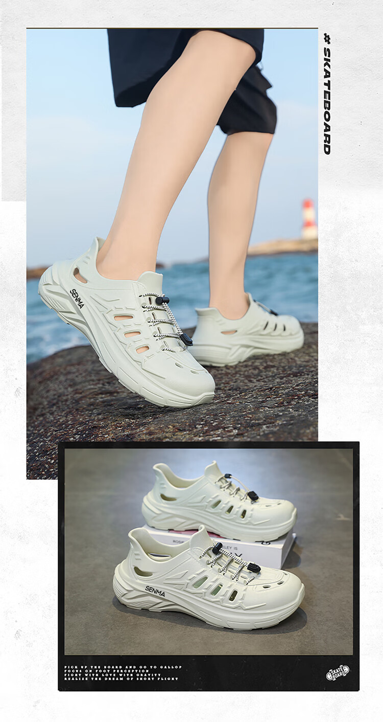 森馬凉鞋男2026夏季透气踩屎感溯溪洞洞鞋男士户外防滑耐磨涉水沙滩鞋 米色【基础款】 39 现货秒发