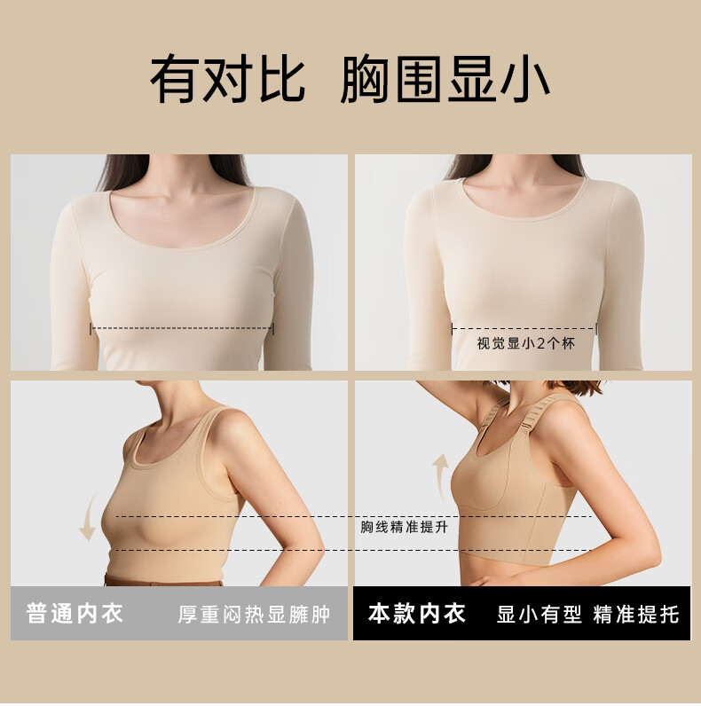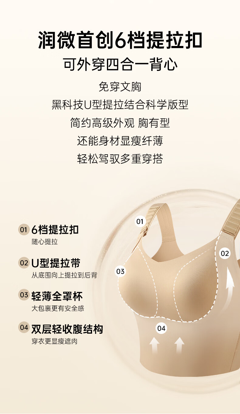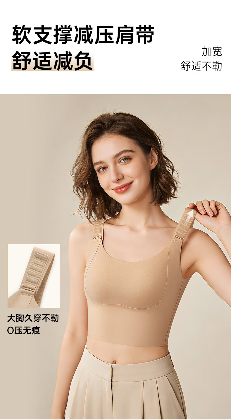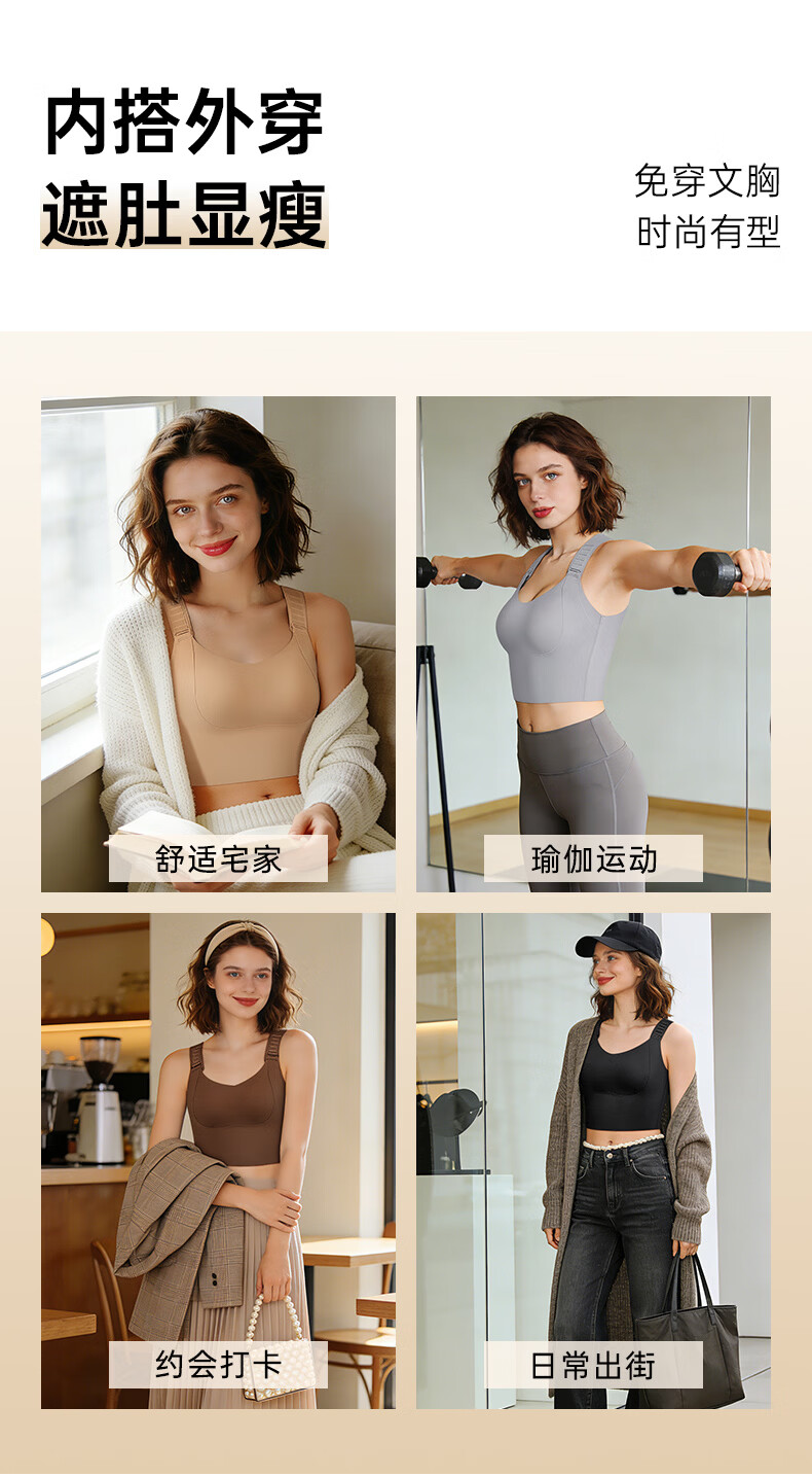 润微运动背心女内搭带胸垫外穿吊带女士防下垂内衣一体式文胸薄款 隐形肤+琥珀棕 L (适合80ABC)