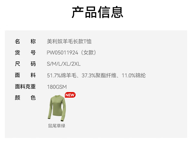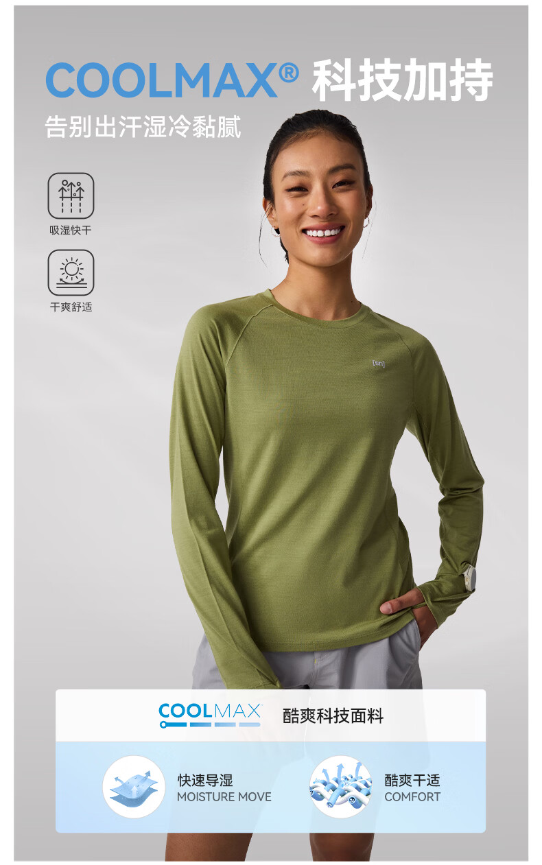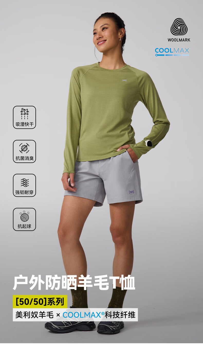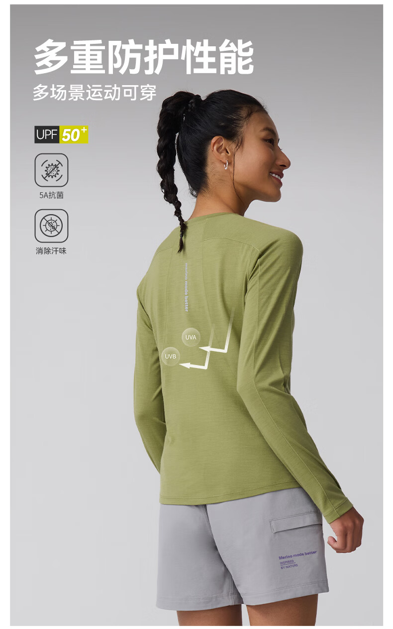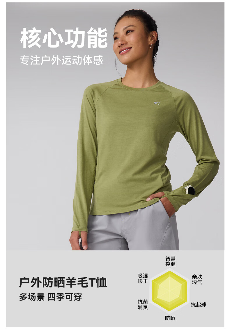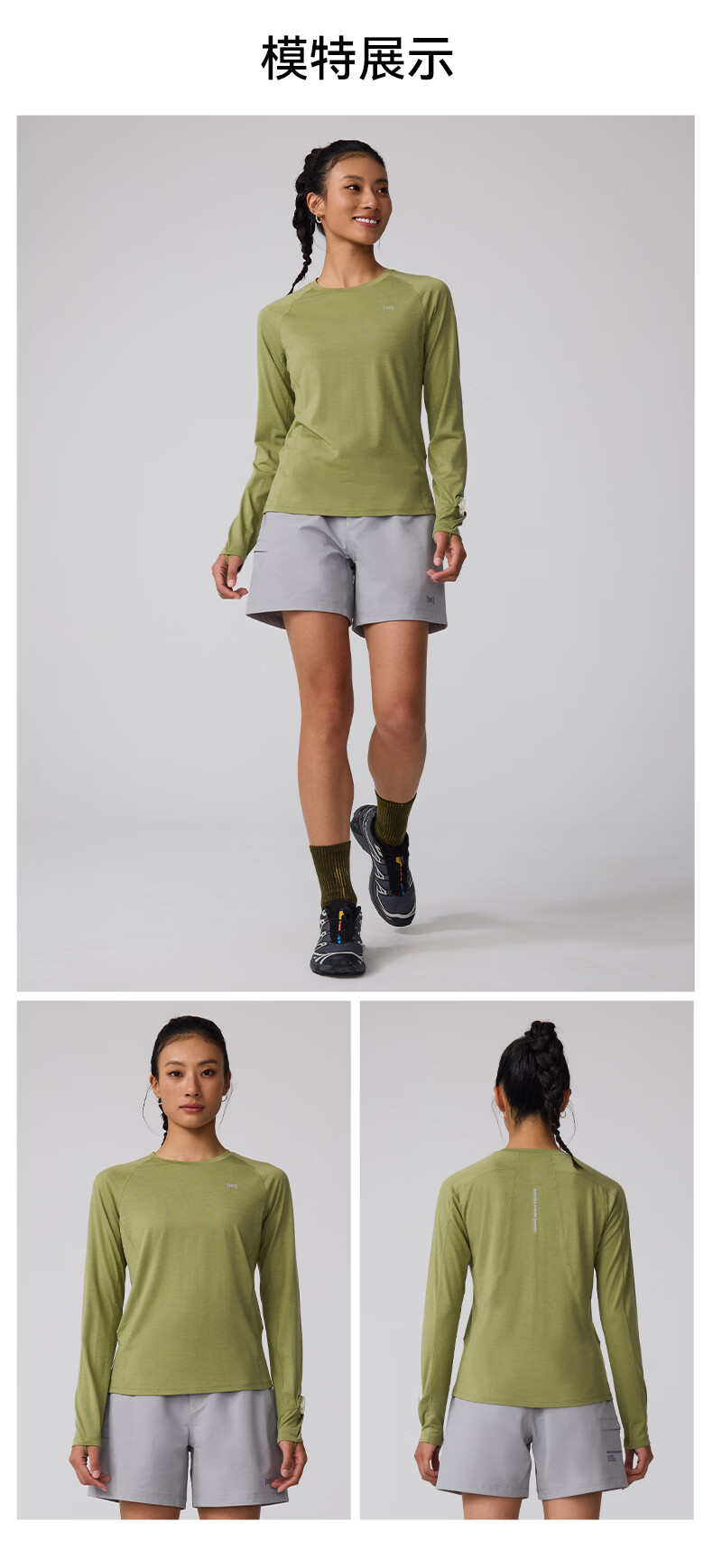 SN【春夏新品】美利奴羊毛长袖T恤女户外防晒跑步上衣50/50系列 鼠尾草绿 女 XL