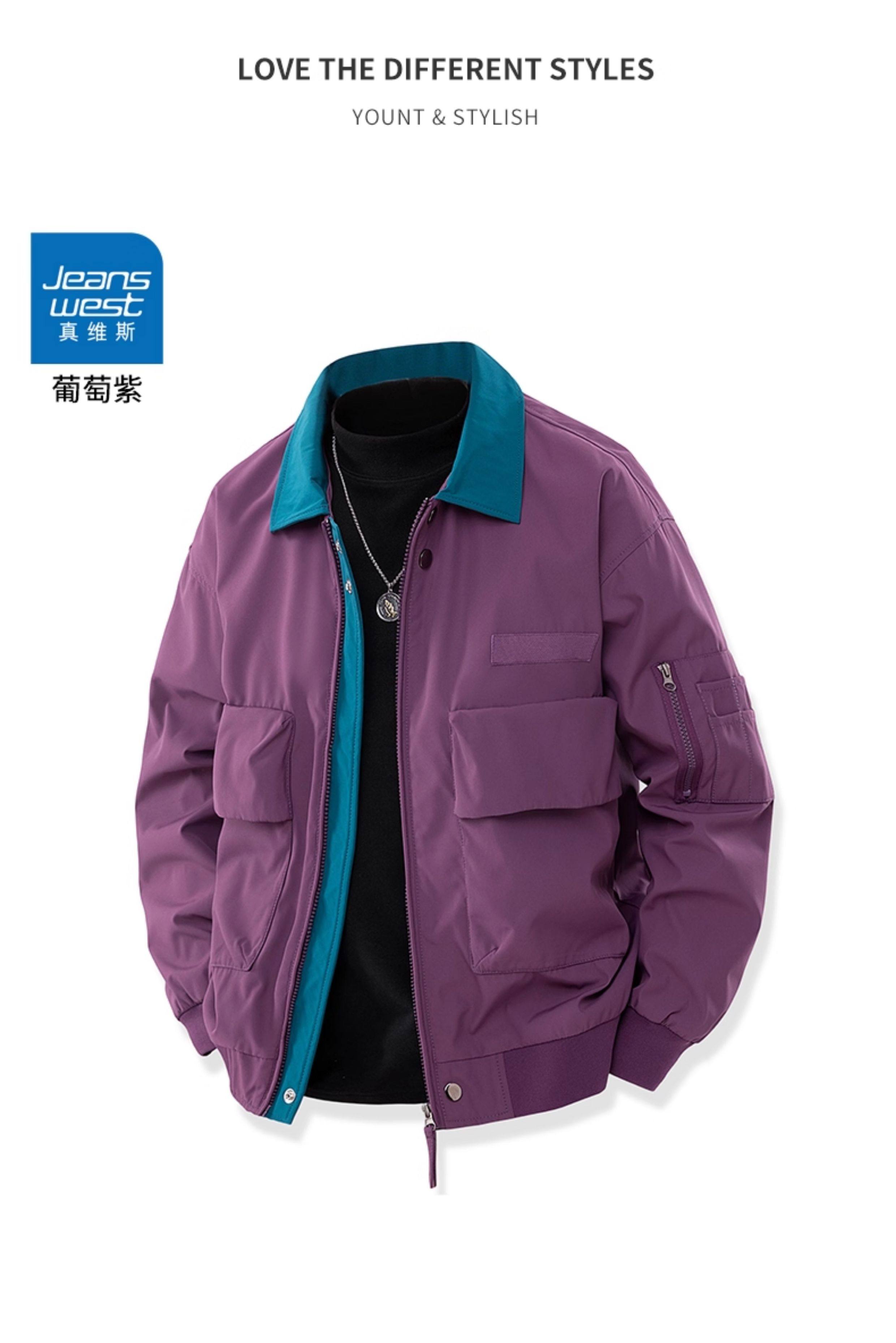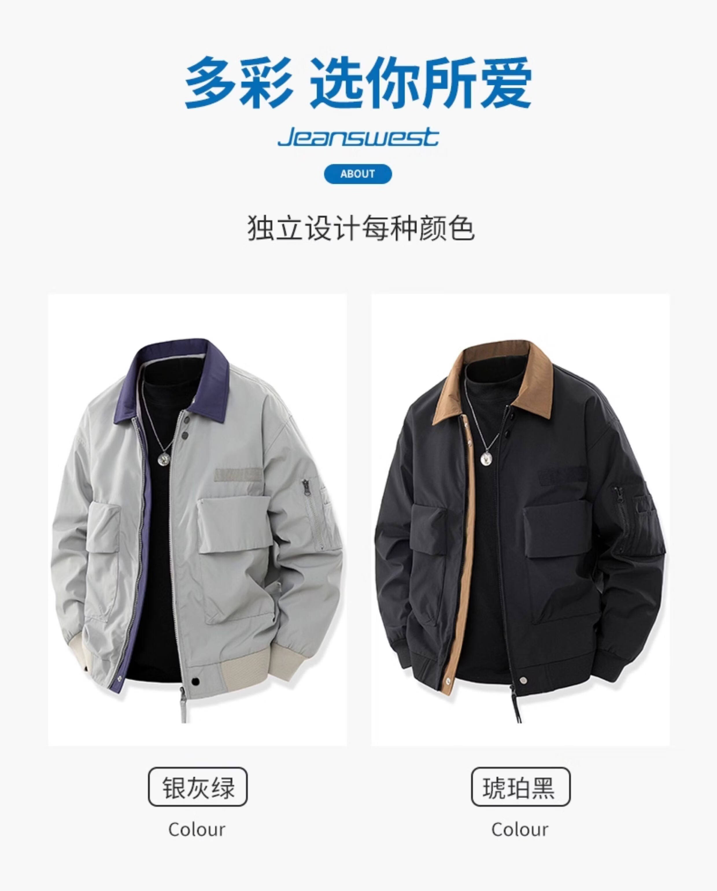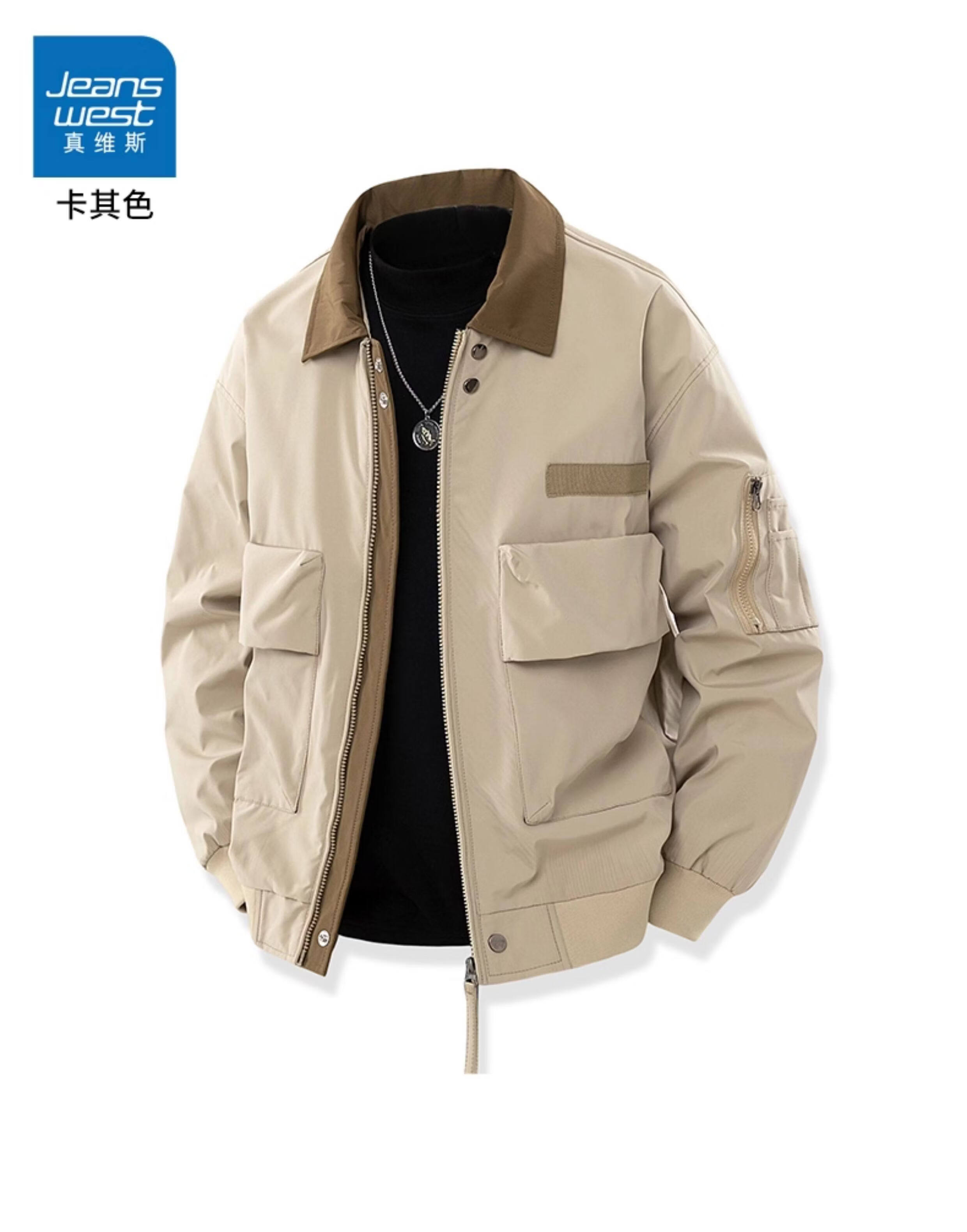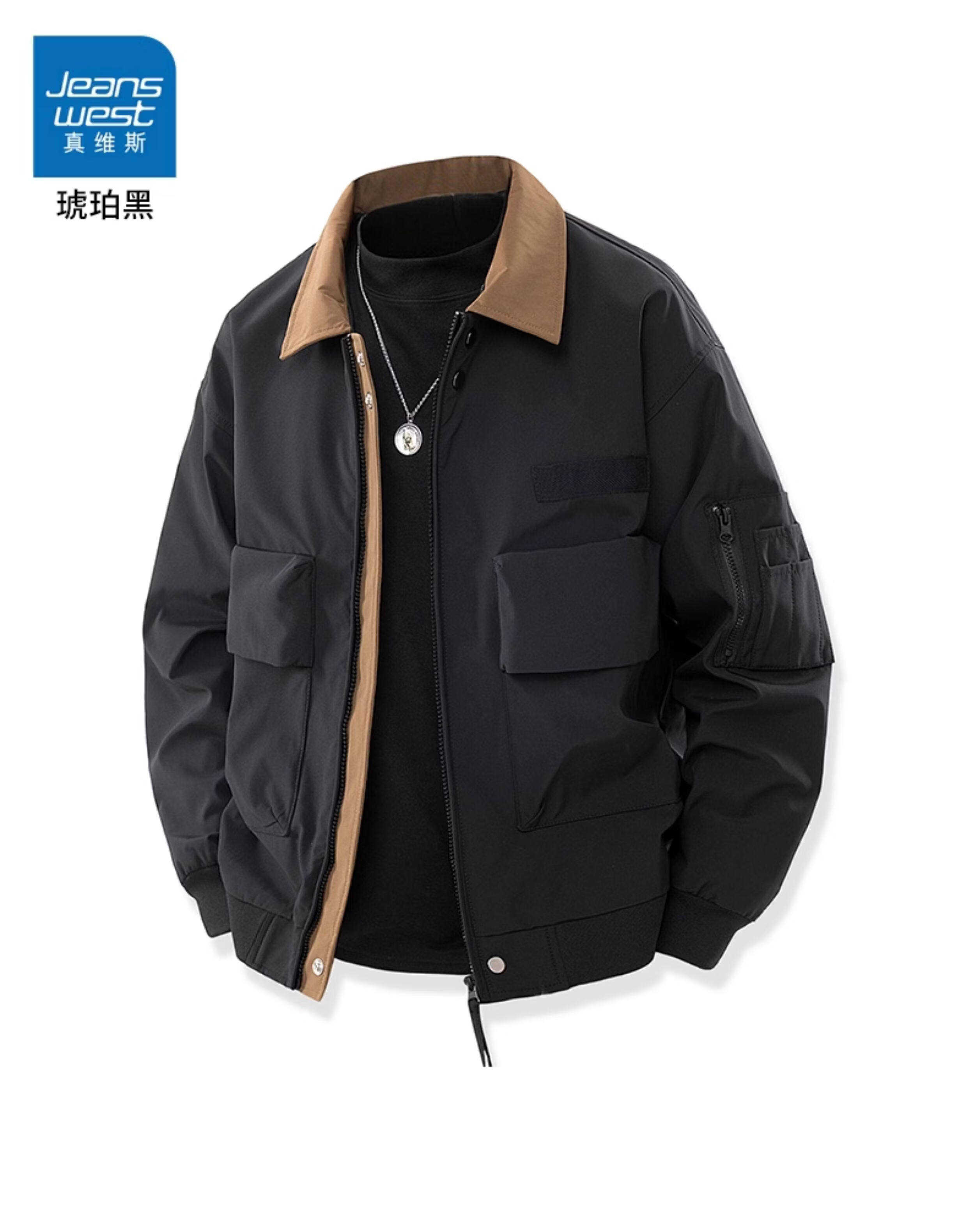 真维斯(Jeanswest)2026新款加棉外套男士冬季保暖工装简约翻领防风宽松休闲夹克外套 琥珀黑 【加棉保暖】 L 建议126-140斤