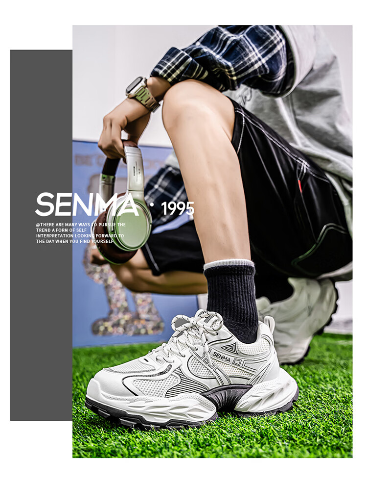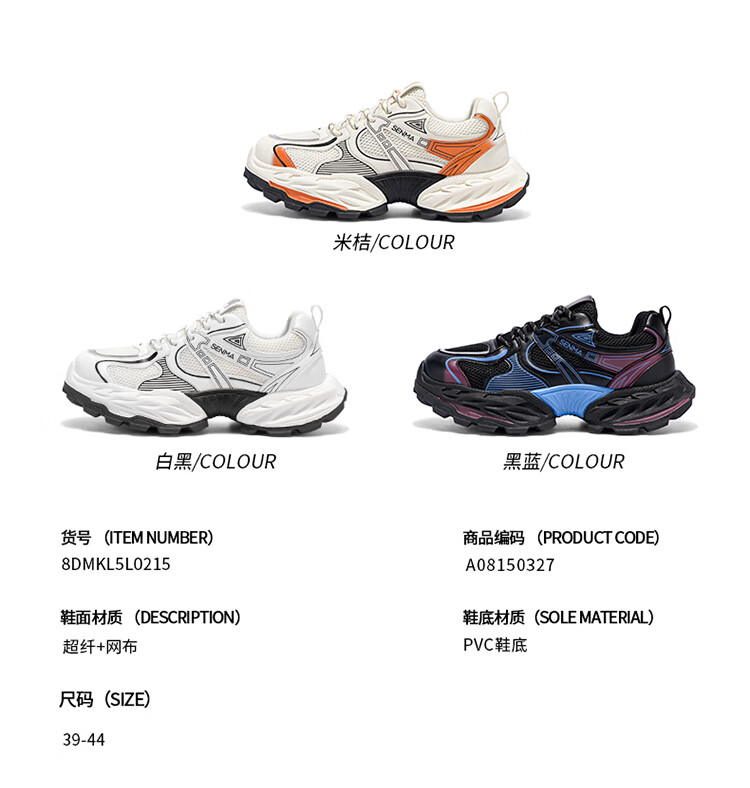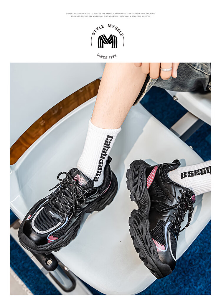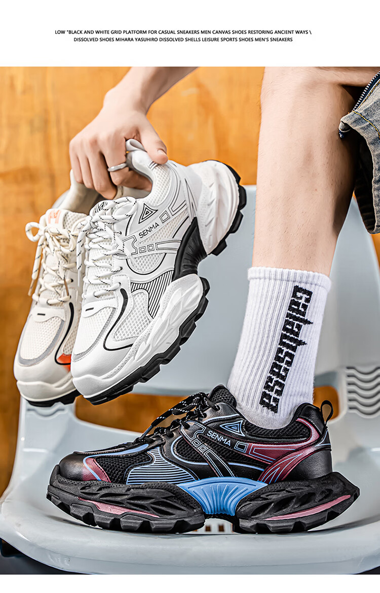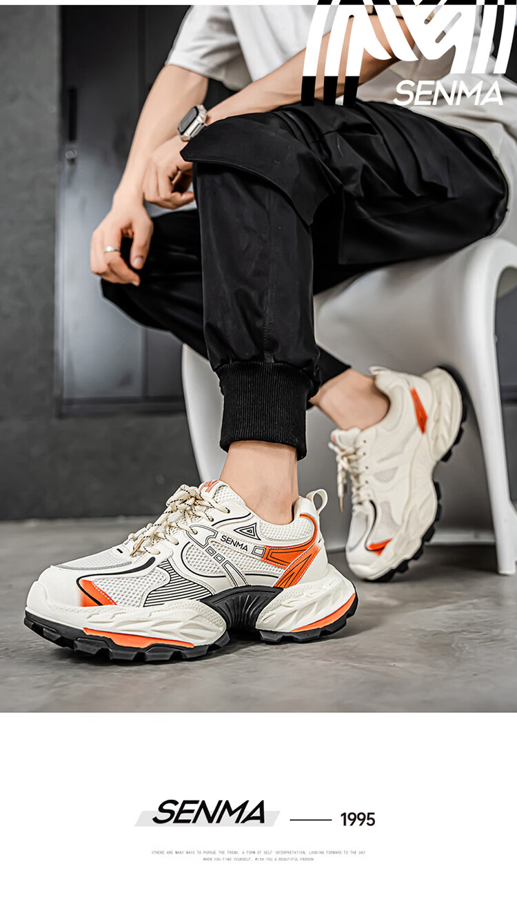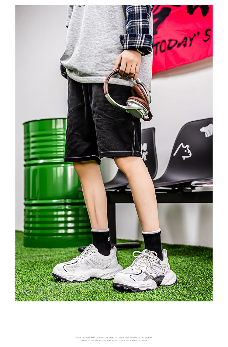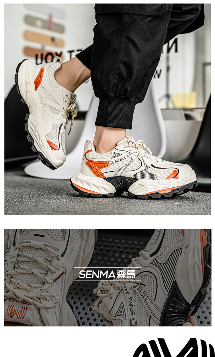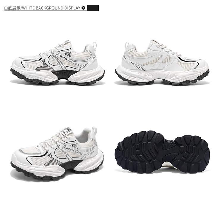 森馬鞋子男2026年新款春季潮流百搭休闲运动鞋青少年厚底增高老爹潮鞋 白黑【基础款】 39 标准码数/现货秒发