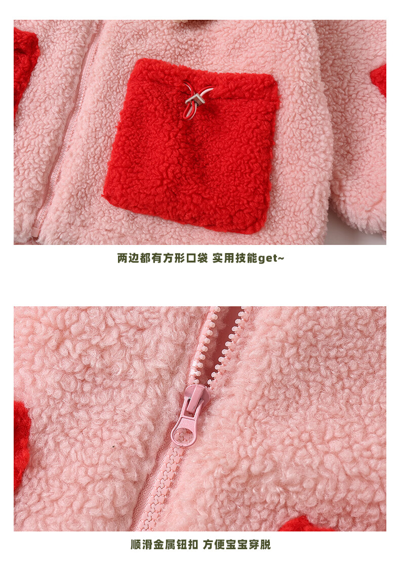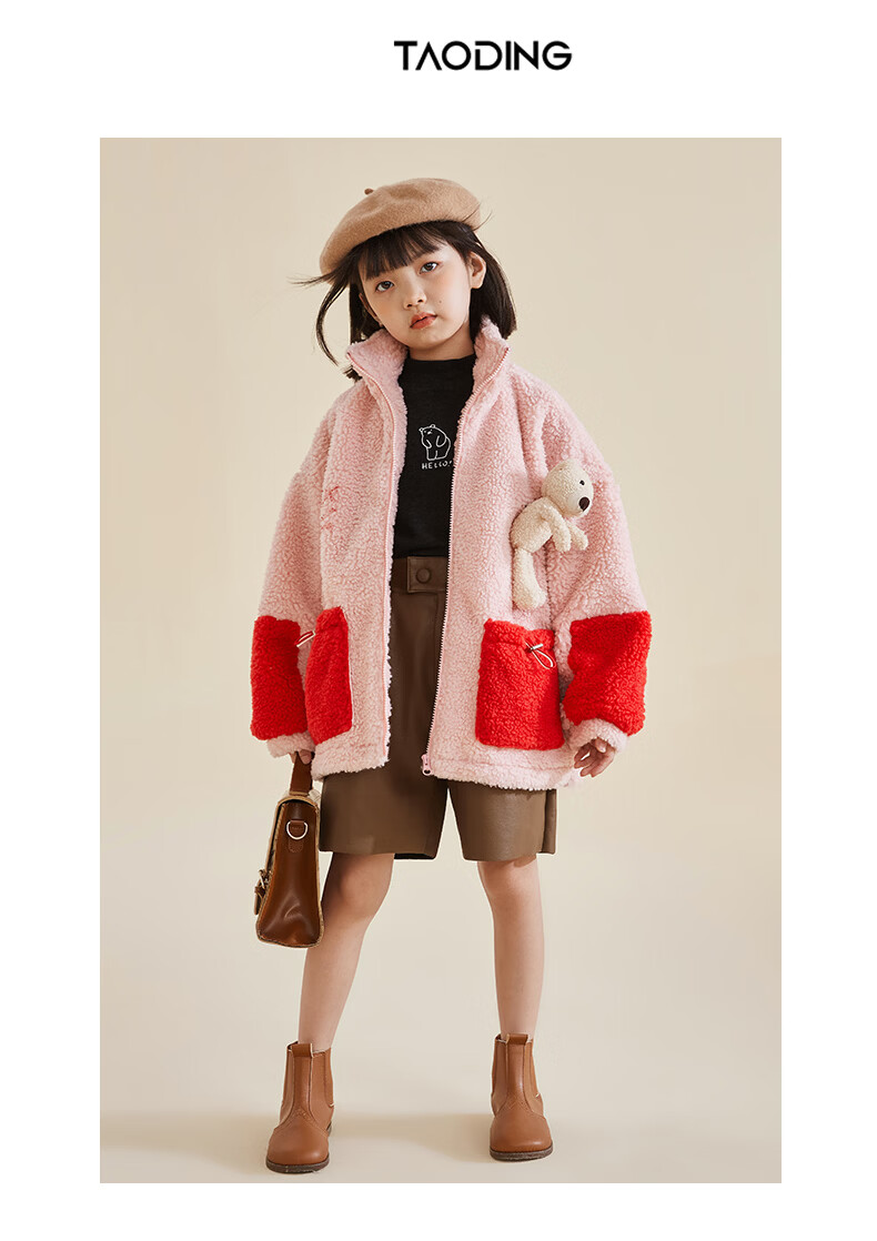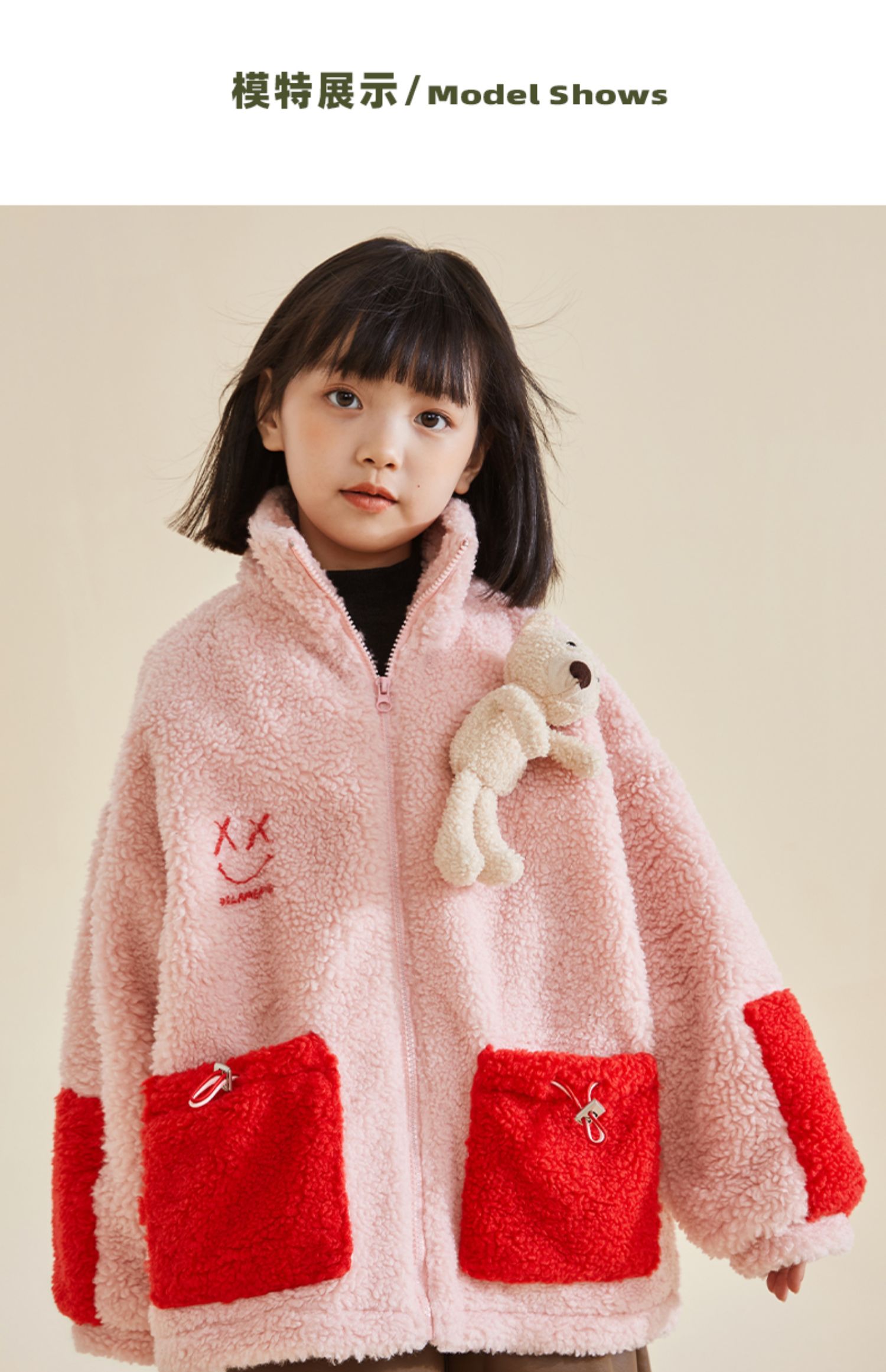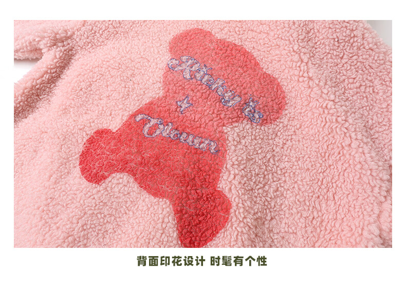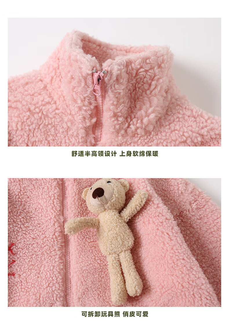 淘町女童羊羔毛外套秋冬季新款中大童摇粒绒保暖洋气可爱粉色大衣 粉红色 110