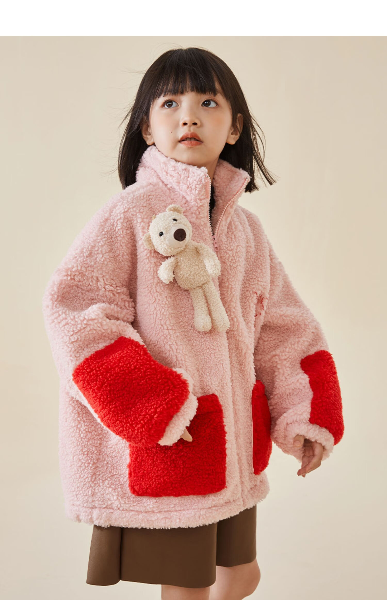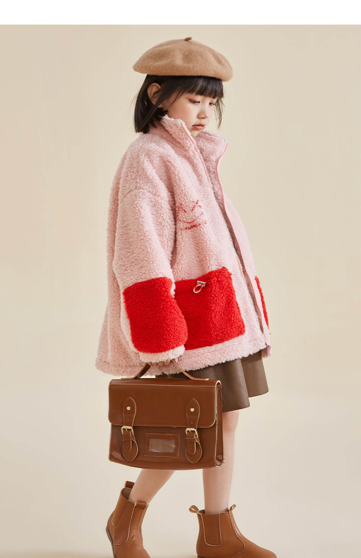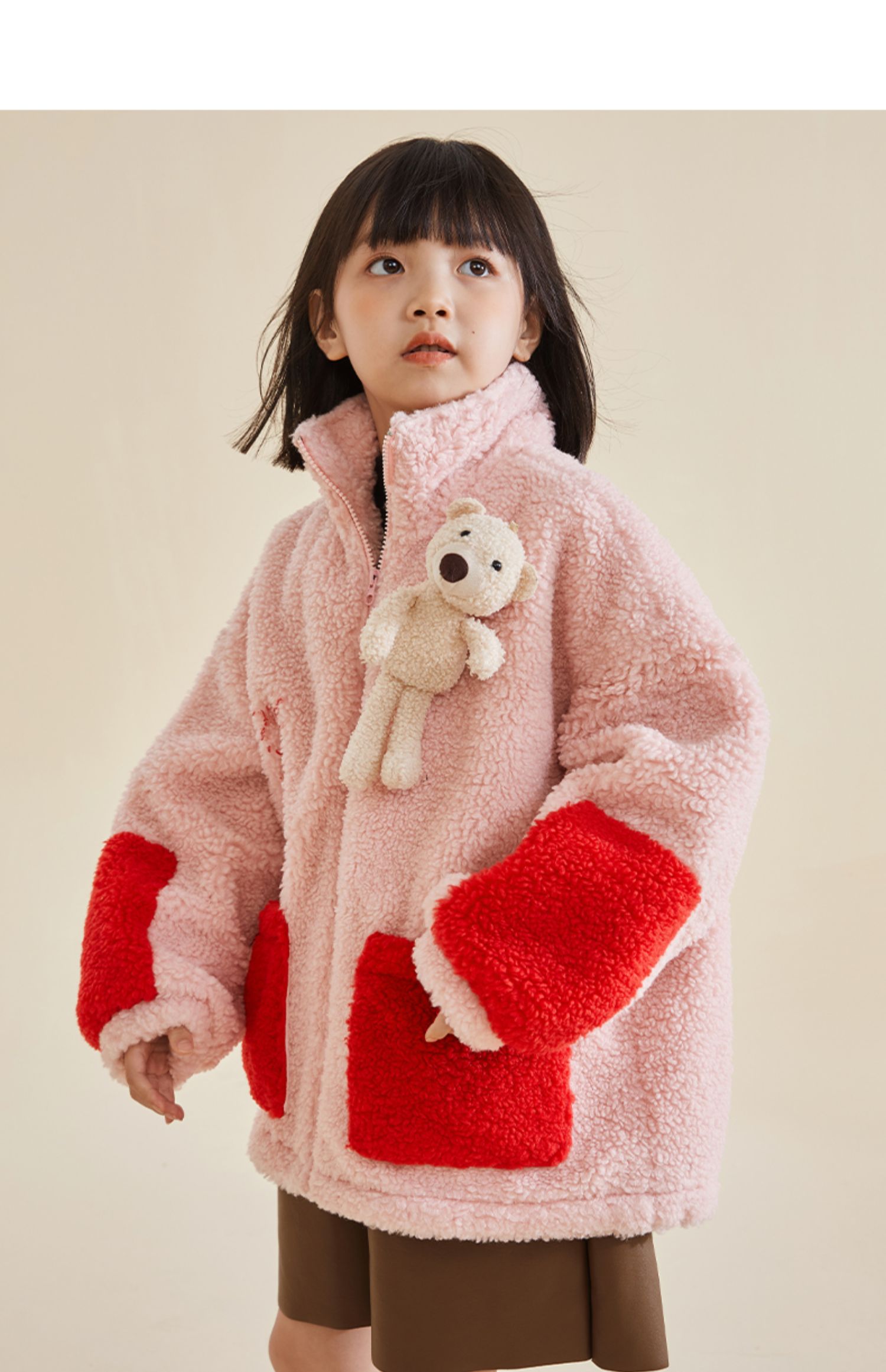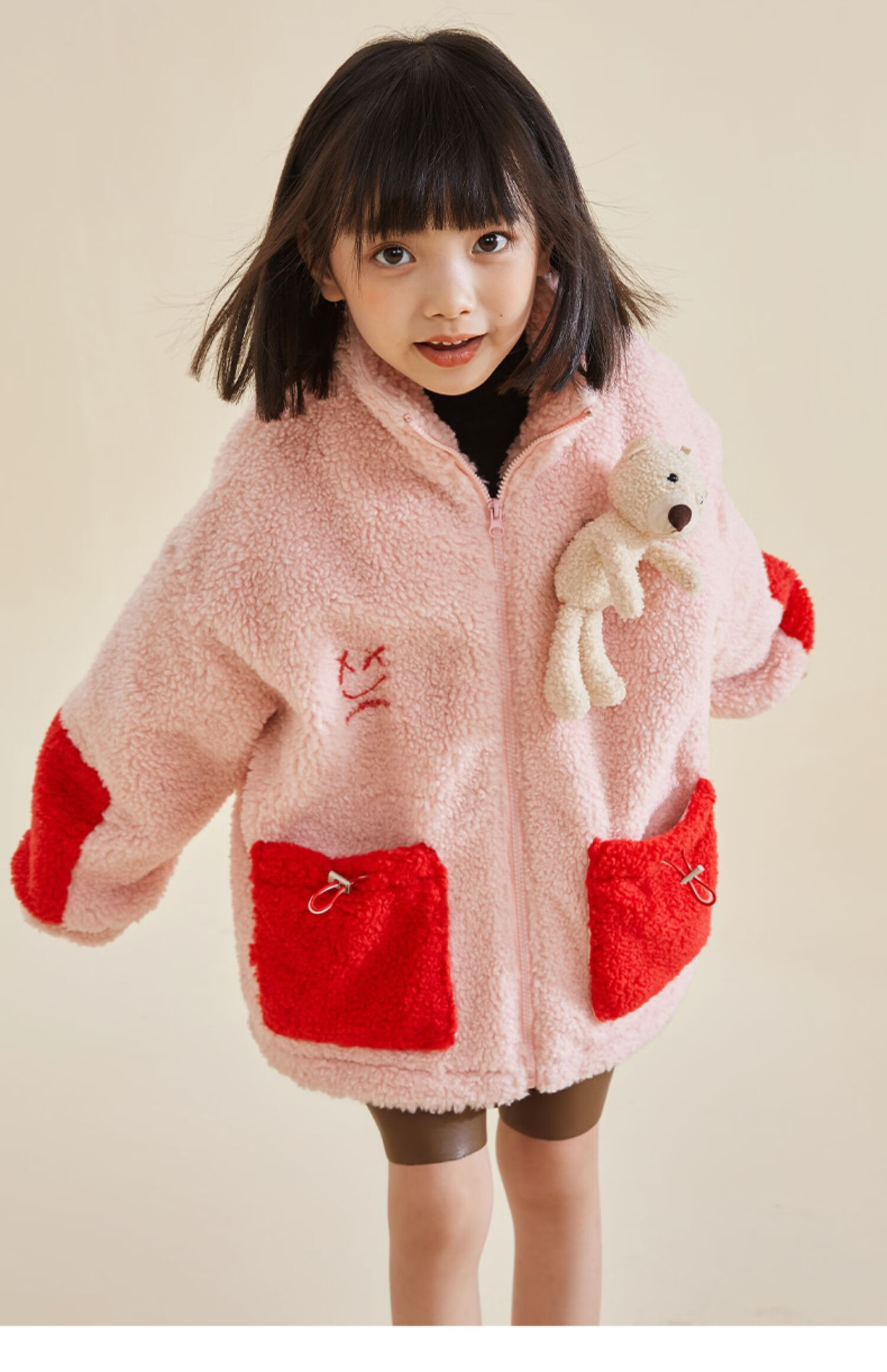淘町女童羊羔毛外套秋冬季新款中大童摇粒绒保暖洋气可爱粉色大衣 粉红色 110
