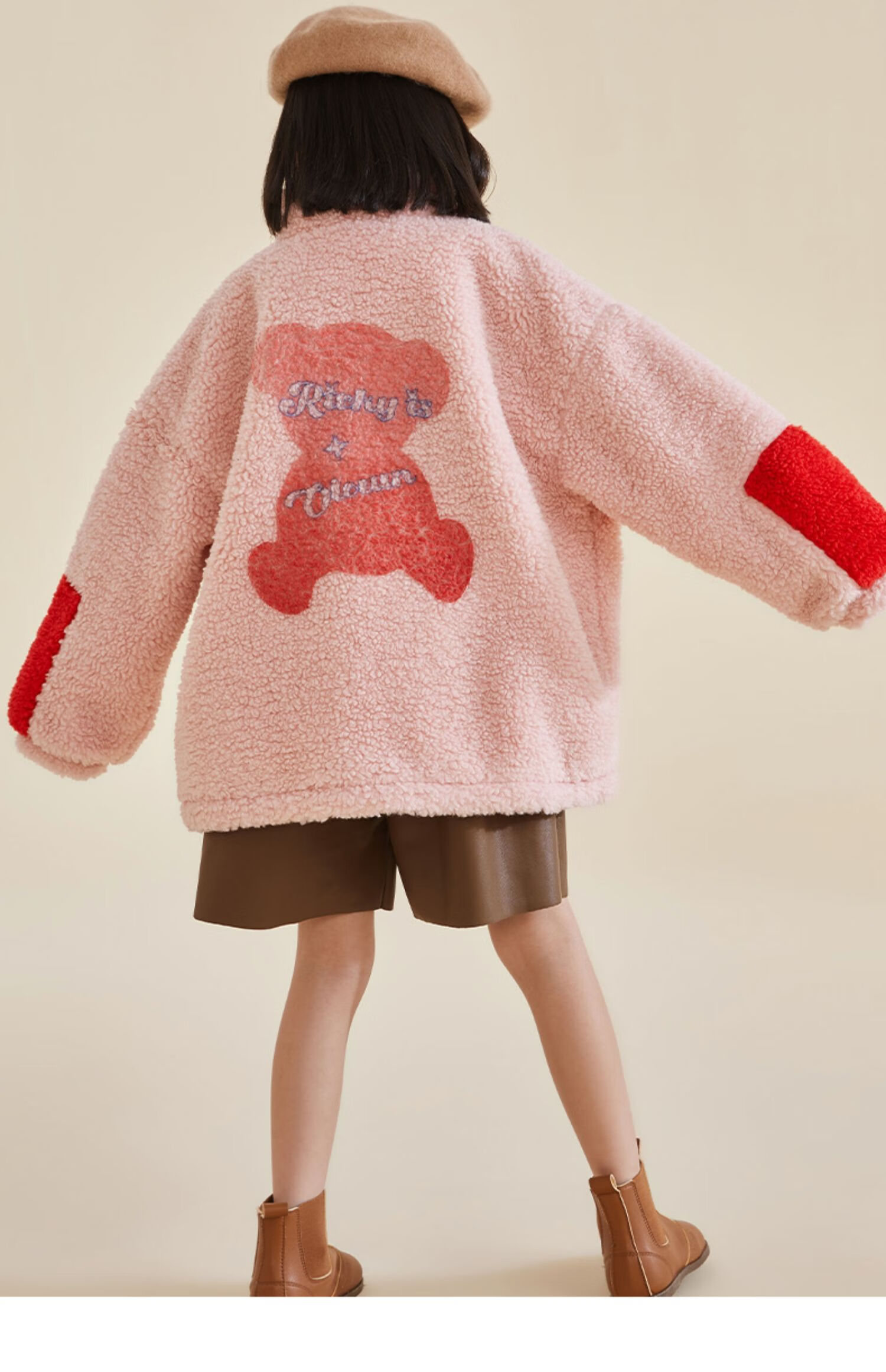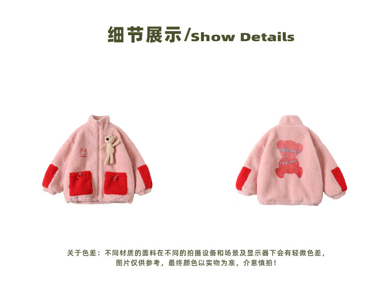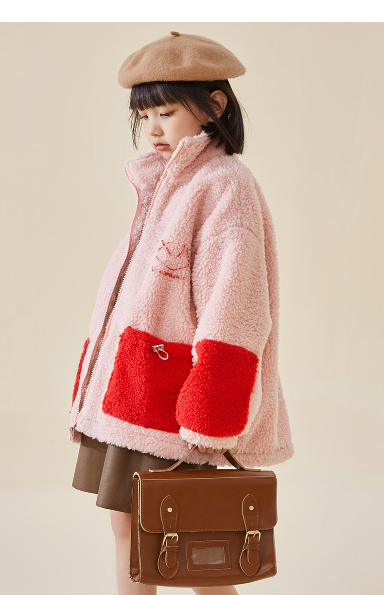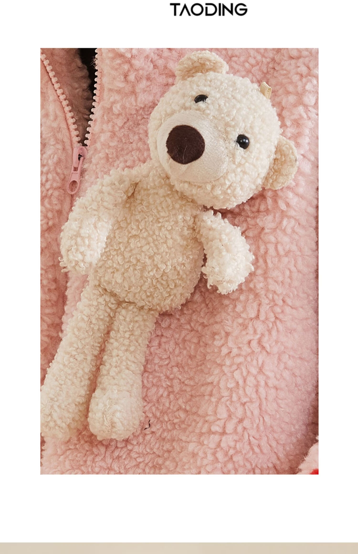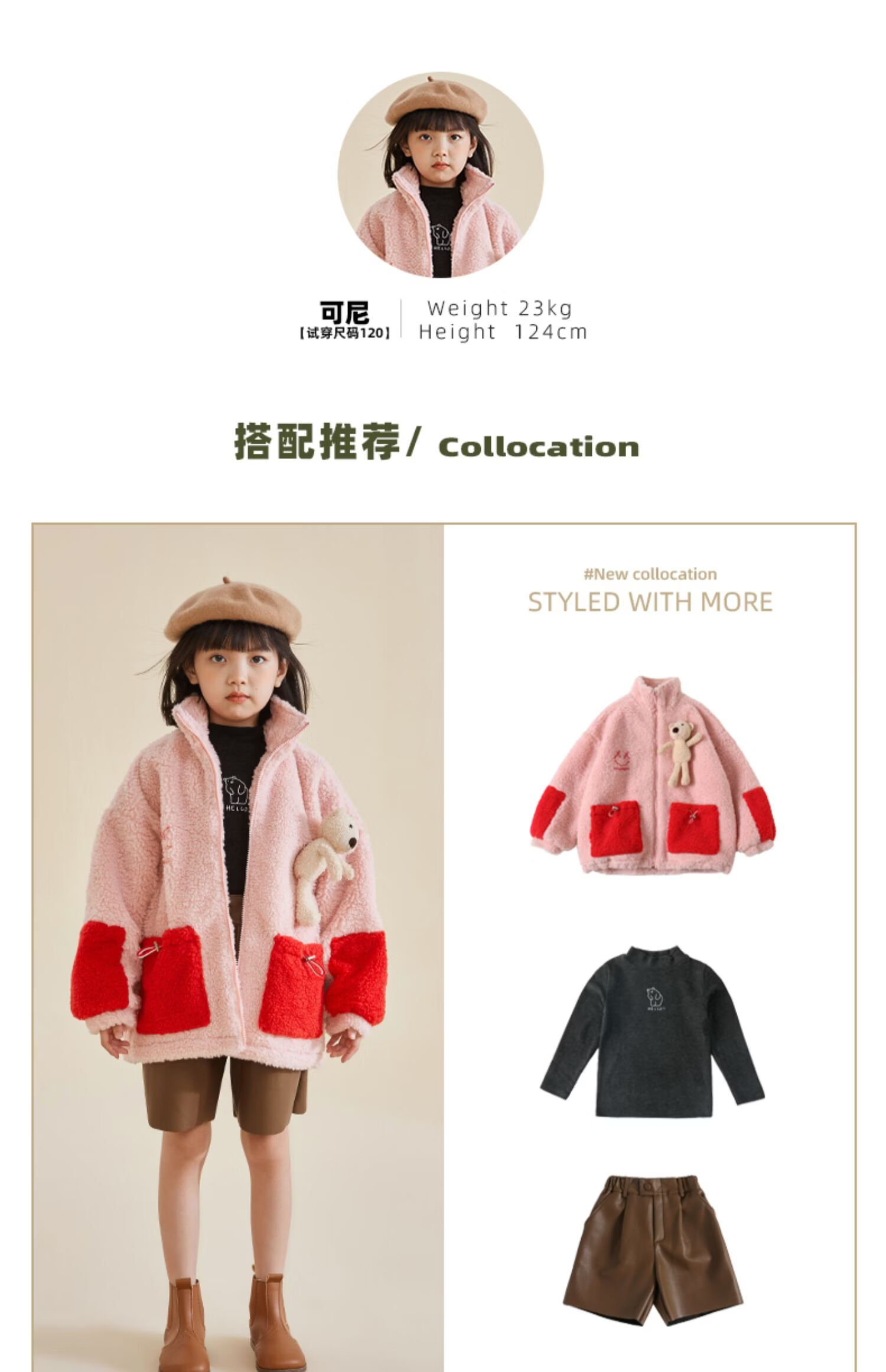 淘町女童羊羔毛外套秋冬季新款中大童摇粒绒保暖洋气可爱粉色大衣 粉红色 110