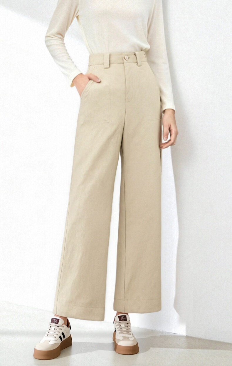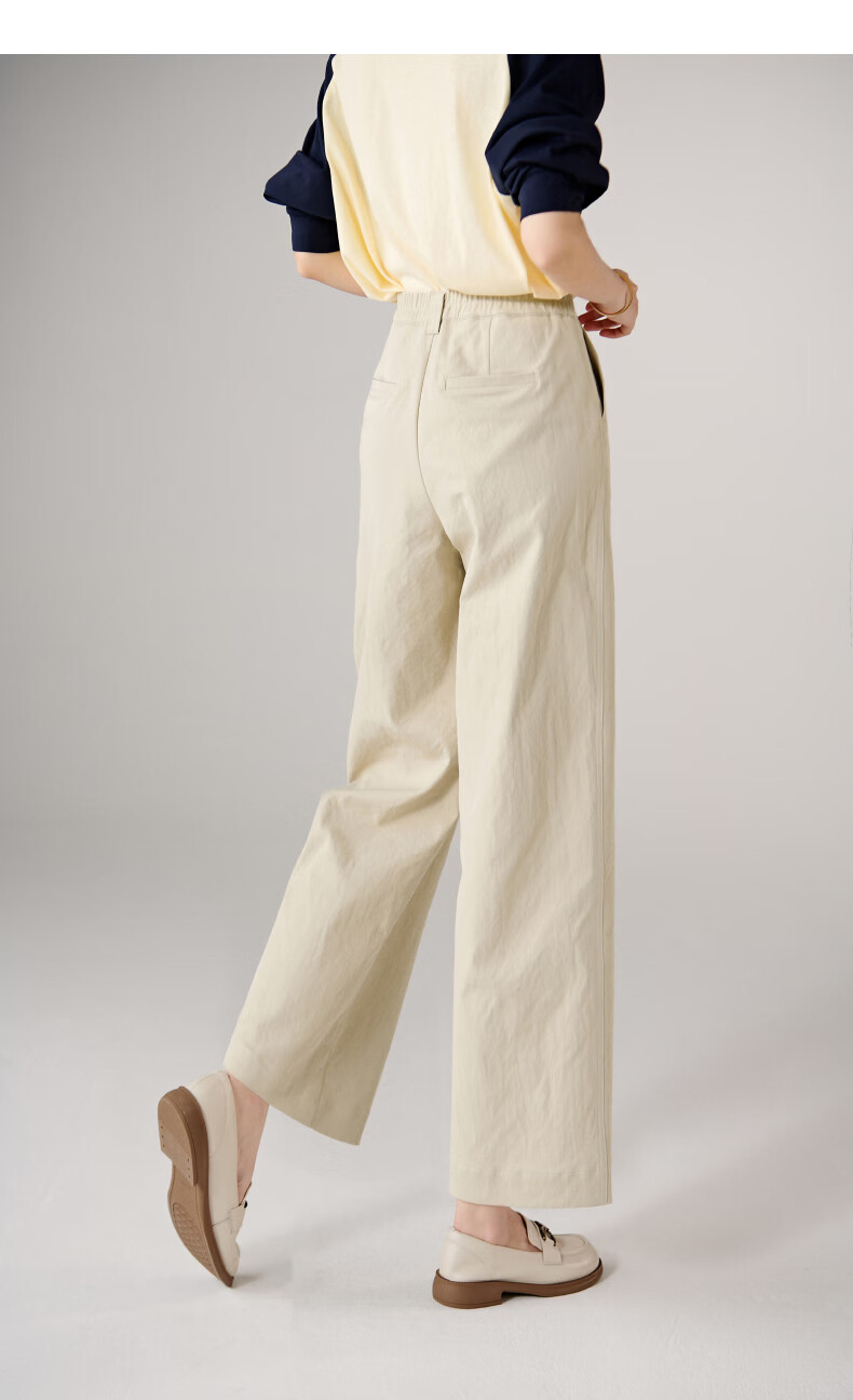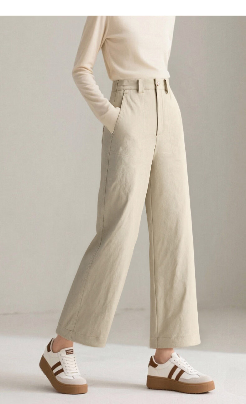 晚白【断码清仓】2026春款经典高腰裤子半松紧遮胯显瘦直筒休闲裤女 浅卡其 28
