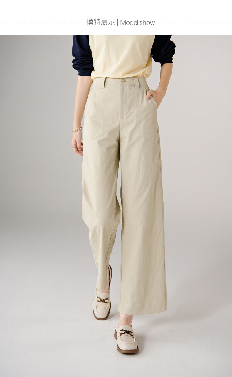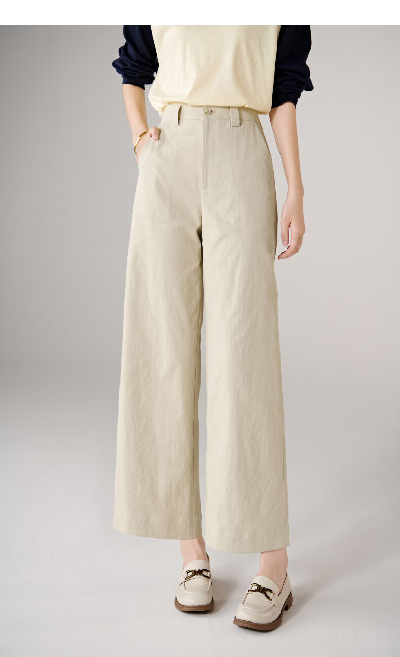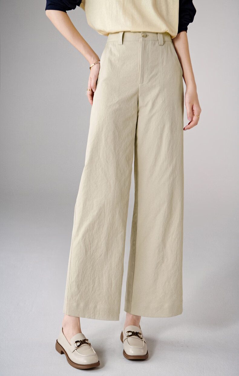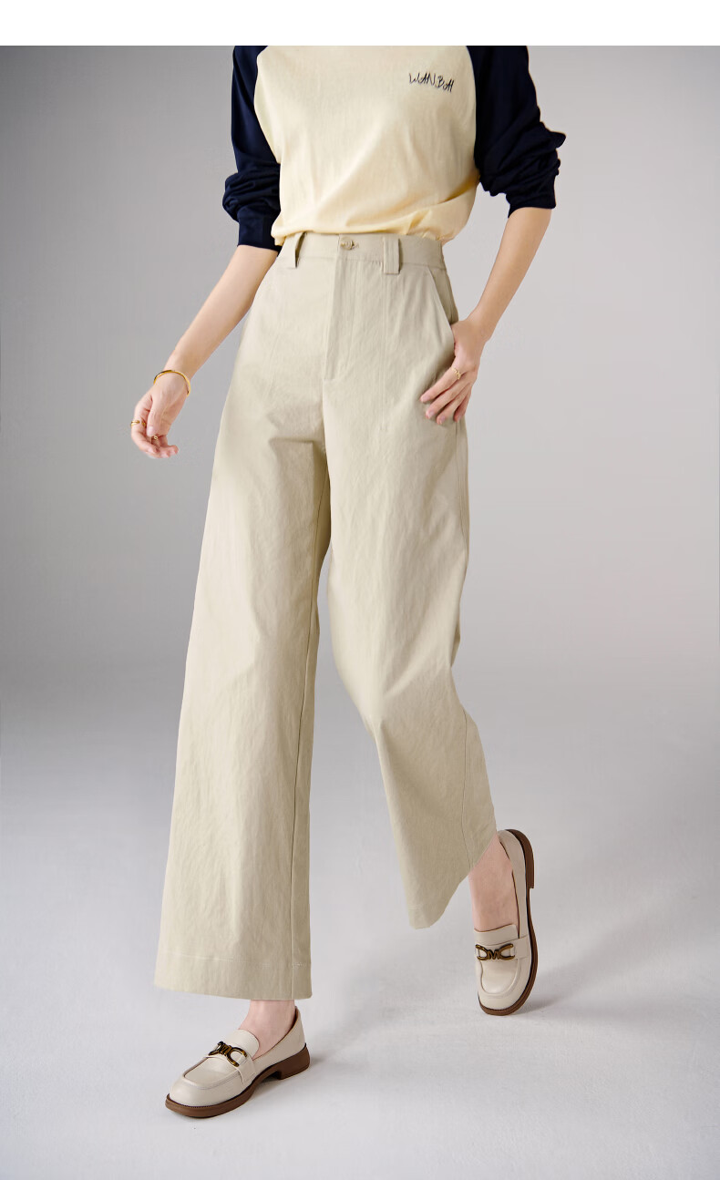 晚白【断码清仓】2026春款经典高腰裤子半松紧遮胯显瘦直筒休闲裤女 浅卡其 28