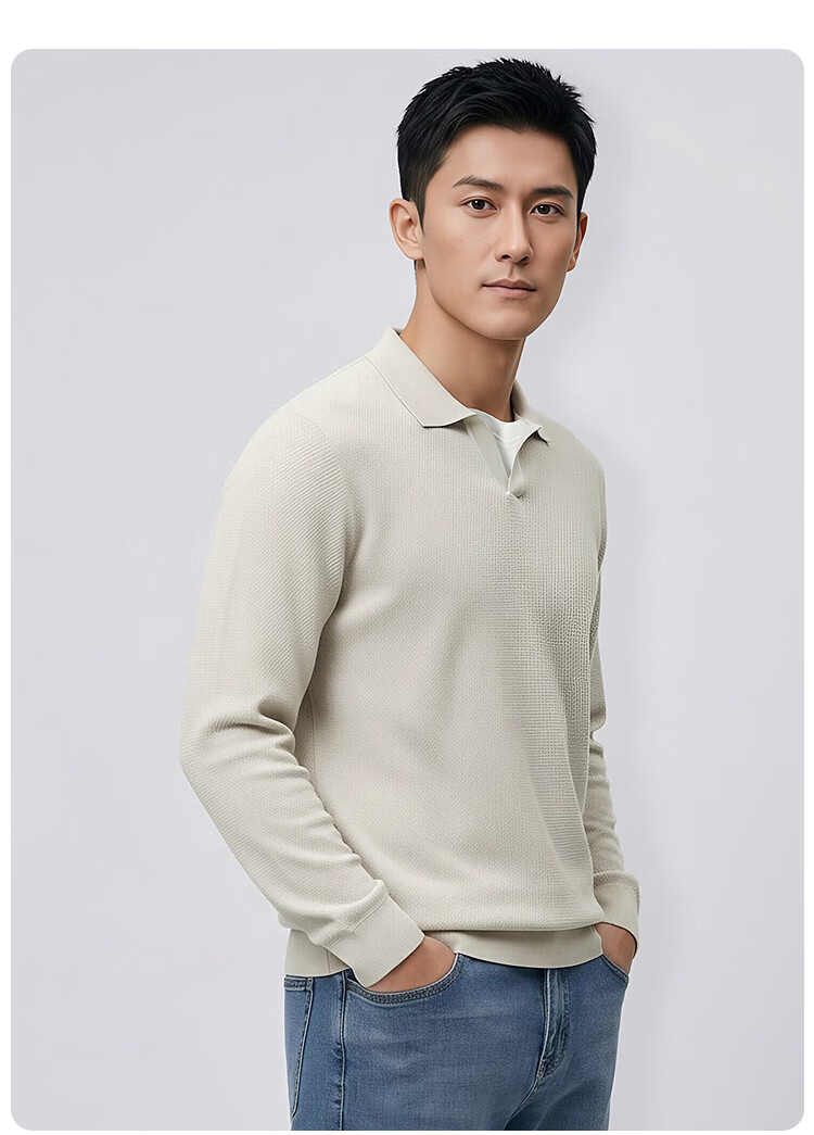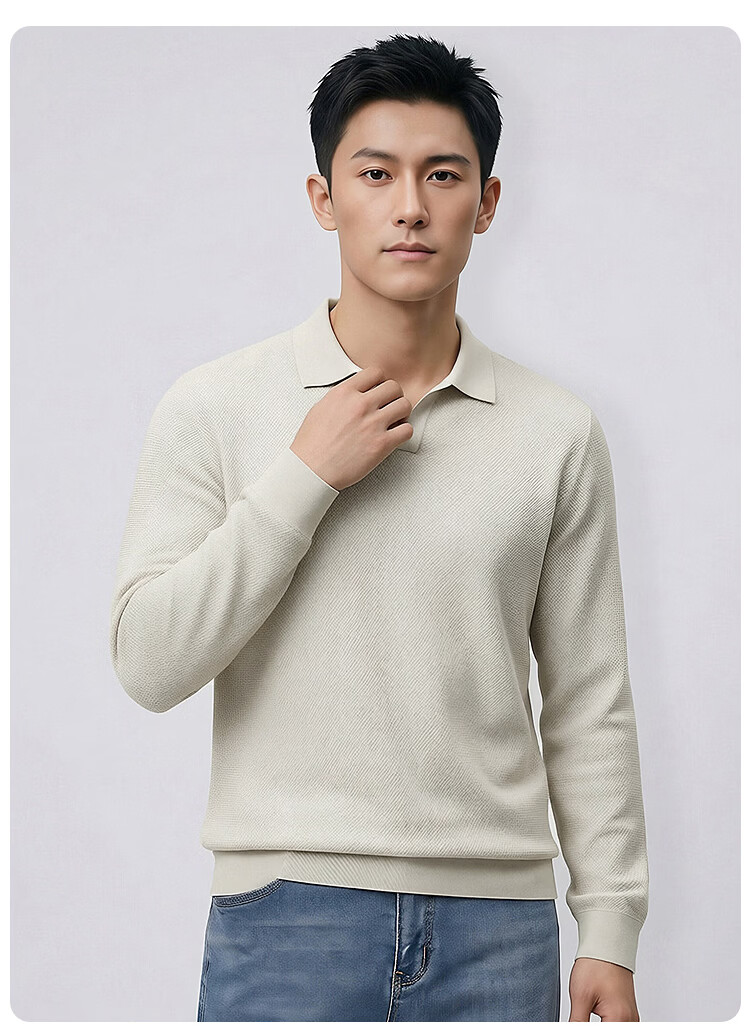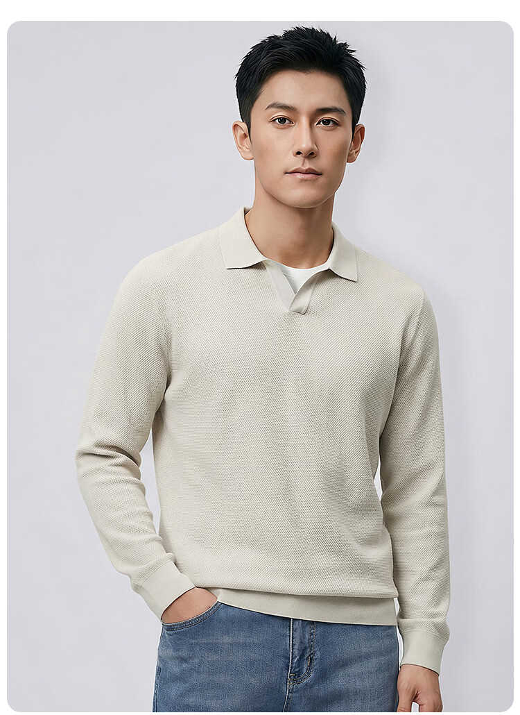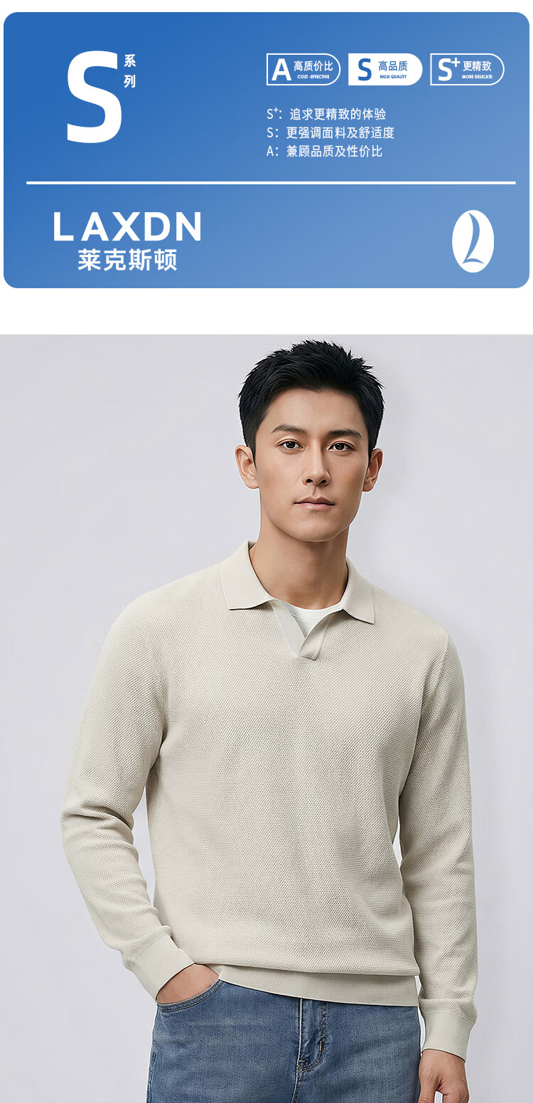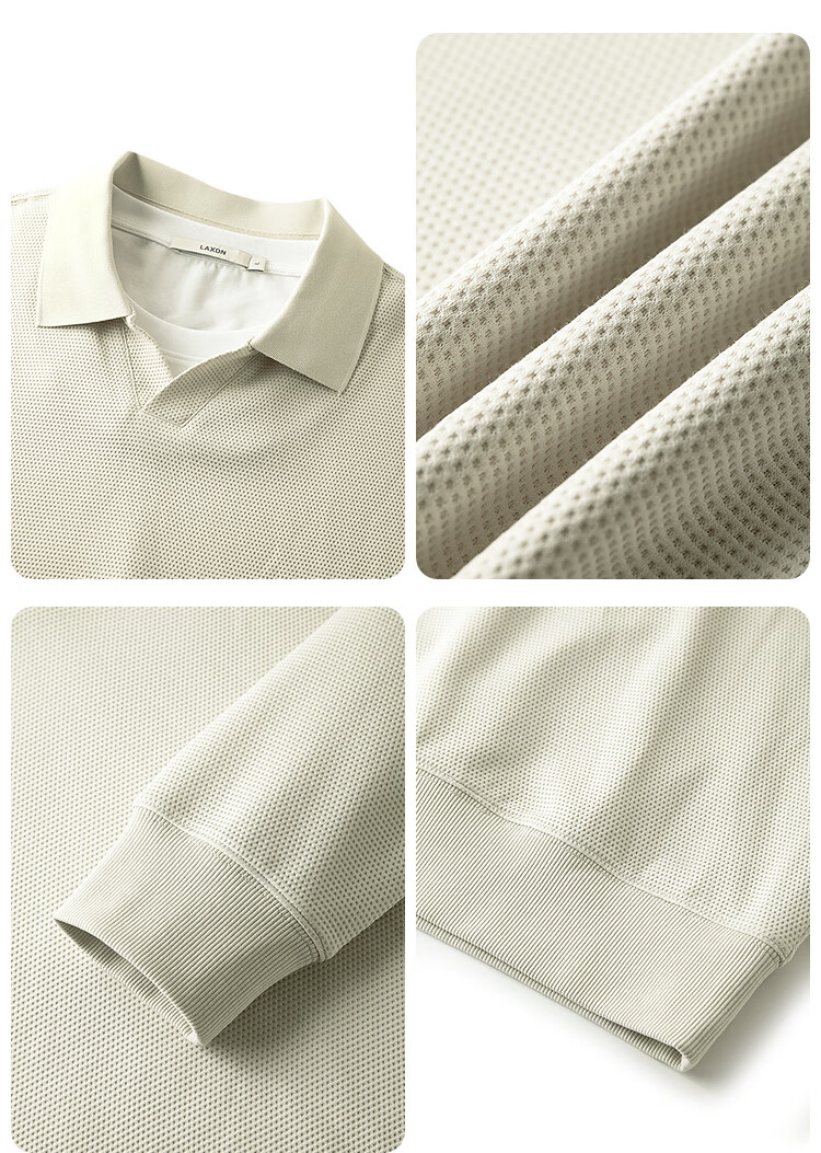 莱克斯顿(laxdn)卫衣男春秋翻领纹理抗皱假两件柔软亲肤简约时尚长袖上衣男装 浅杏色 S