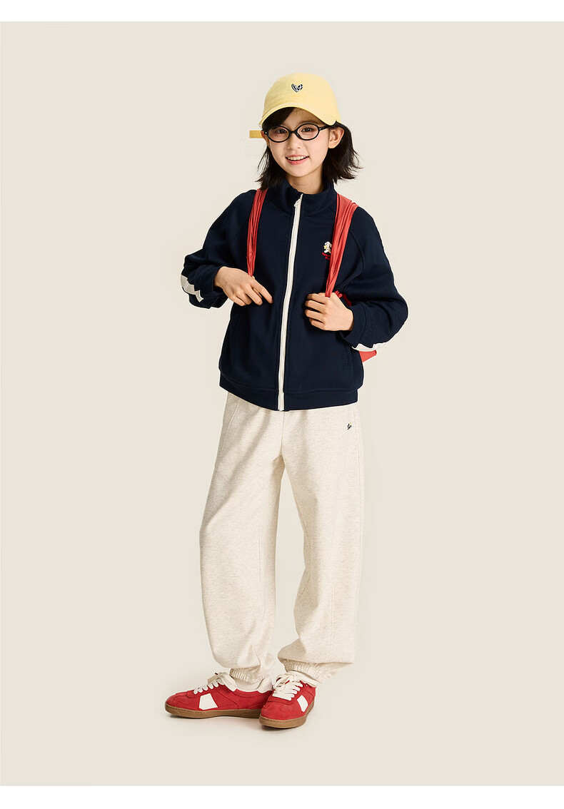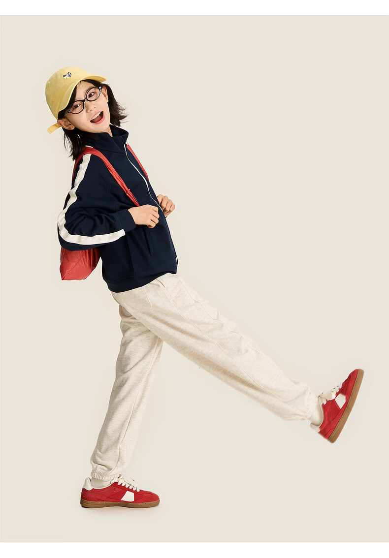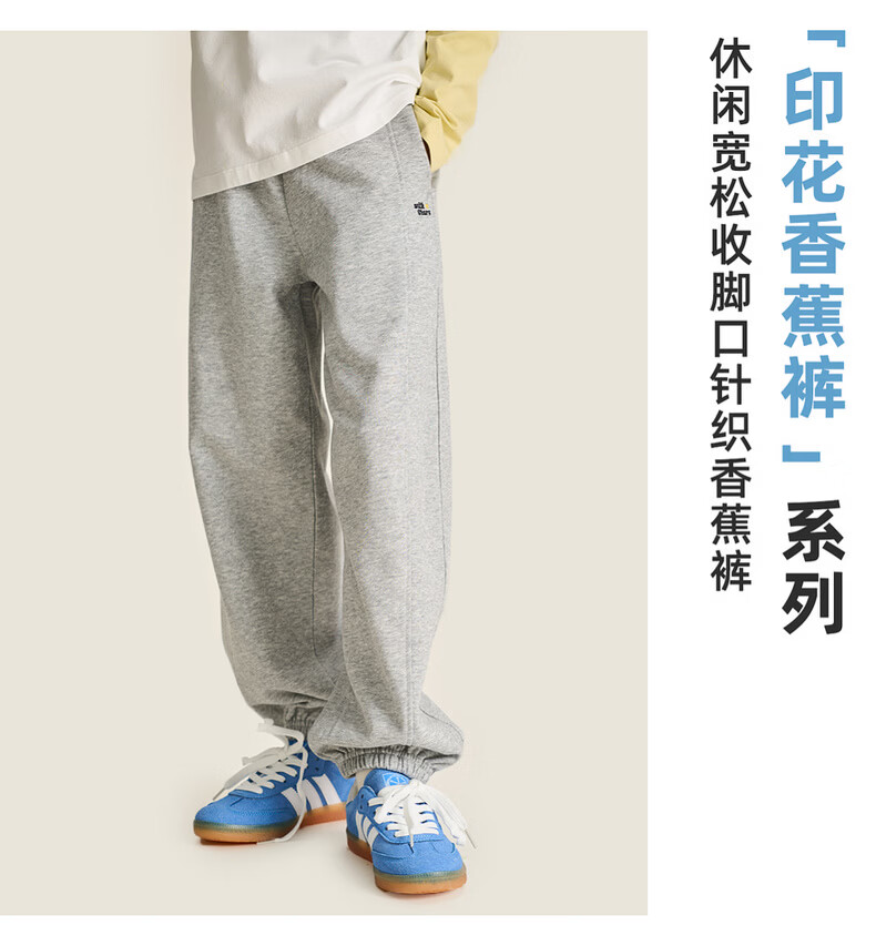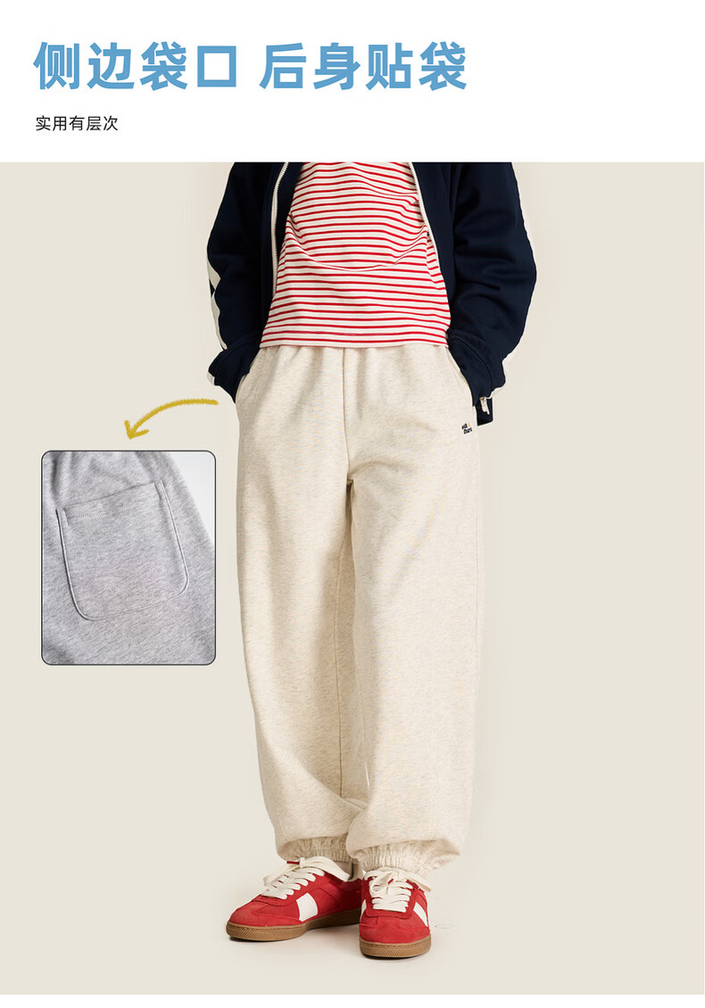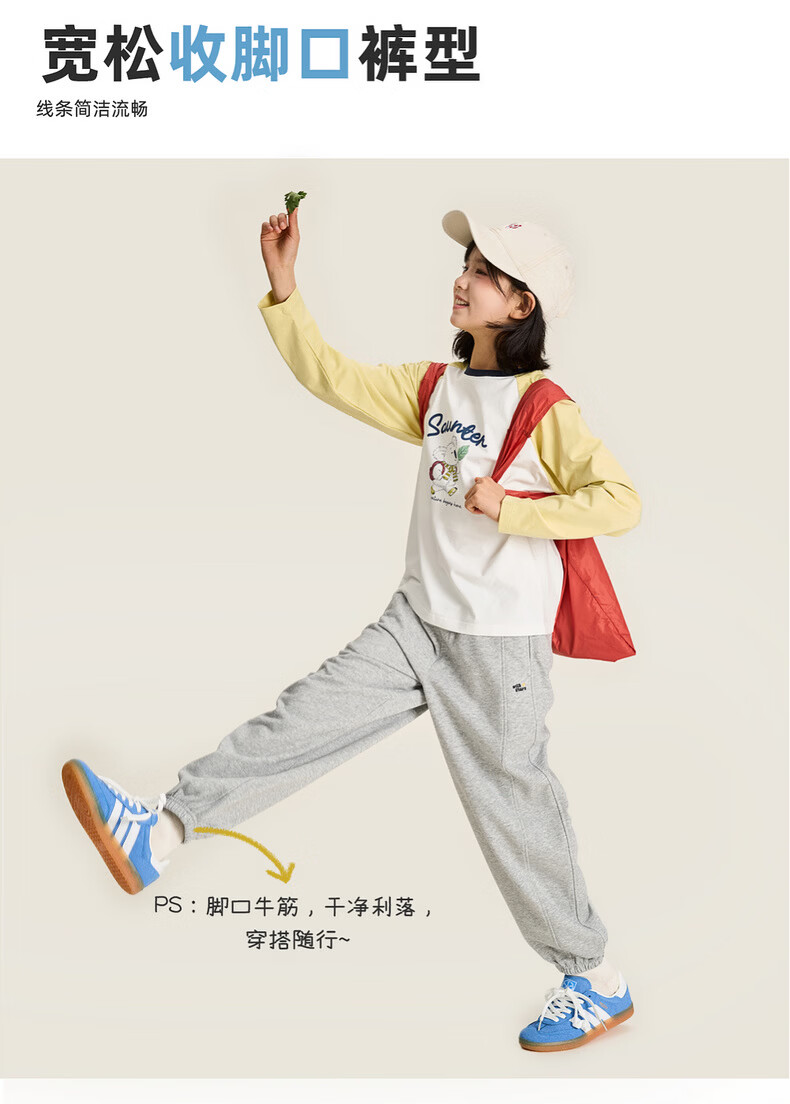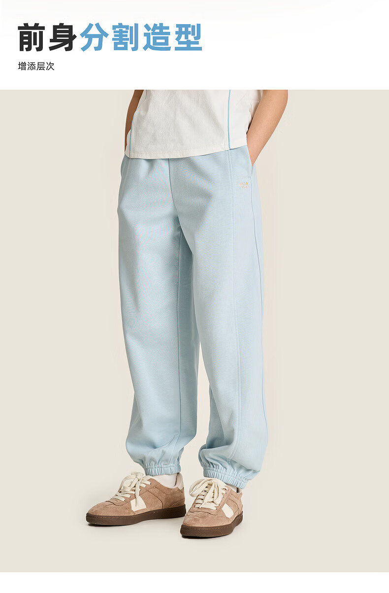 棉叔叔【结构款校服裤】女童毛圈卫裤男童2026春休闲收脚口香蕉裤男童 碧水蓝 150 150