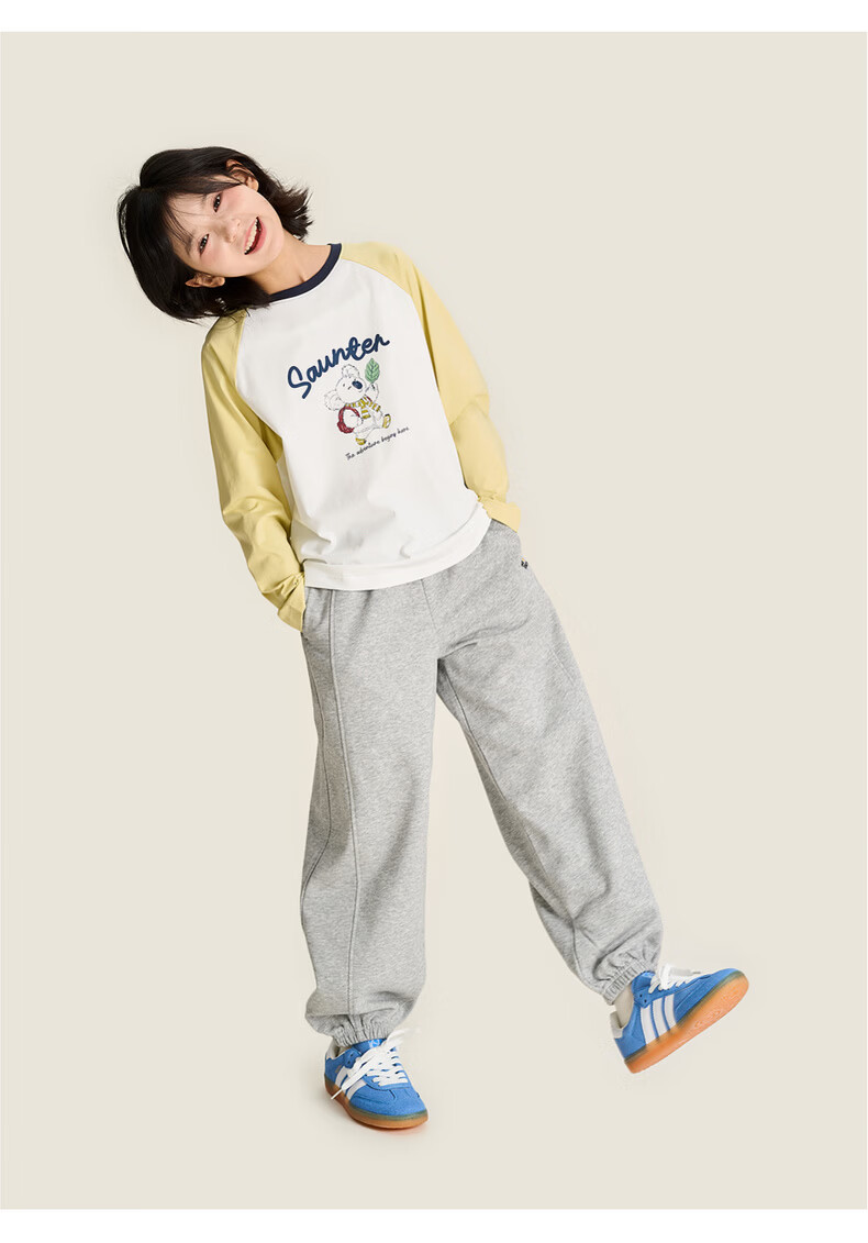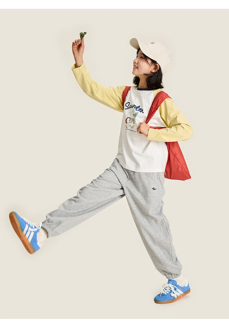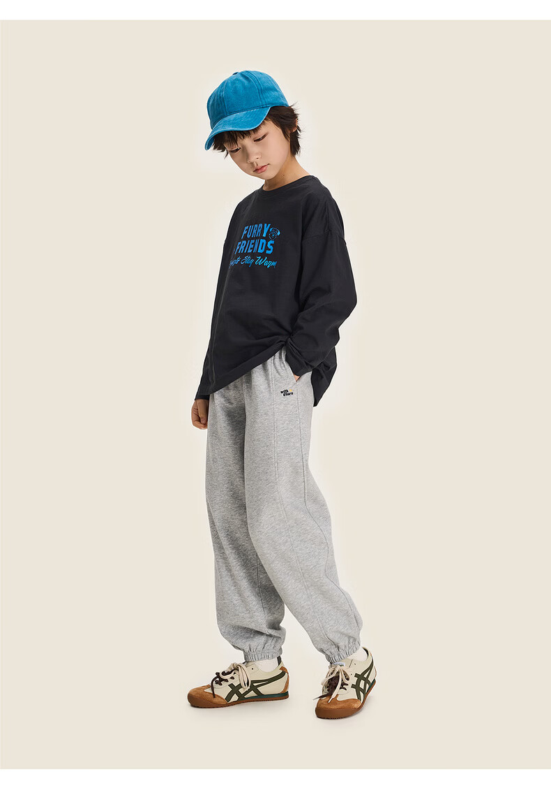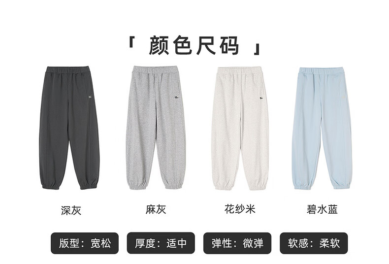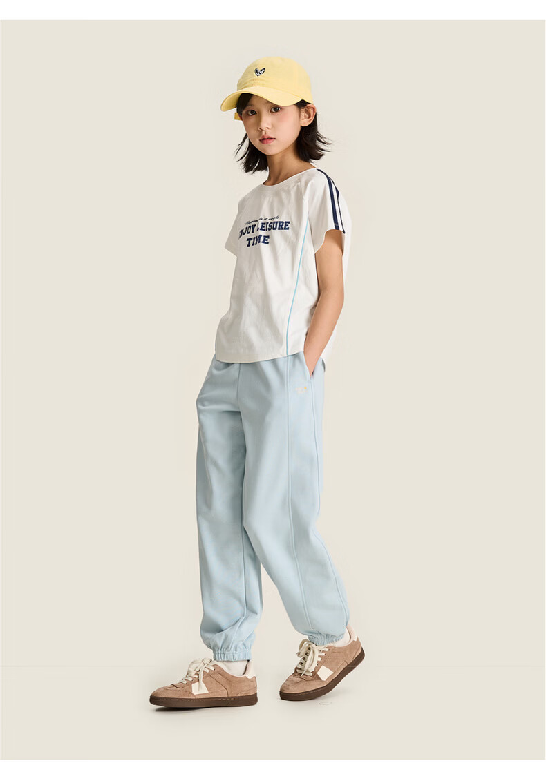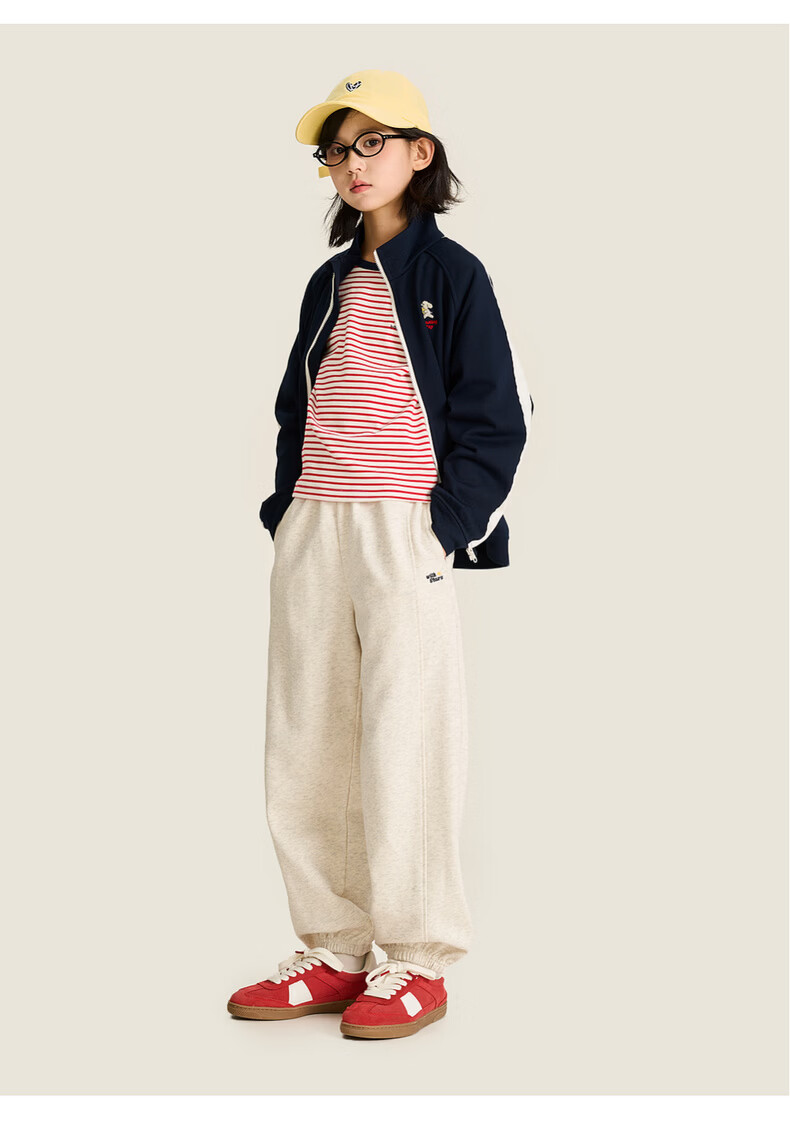 棉叔叔【结构款校服裤】女童毛圈卫裤男童2026春休闲收脚口香蕉裤男童 碧水蓝 150 150