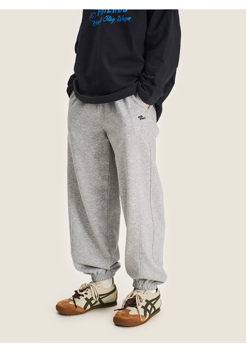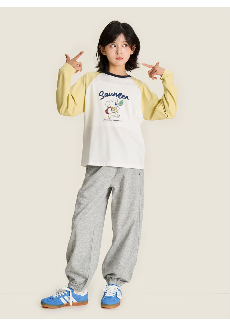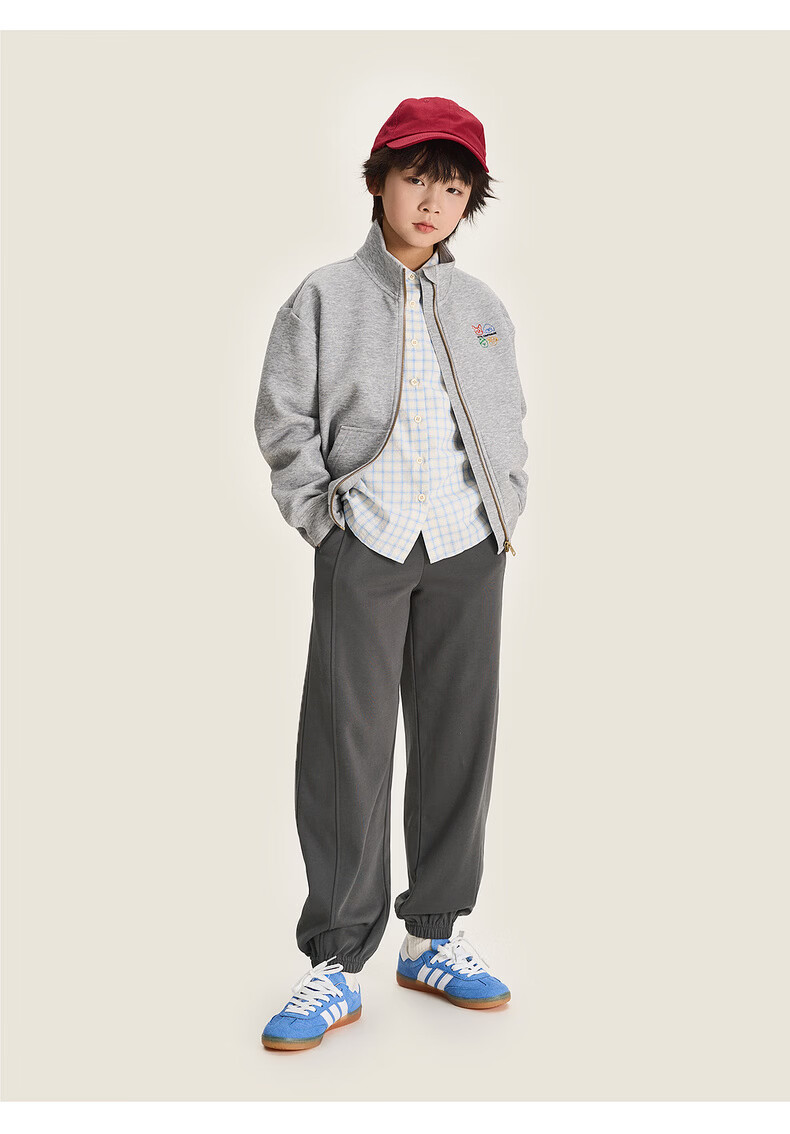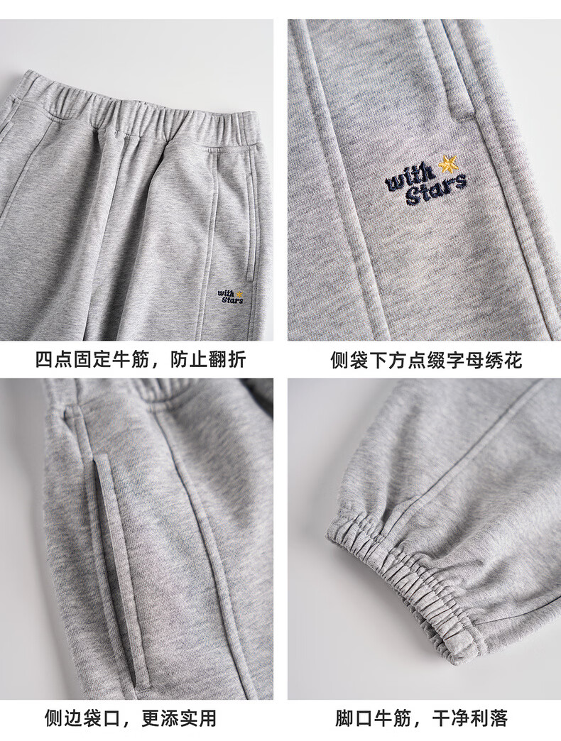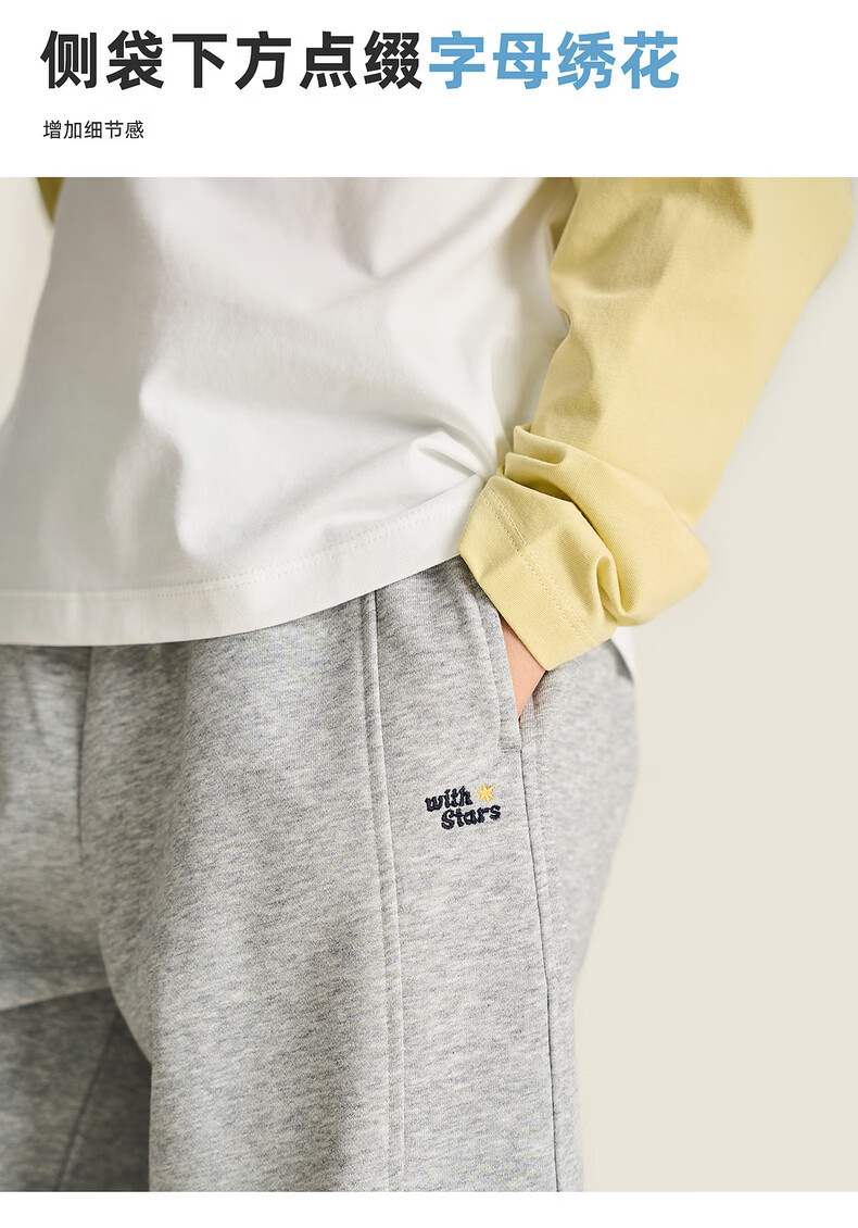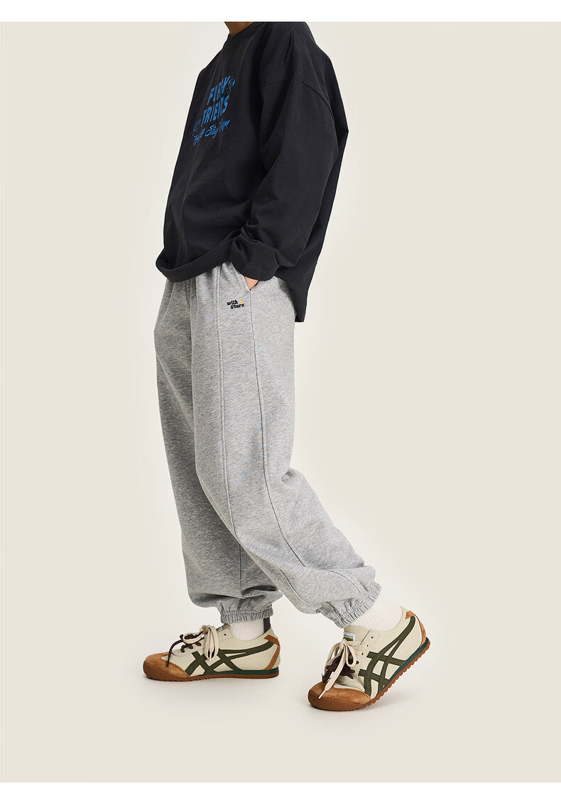 棉叔叔【结构款校服裤】女童毛圈卫裤男童2026春休闲收脚口香蕉裤男童 碧水蓝 150 150